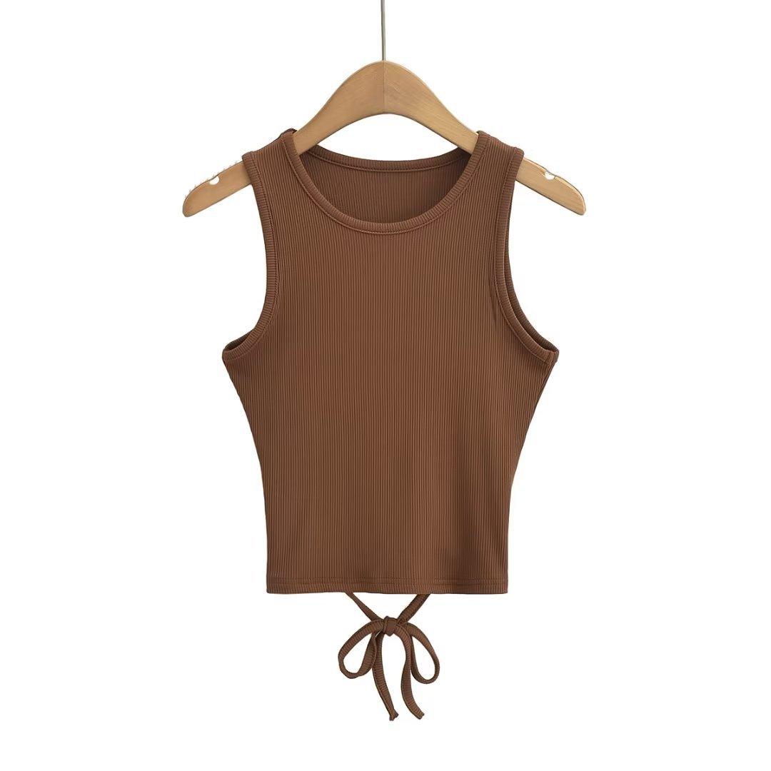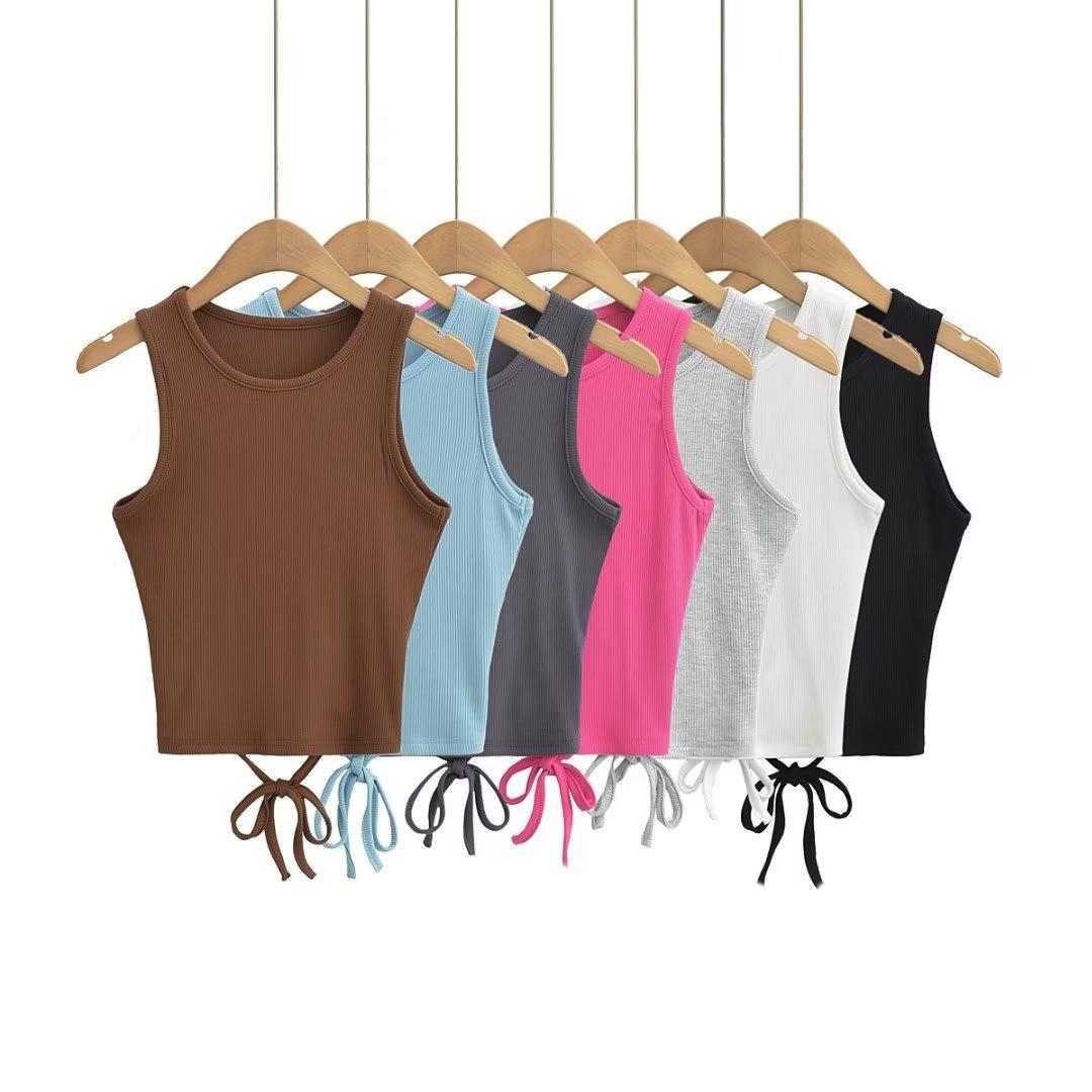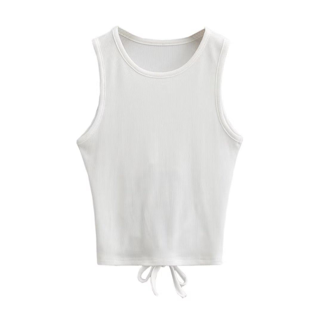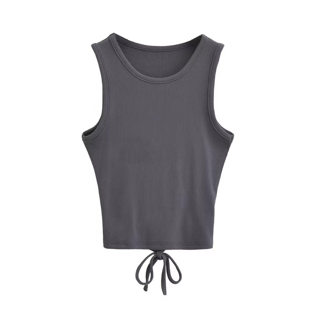 Camiseta sin mangas con cuello redondo y cordones cruzados en la espalda para mujer europea y americana, nueva de verano C76510