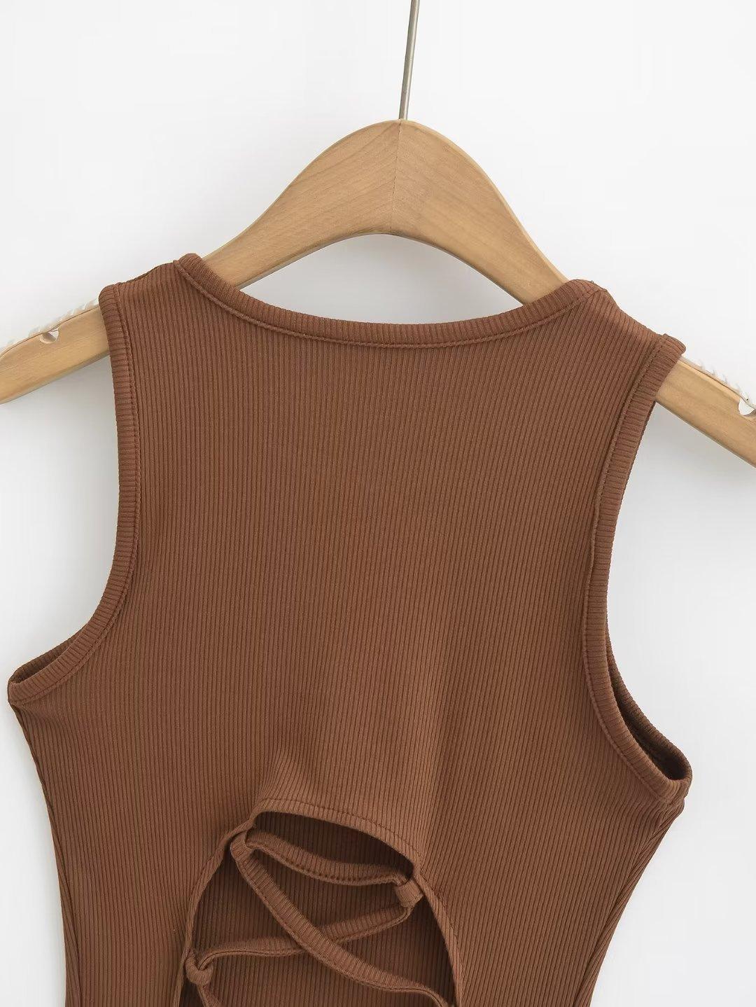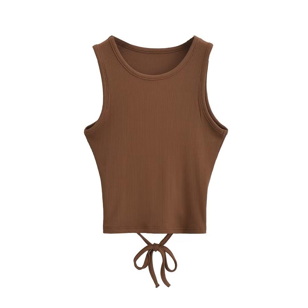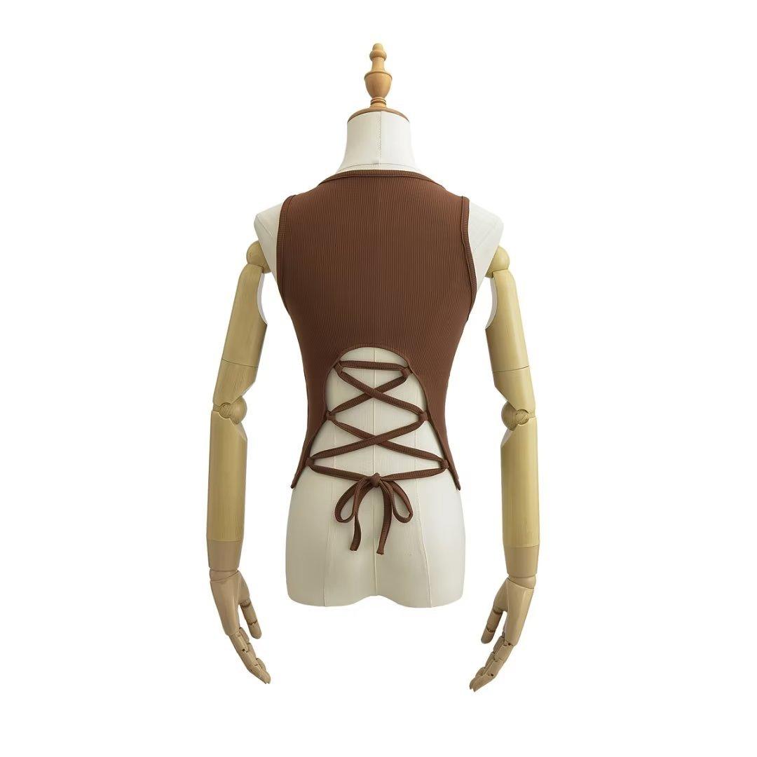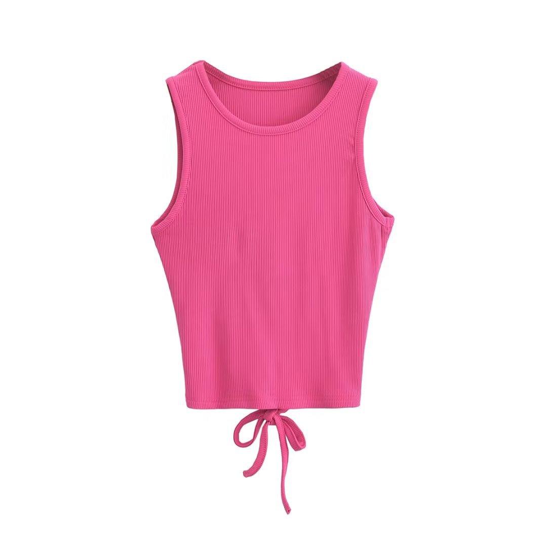 Camiseta sin mangas con cuello redondo y cordones cruzados en la espalda para mujer europea y americana, nueva de verano C76510