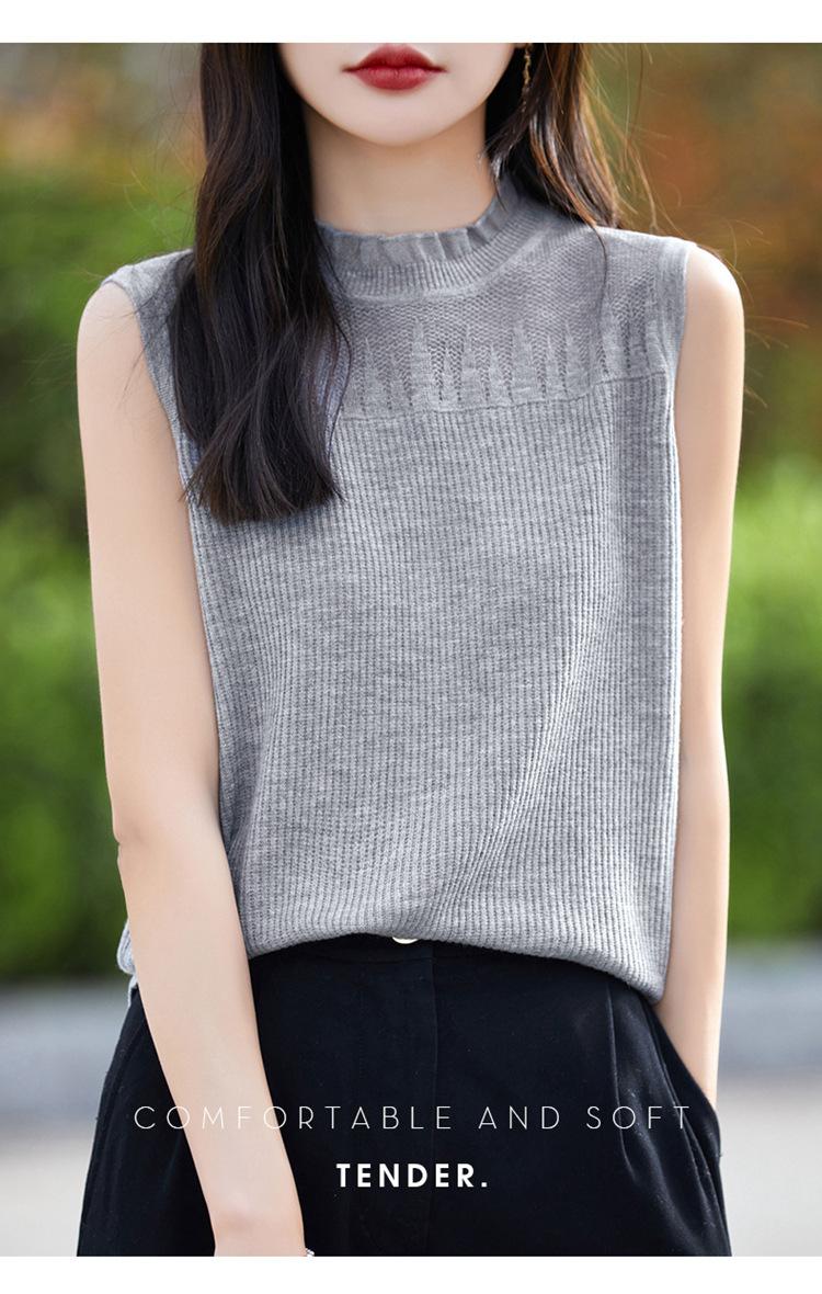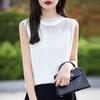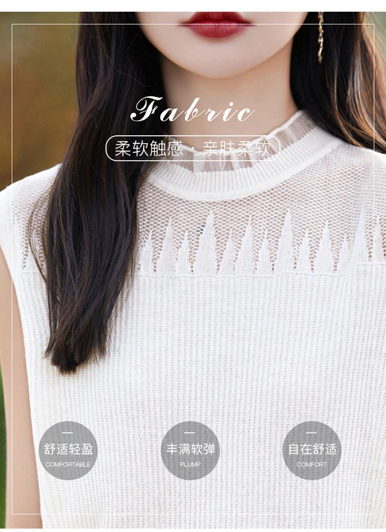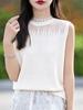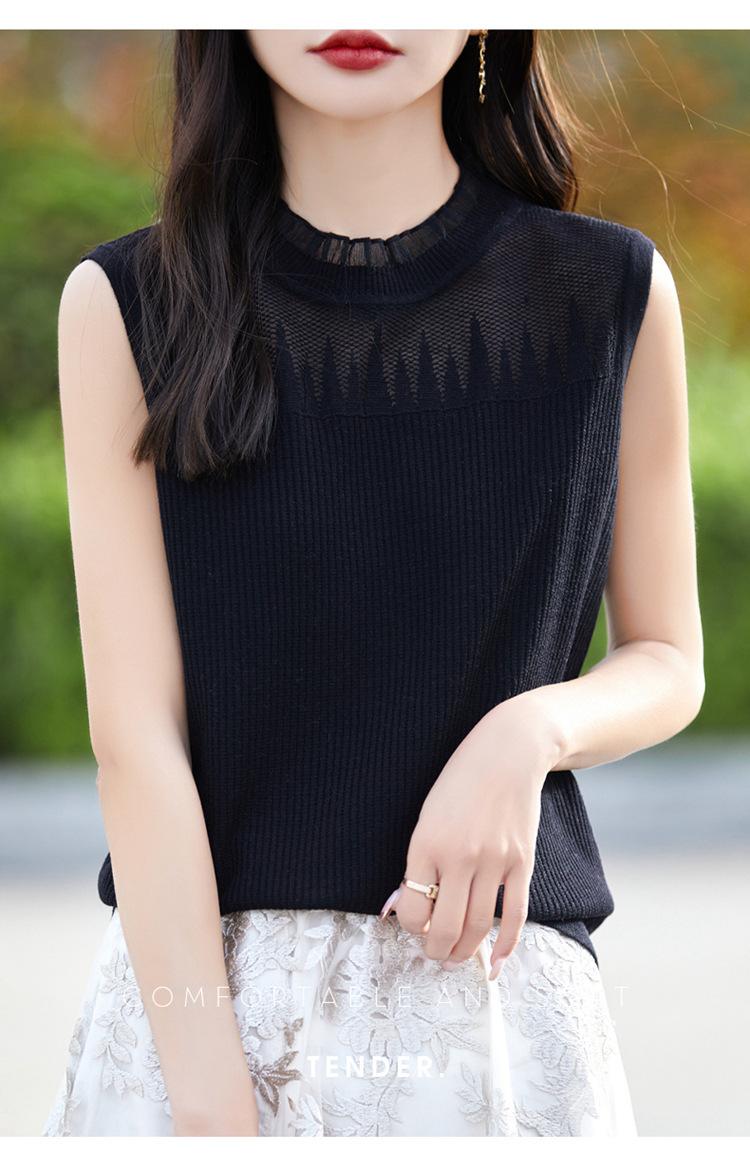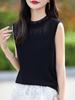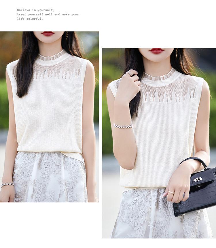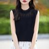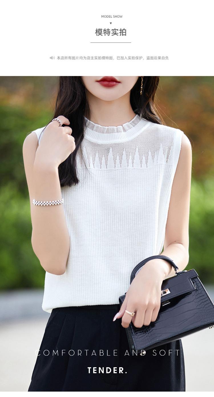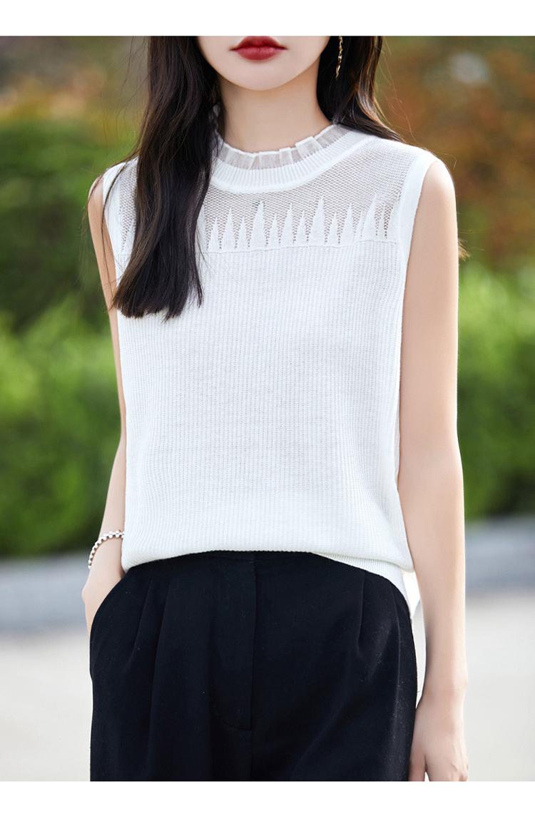 Chaleco sin mangas de lana peinada estilo francés con cuello de encaje para las orejas para mujer, verano nuevo, camiseta interior de punto calado de manga corta para mujer