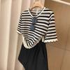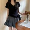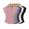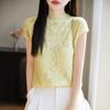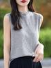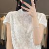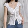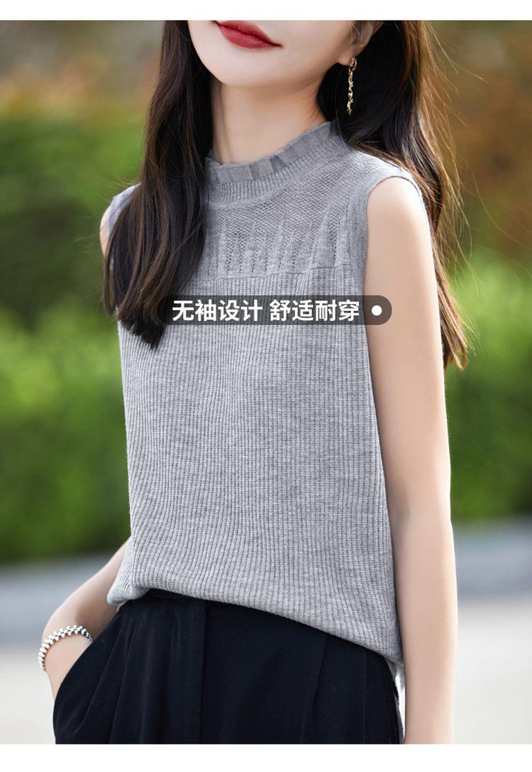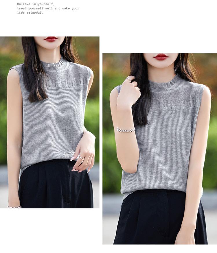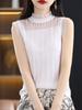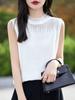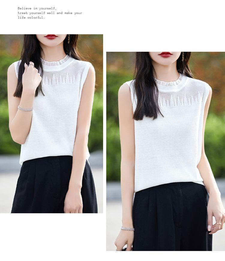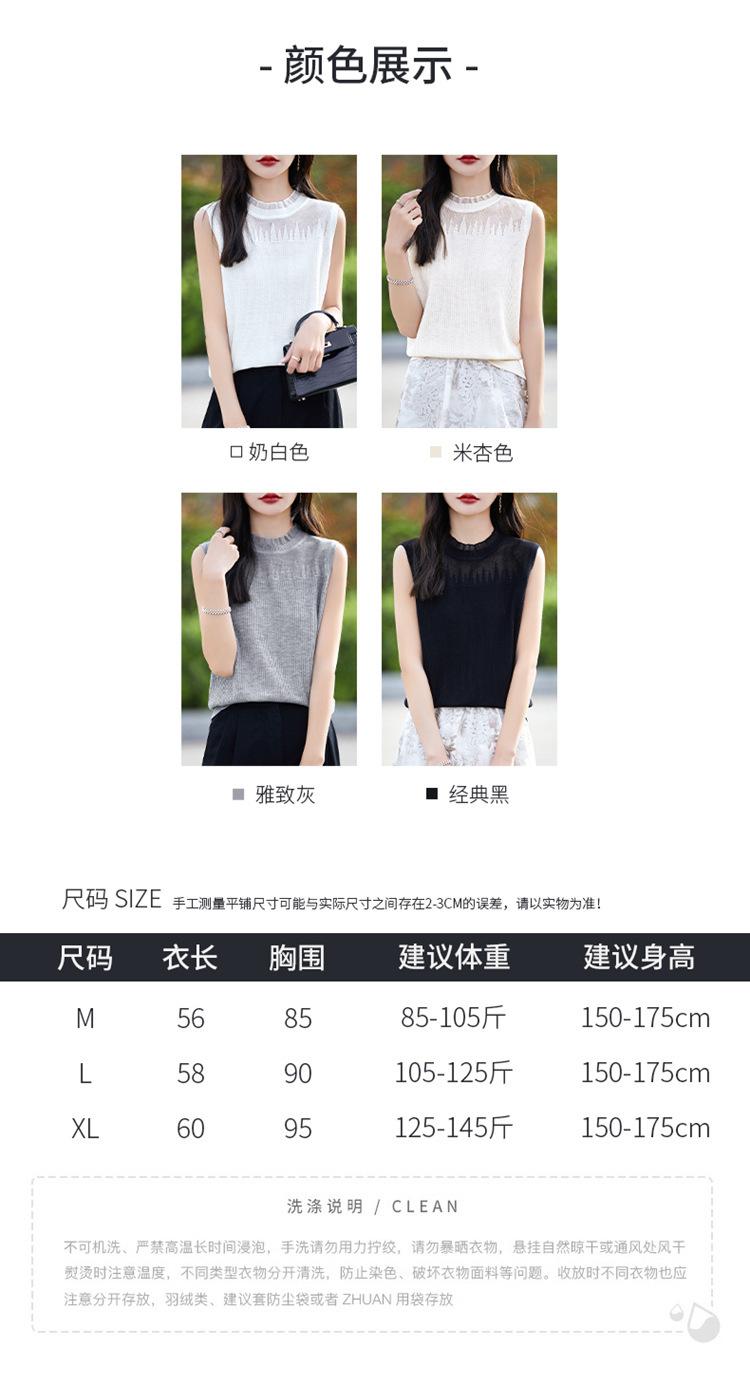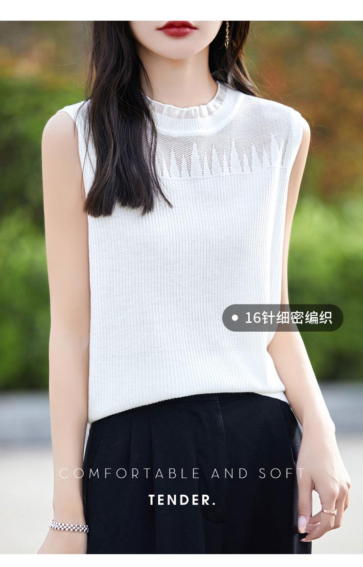 Chaleco sin mangas de lana peinada estilo francés con cuello de encaje para las orejas para mujer, verano nuevo, camiseta interior de punto calado de manga corta para mujer