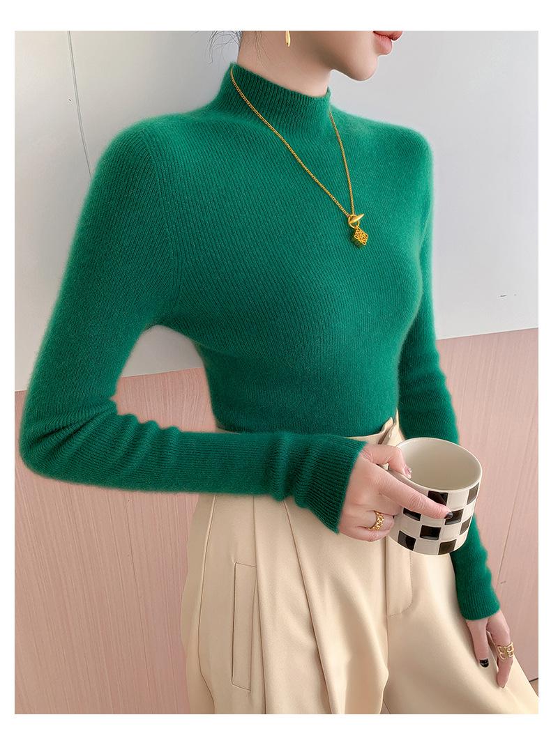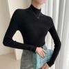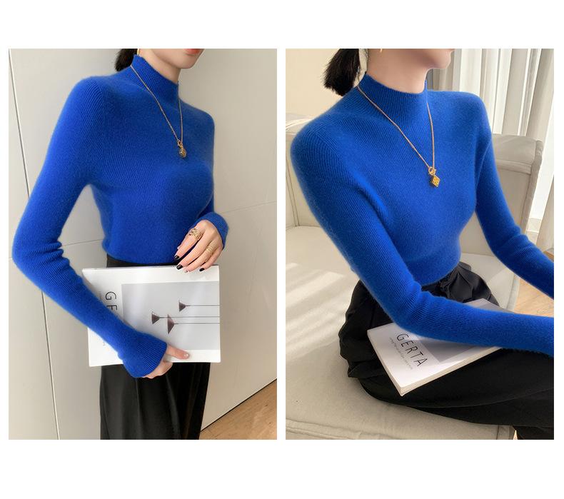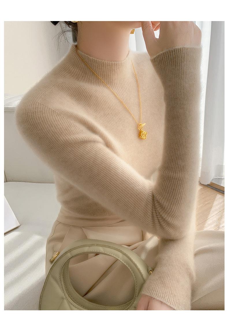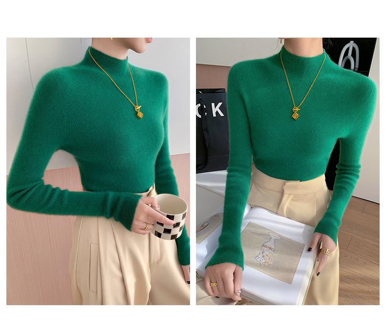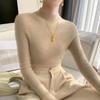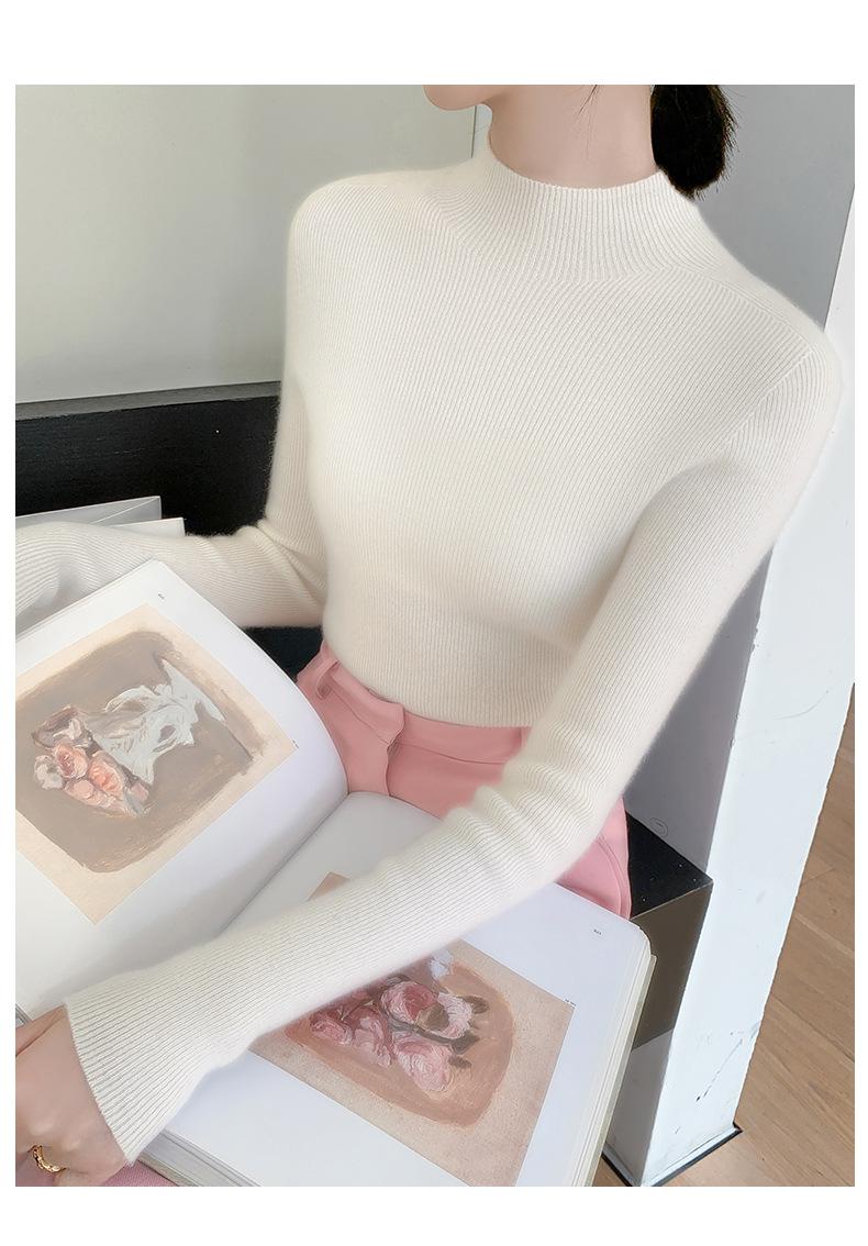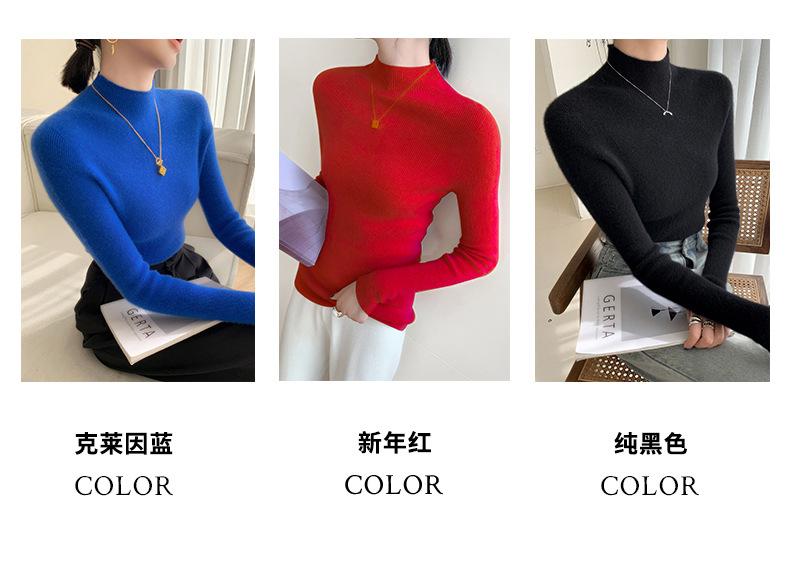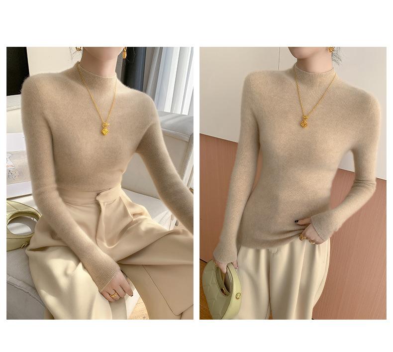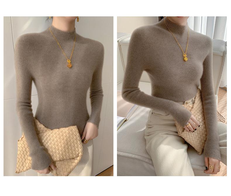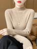 Suéter de Cachemira de Cuello Alto Medio sin Costuras para Mujer Otoño e Invierno Top Simple Ajustado Suéter Versátil Tejido de Lana de Cachemira Camiseta Base