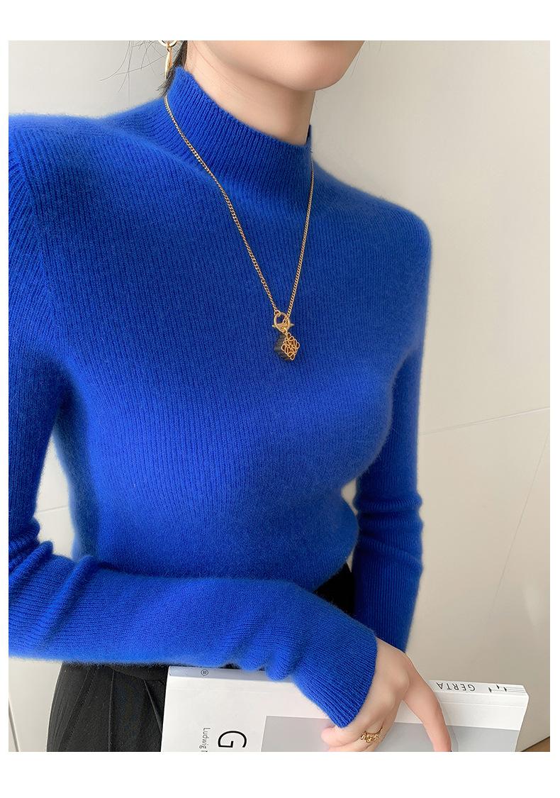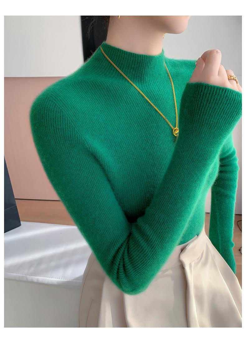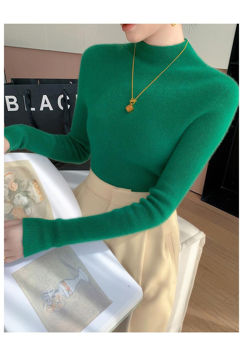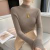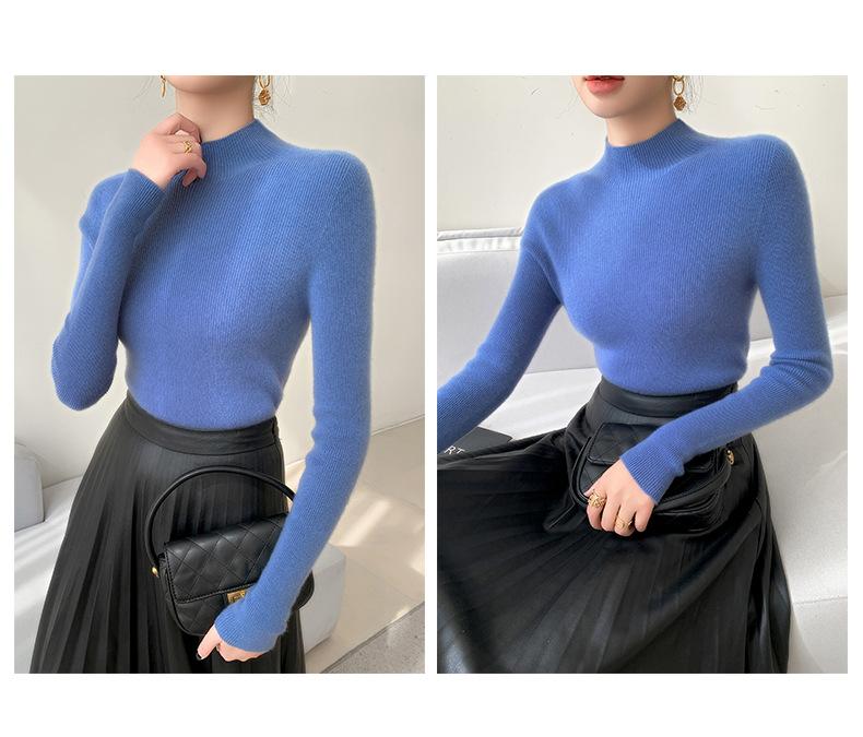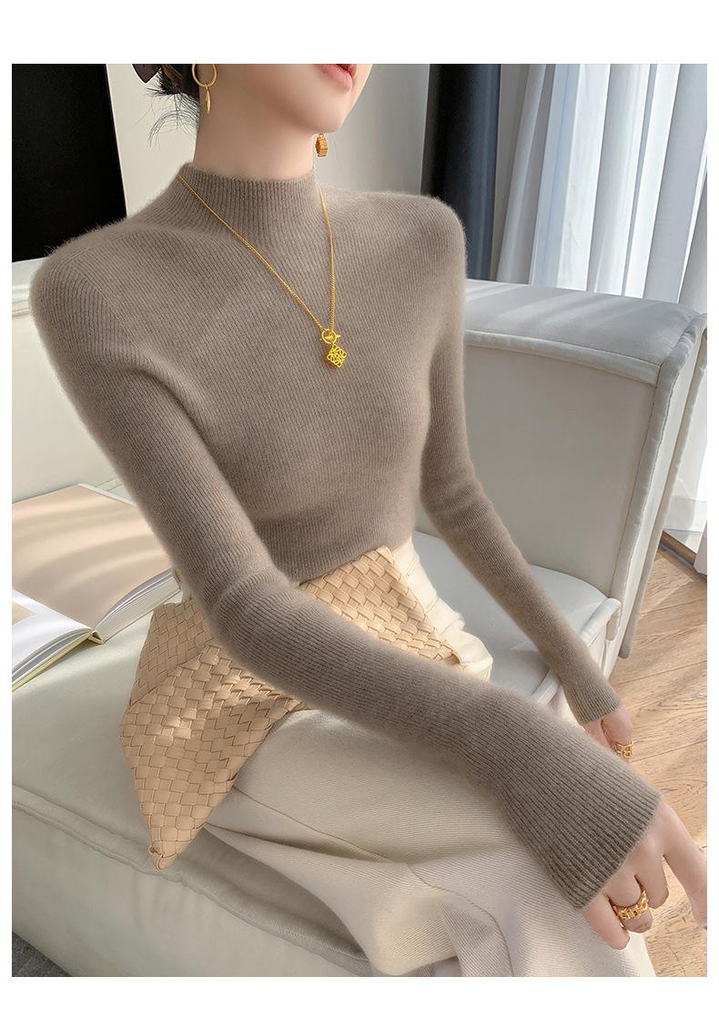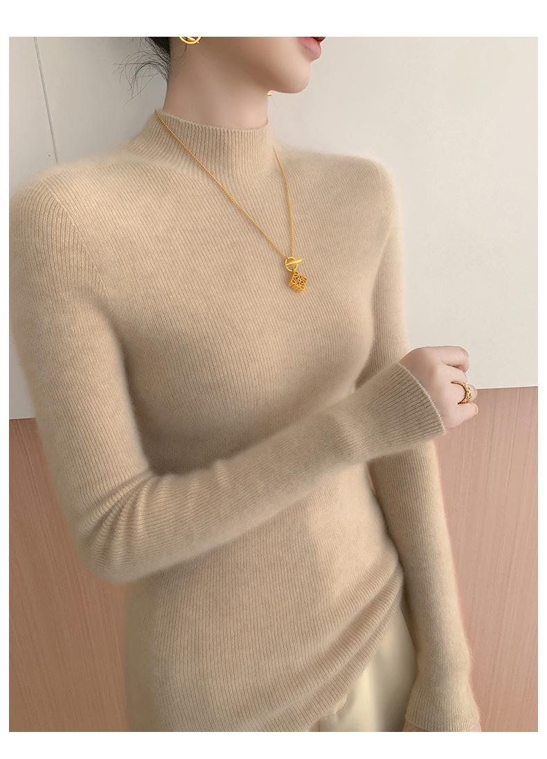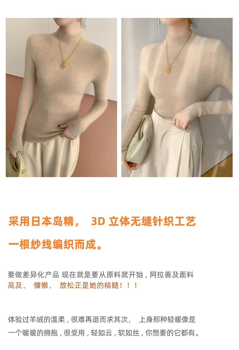 Suéter de Cachemira de Cuello Alto Medio sin Costuras para Mujer Otoño e Invierno Top Simple Ajustado Suéter Versátil Tejido de Lana de Cachemira Camiseta Base