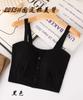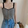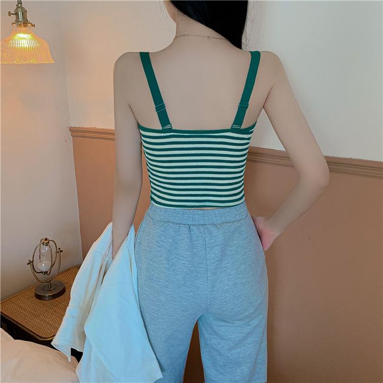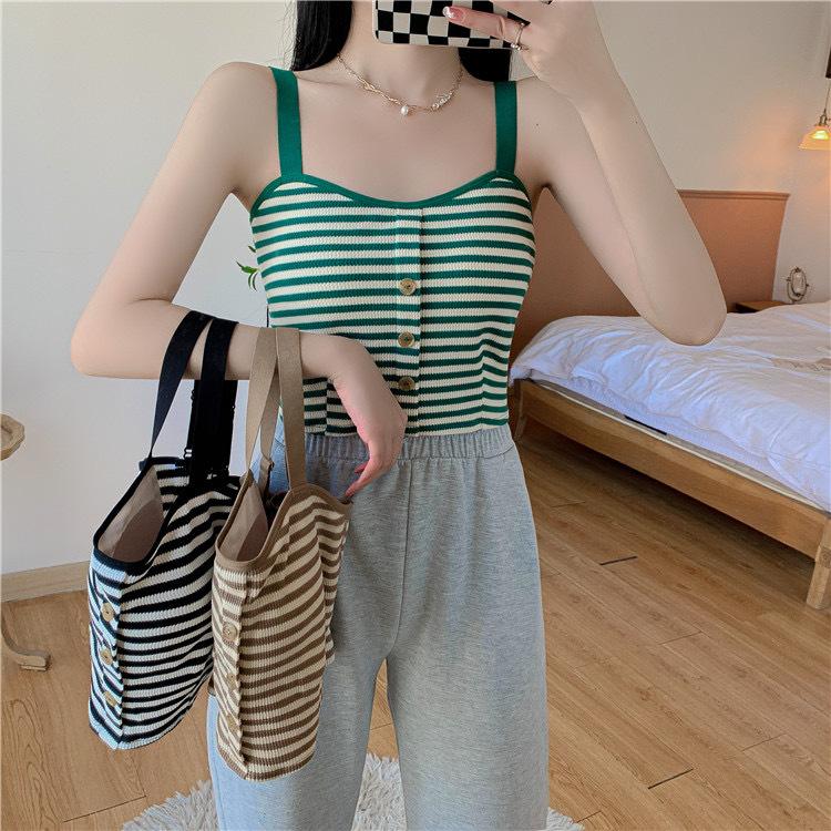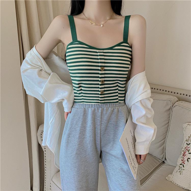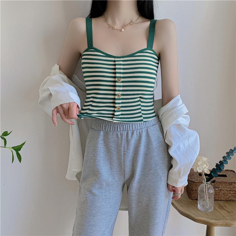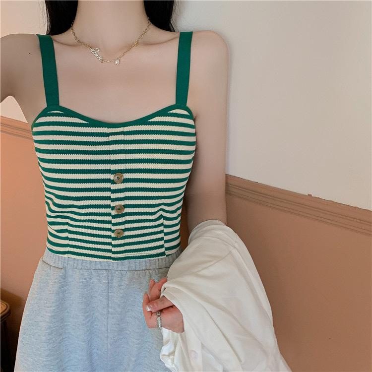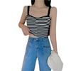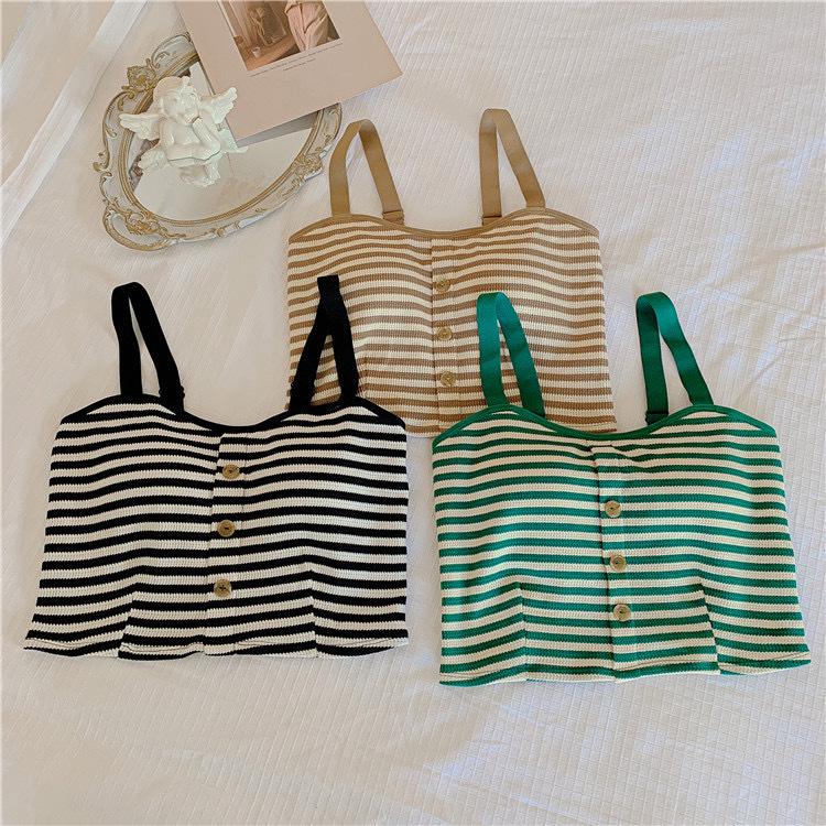 Camisola de otoño con botones a rayas para mujer, prenda exterior, corta, sin mangas, con base interior y almohadilla para el pecho