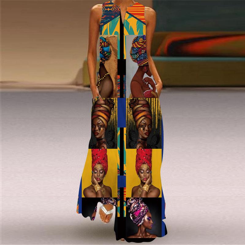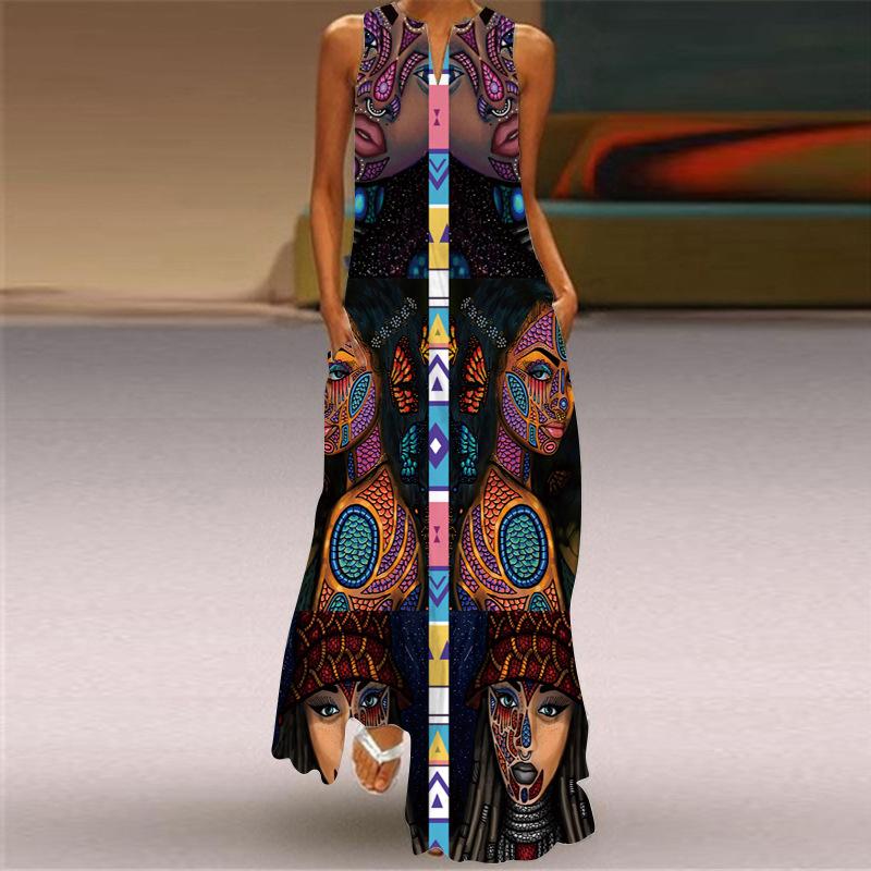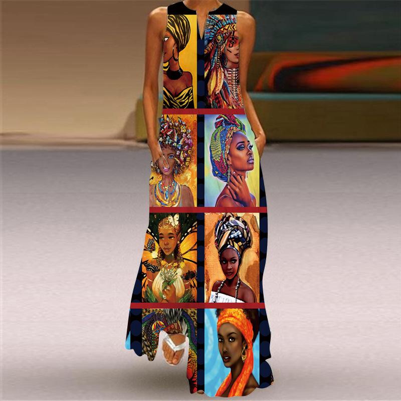 Vestido Africano Nuevo Moda Femenina Estilo Bohemio Fiesta en la Playa Sin Mangas Fiesta Elegante Sexy Vestido Largo