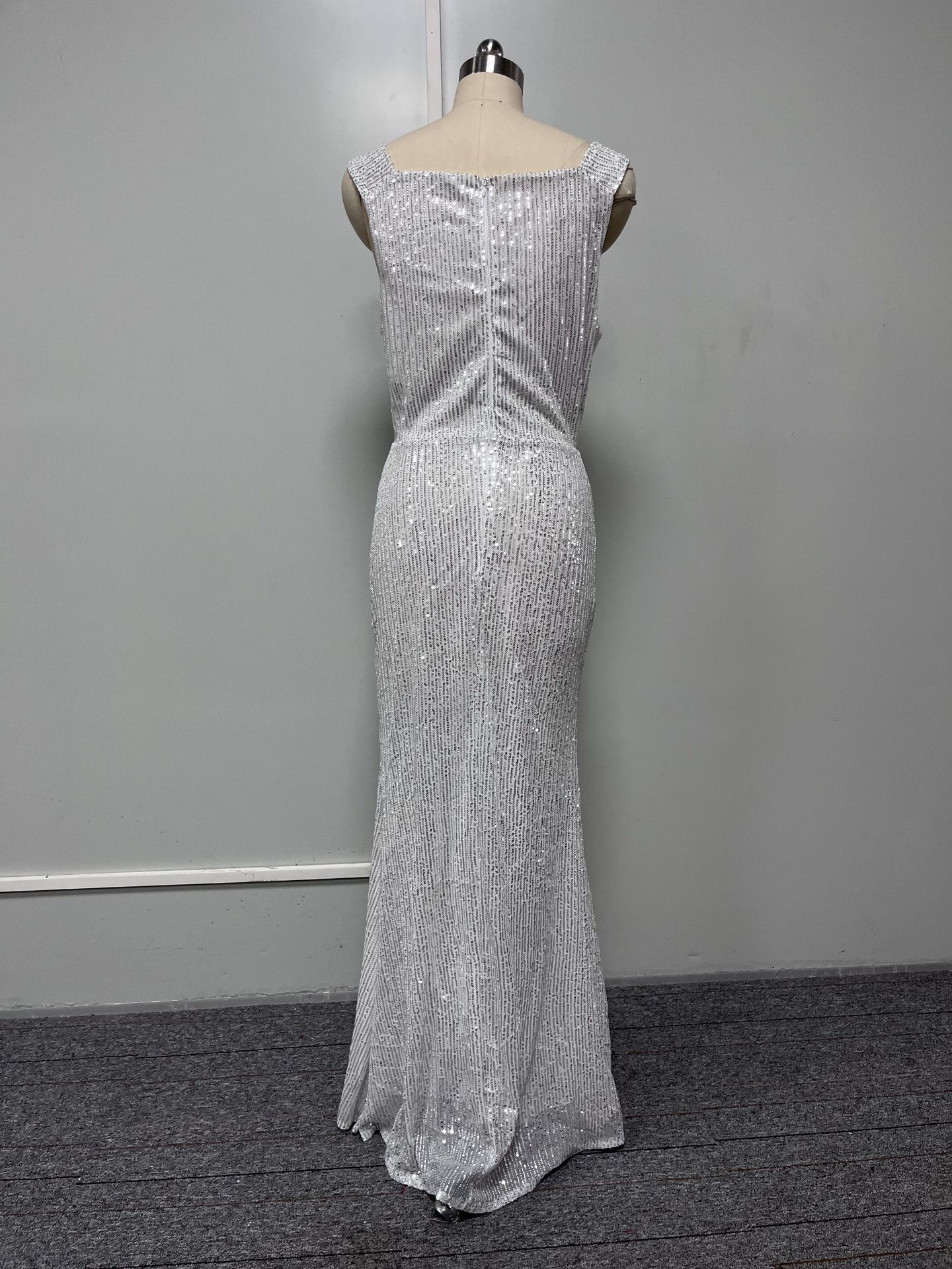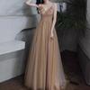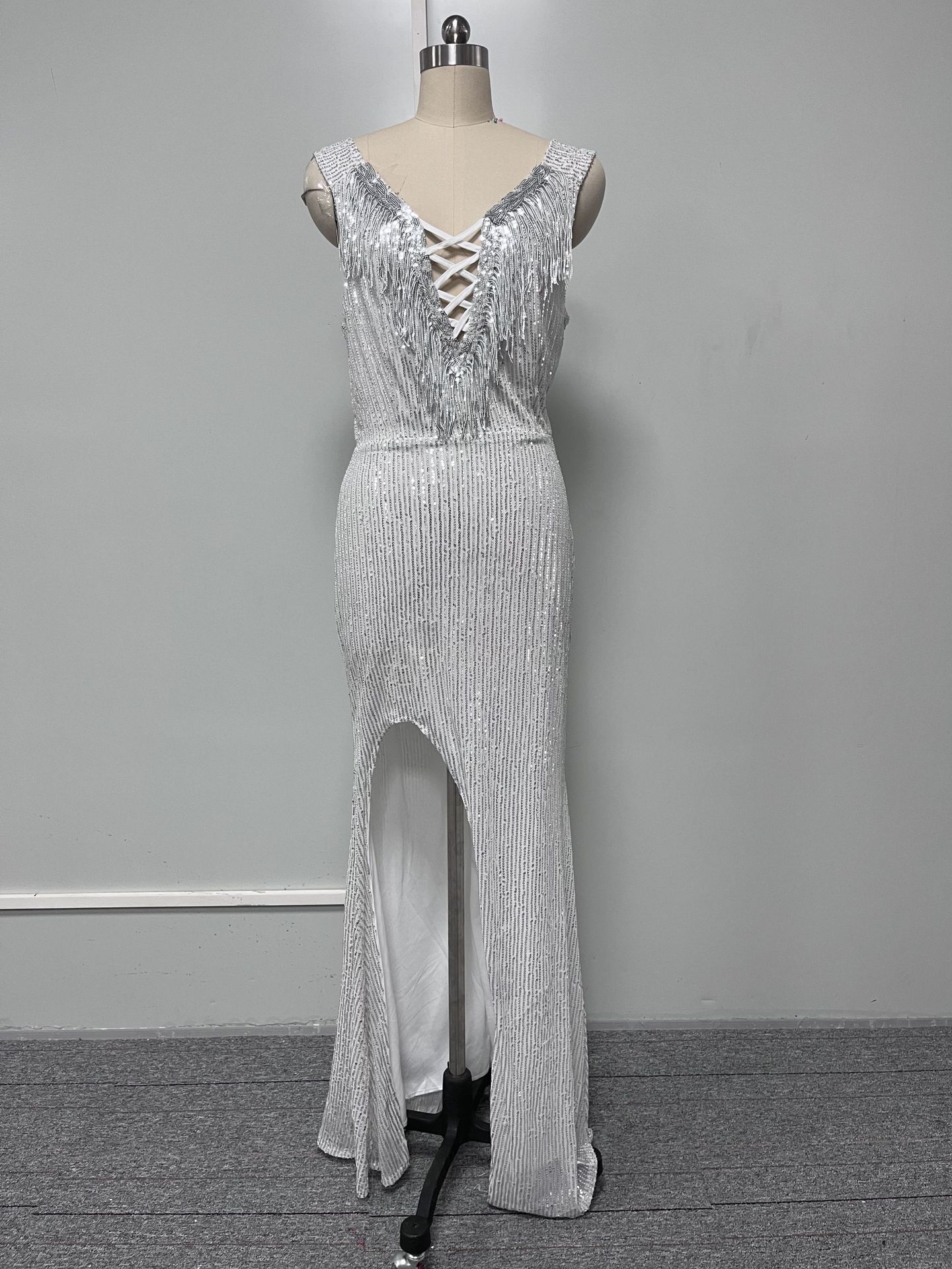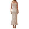 Vestido de noche de lentejuelas de color puro para mujer 2025 Nuevo diseño elegante transfronterizo Escote de borlas texturizado Falda de cola de pez Verano