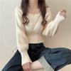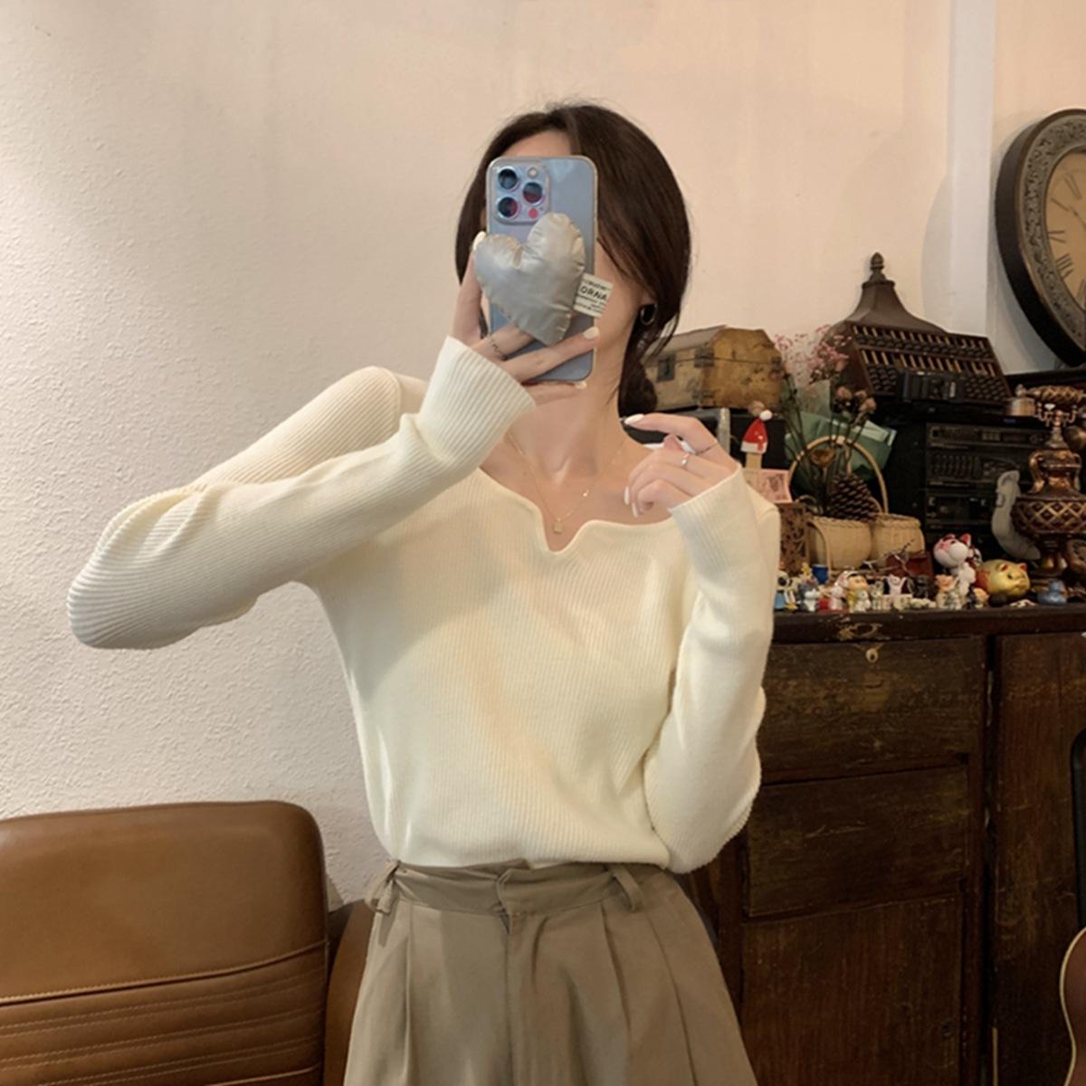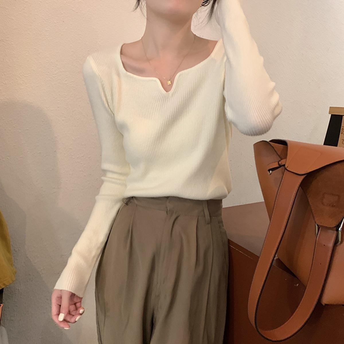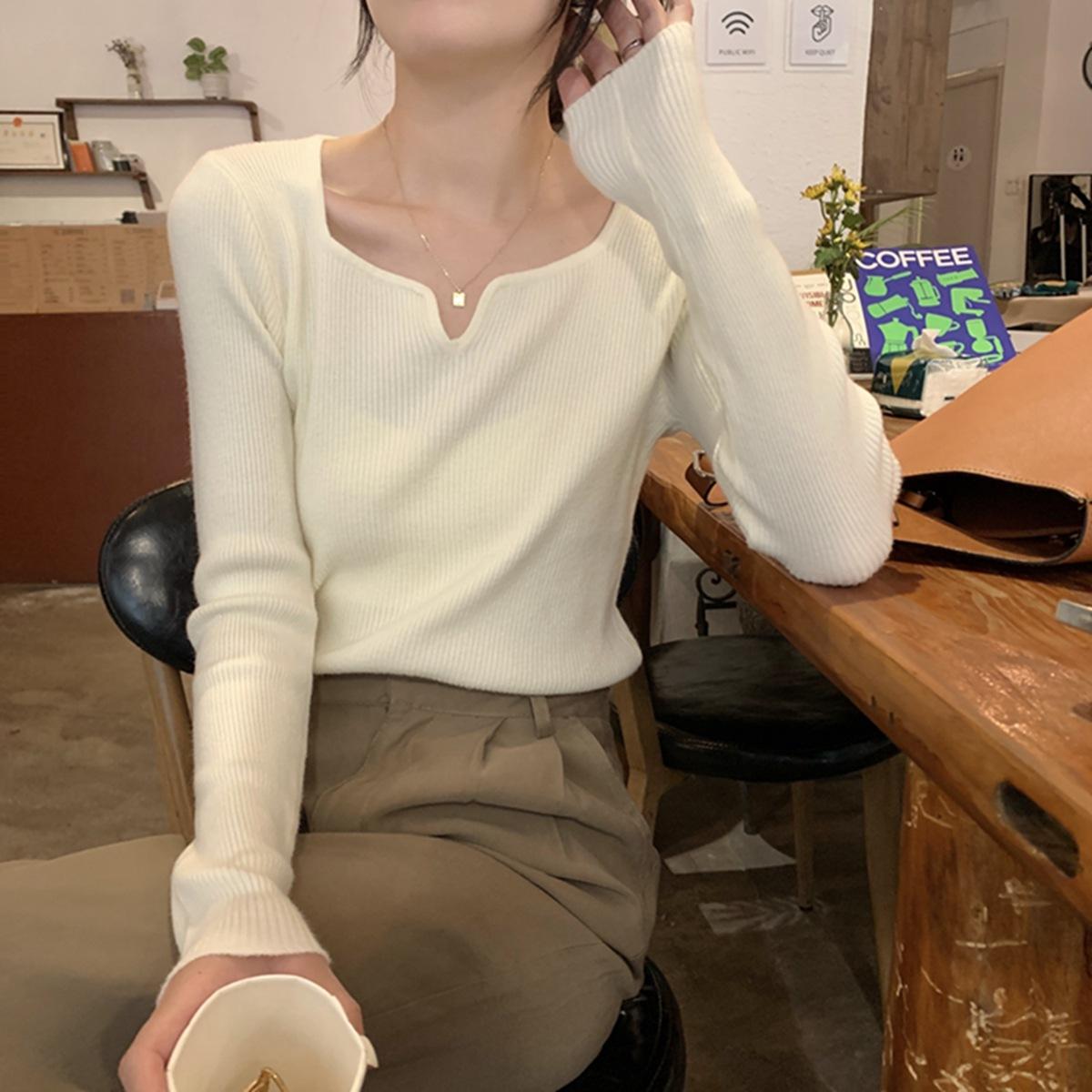 2775# Otoño e invierno versión coreana de diseño de cuello cuadrado francés delgado nicho ropa interior temperamento suéter de fondo de punto
