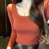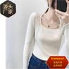 Otoño/Invierno 2025 Nuevo Estilo Coreano Corte Slim Diseño de Cuello Cuadrado Francés Nicho Capa Interior Elegante Suéter Camiseta Básica de Punto
