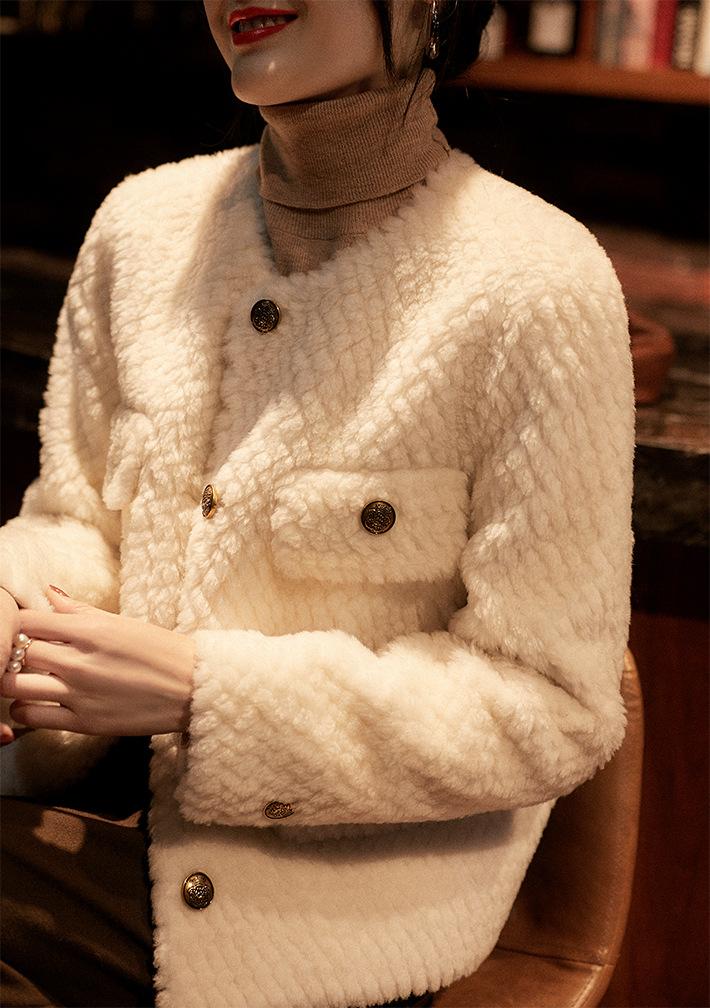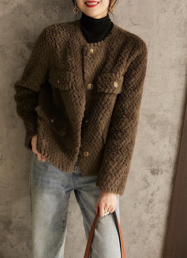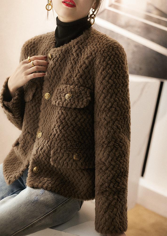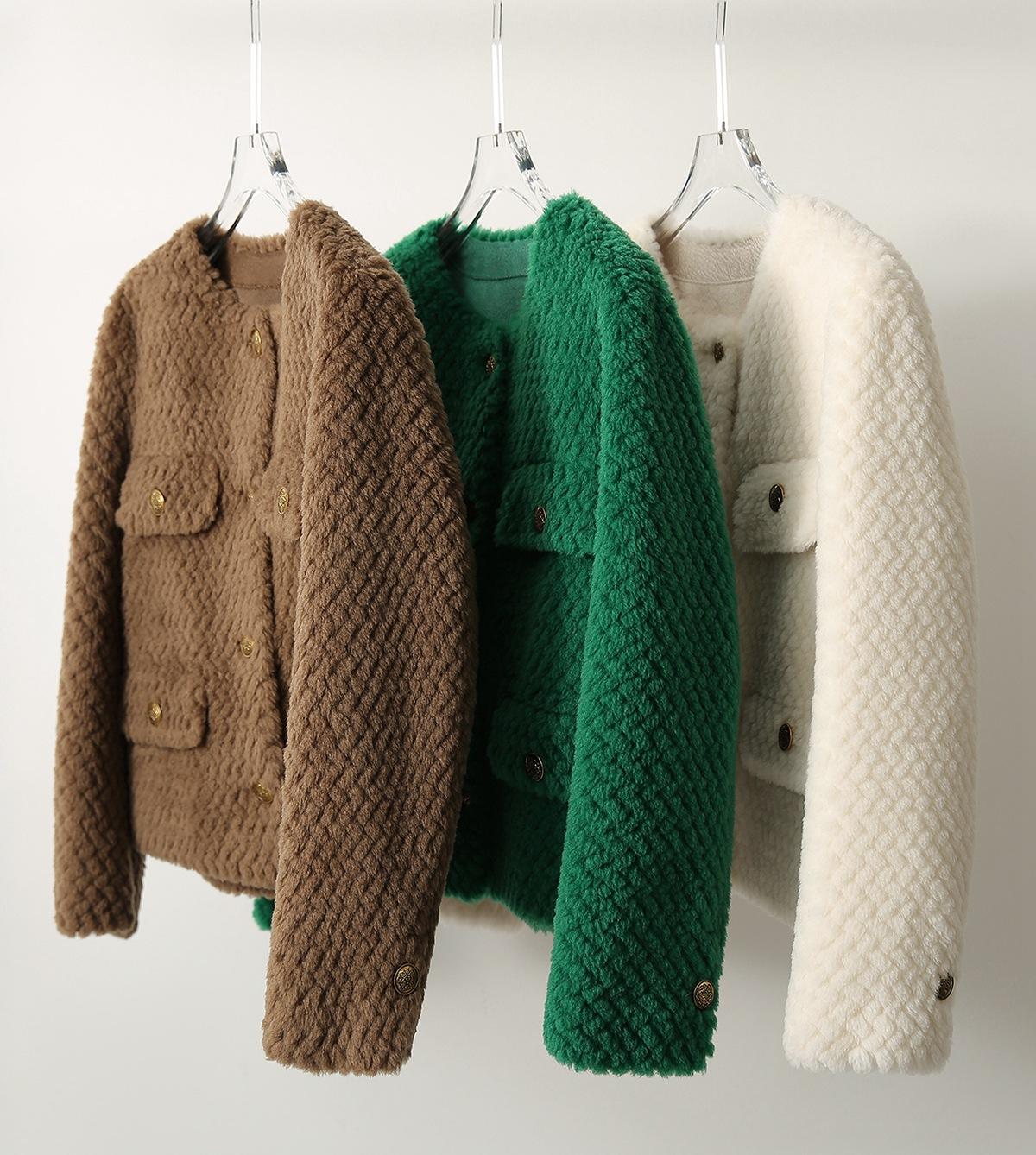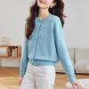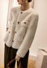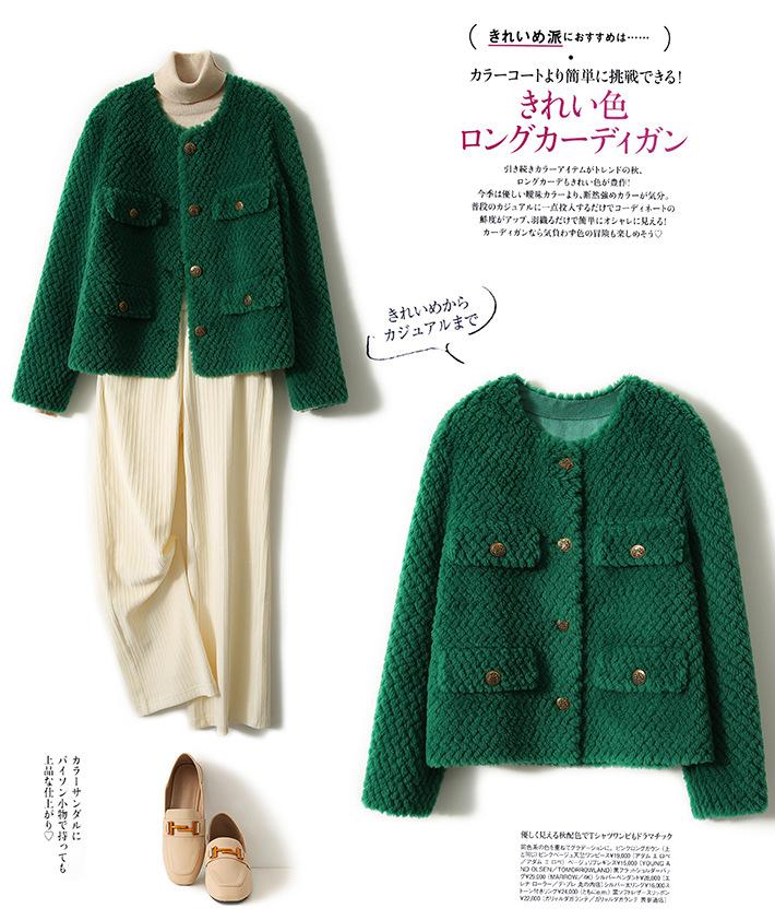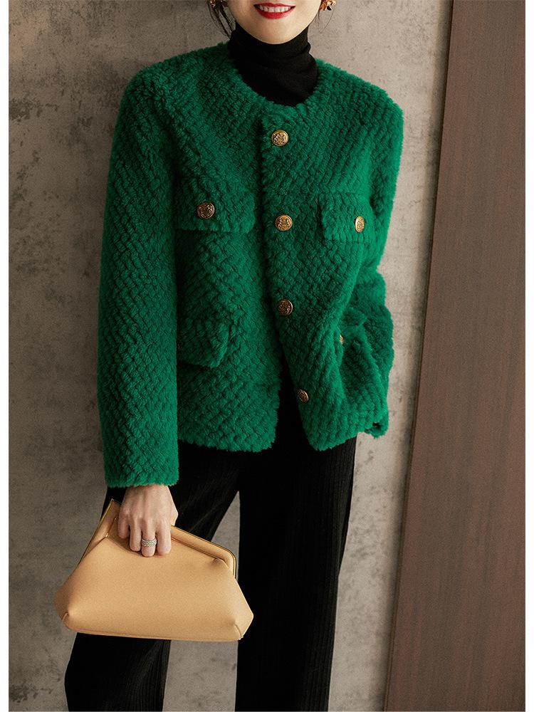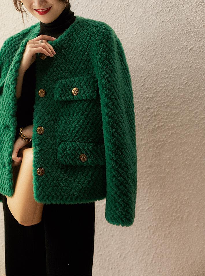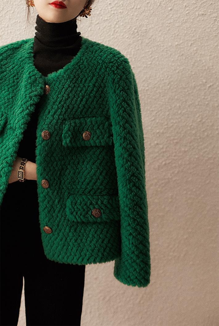 Comercio Exterior Elegante Botón Cuello Redondo Corto Abrigo Exterior Mujer 2023 Otoño e Invierno Nuevo Versátil Moda Cárdigan Verde Top