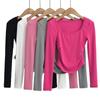 2025 Deseo Puro Camiseta de Cuello Redondo para Chica Caliente para Mujer Primavera y Otoño Ajuste Entallado Sexy Entallada Ropa Exterior Ombligo Expuesto Mangas Largas