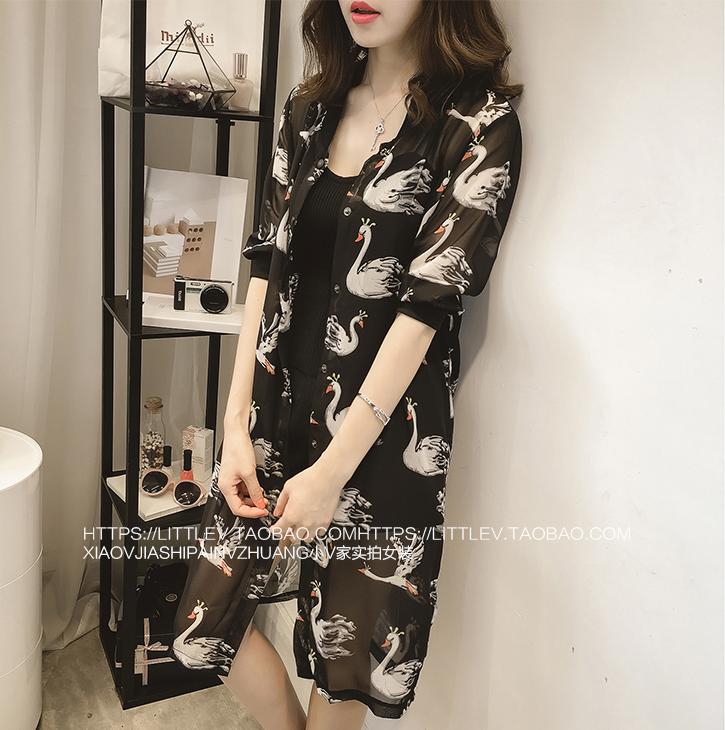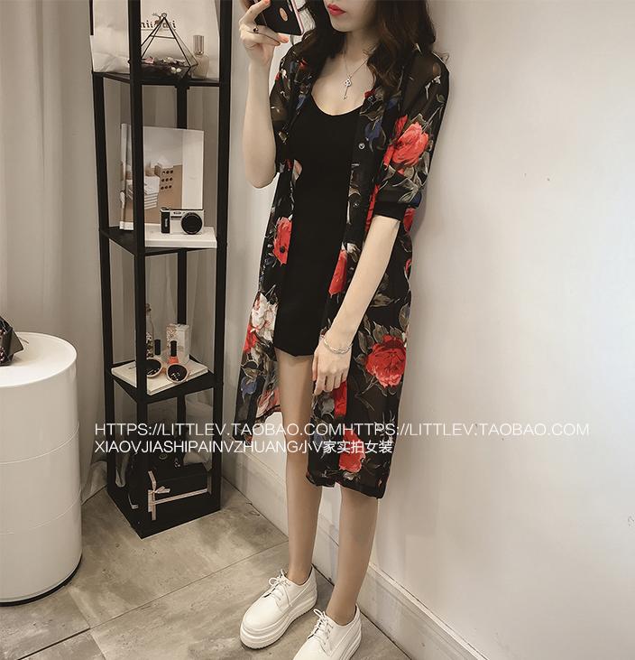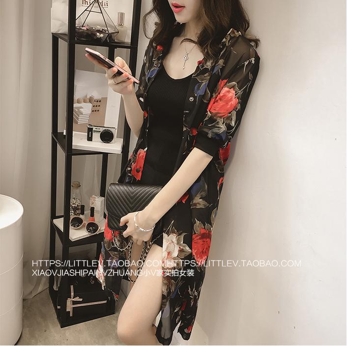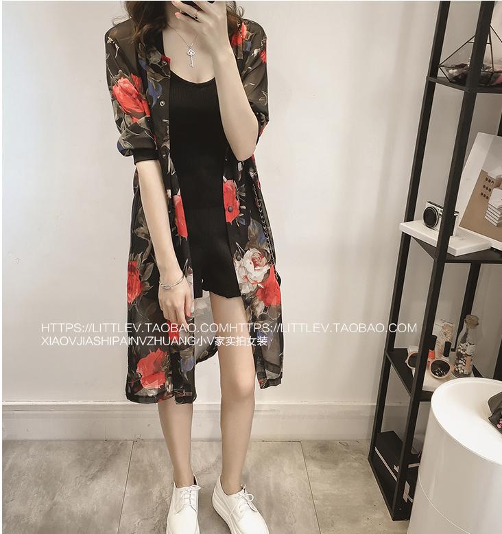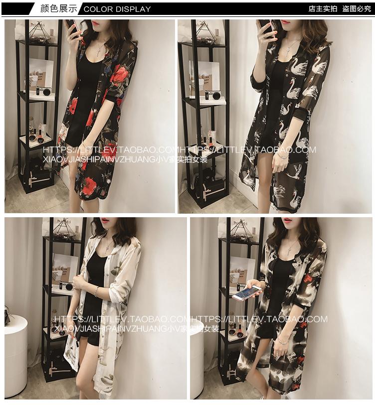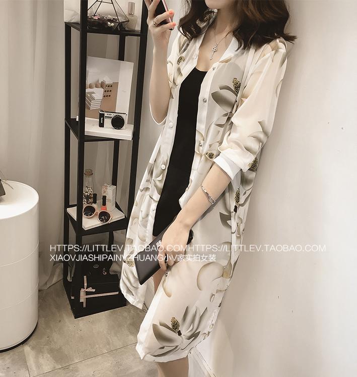 Abrigo fino para mujer, novedad de verano 2023, camisa de protección solar con estampado vintage de siete mangas, cárdigan largo de gasa