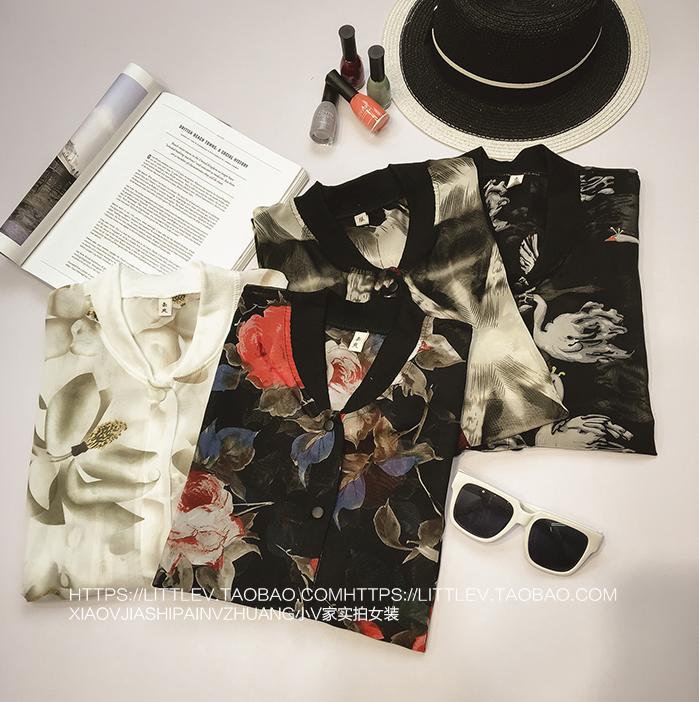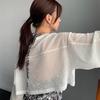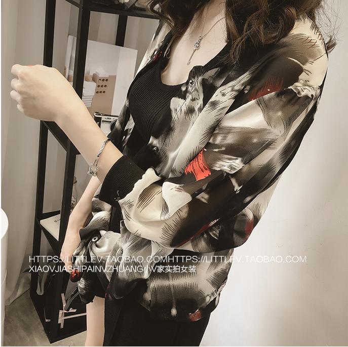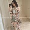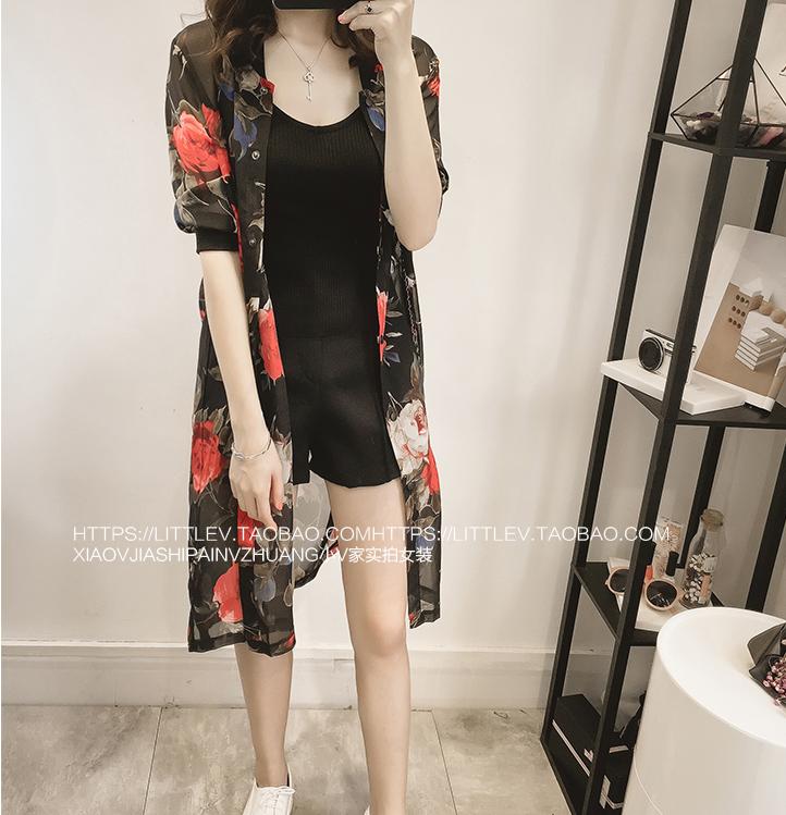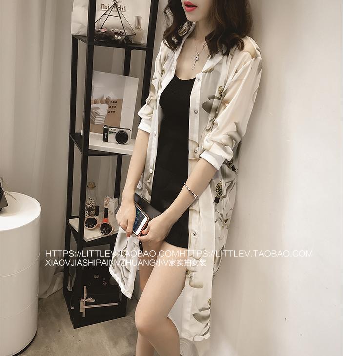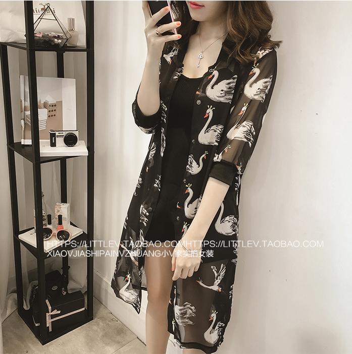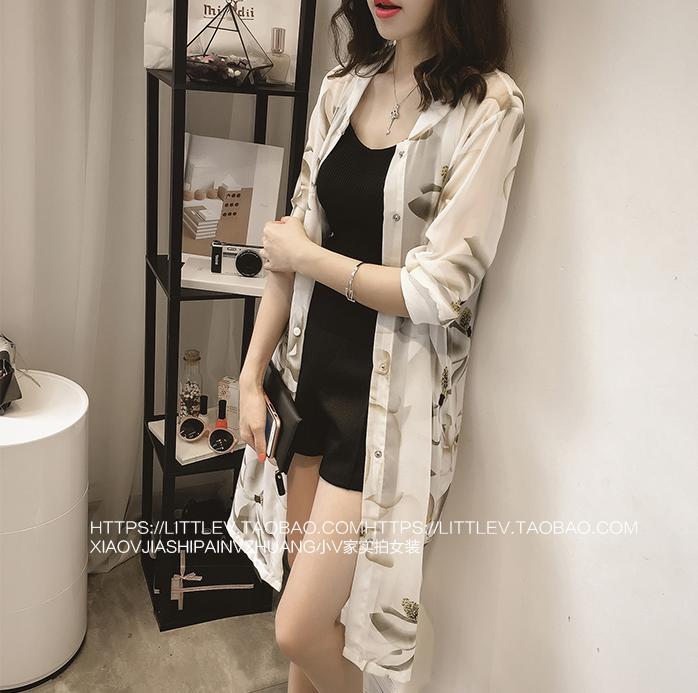 Abrigo fino para mujer, novedad de verano 2023, camisa de protección solar con estampado vintage de siete mangas, cárdigan largo de gasa