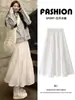 Falda Ins para Mujer 2025 Otoño e Invierno Nuevo Estilo Cintura Elástica Largo Medio Falda Patchwork Versátil Cintura Elástica Falda Línea A