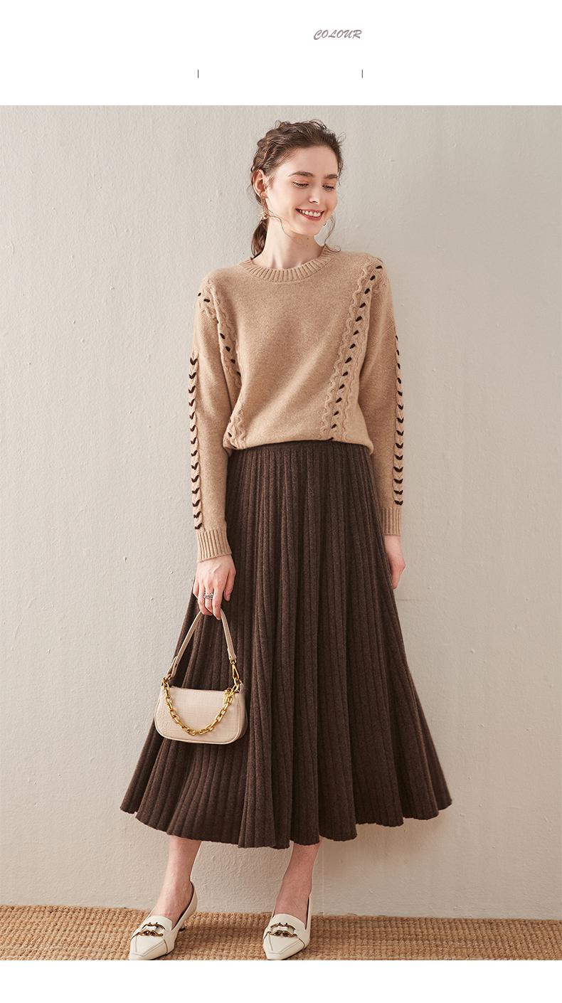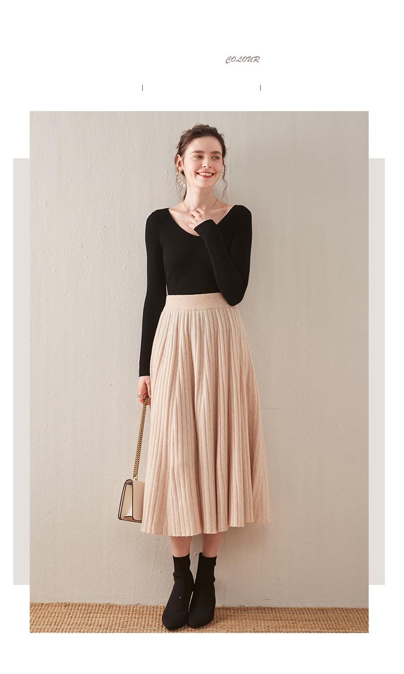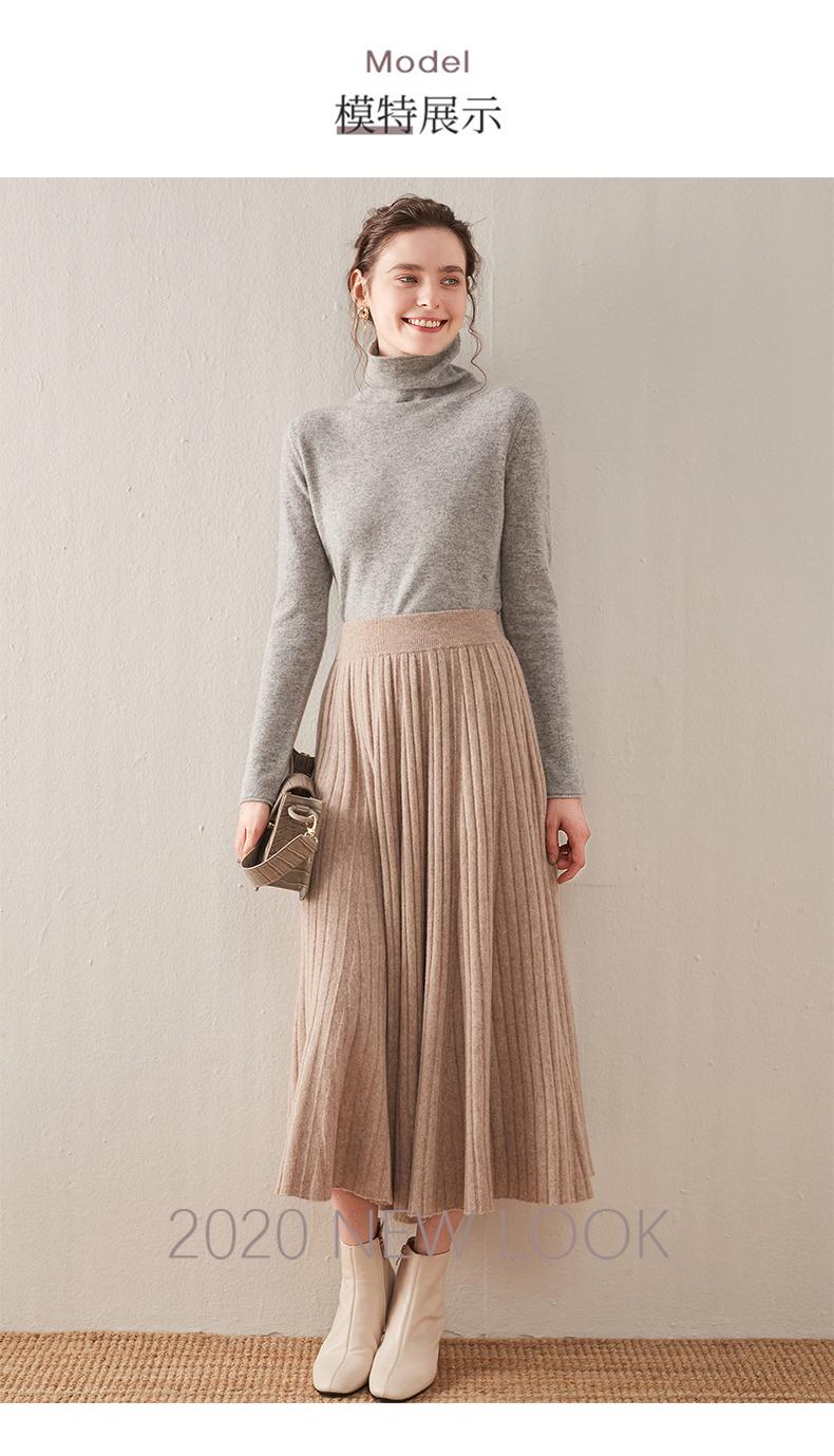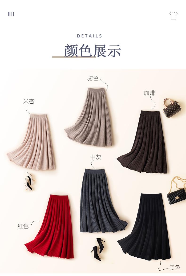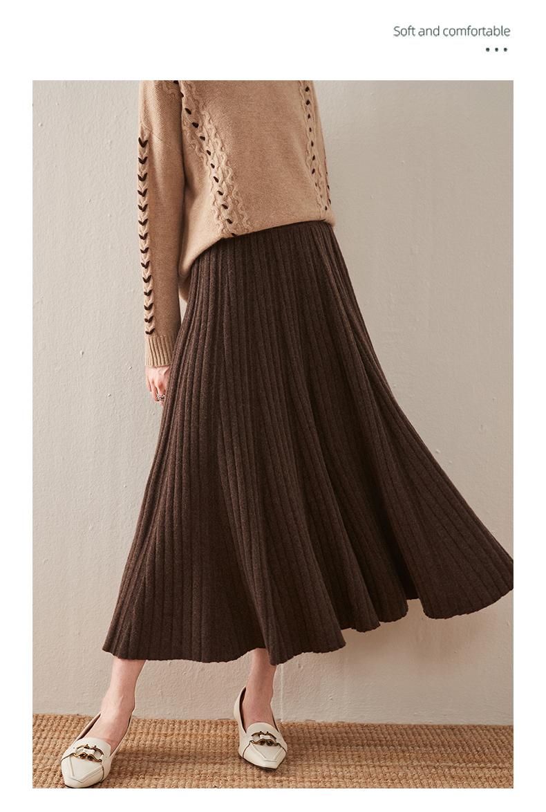 Falda de estilo nuevo para mujer, otoño e invierno, de longitud media, cintura alta, plisada, amplia, con vuelo, ajustada, de corte A, de punto, estilo paraguas
