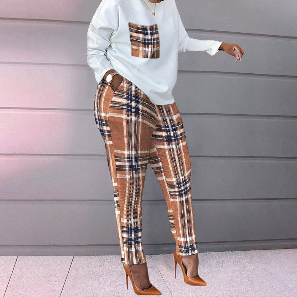 Traje casual de mujer de primavera nuevo transfronterizo de Amazon, moda europea y americana, estampado, manga larga, talla grande, holgado