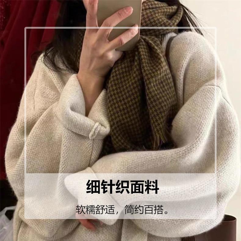 Cárdigan largo de punto estilo coreano estilo holgazán para mujer 2024 Otoño e Invierno Nuevo transfronterizo Look suelto adelgazante Chaqueta suéter de color puro