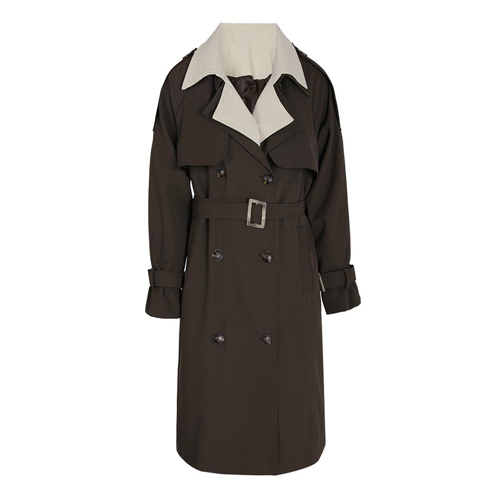 Abrigo de temperamento estilo británico moda doble botonadura con cinturón para mujer otoño nuevo suelto talla grande capote en forma de capullo