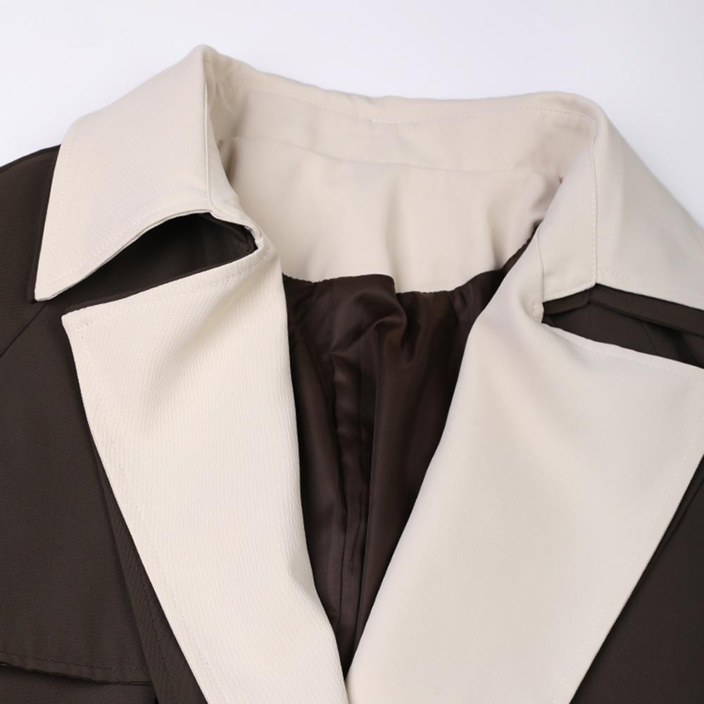 Gabardina retro de estilo coreano para mujer, de longitud media, con costuras en contraste de color, elegante abrigo informal cruzado de estilo británico.