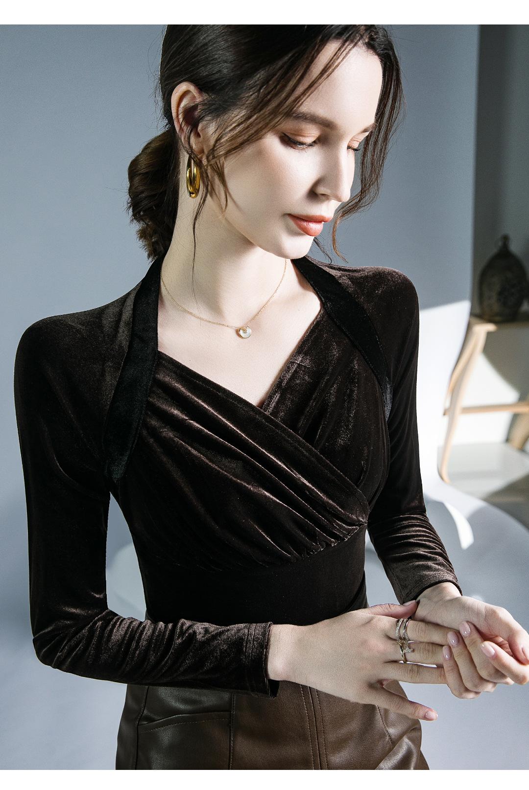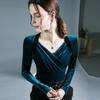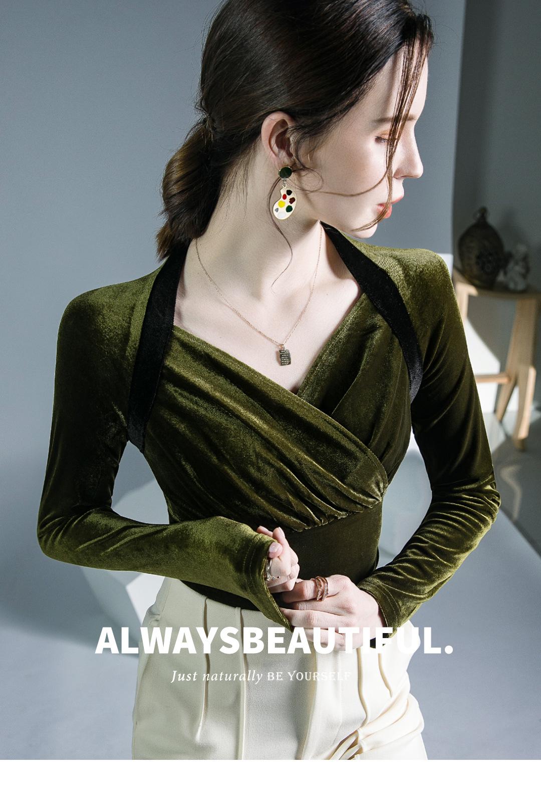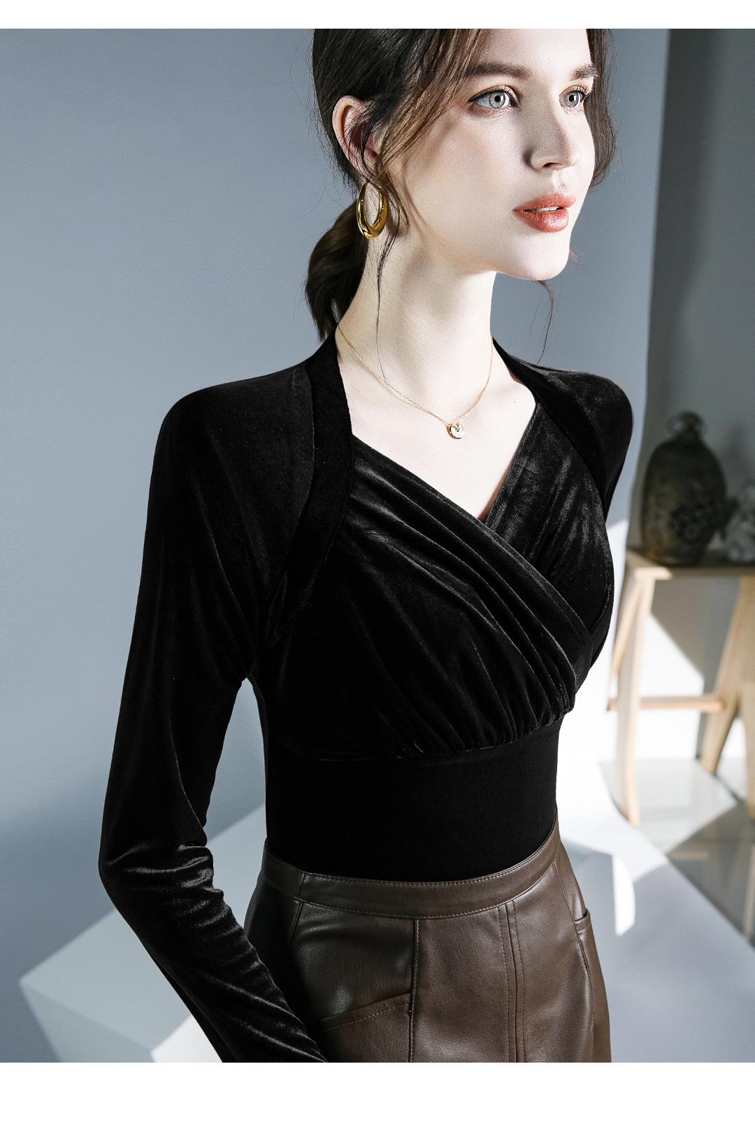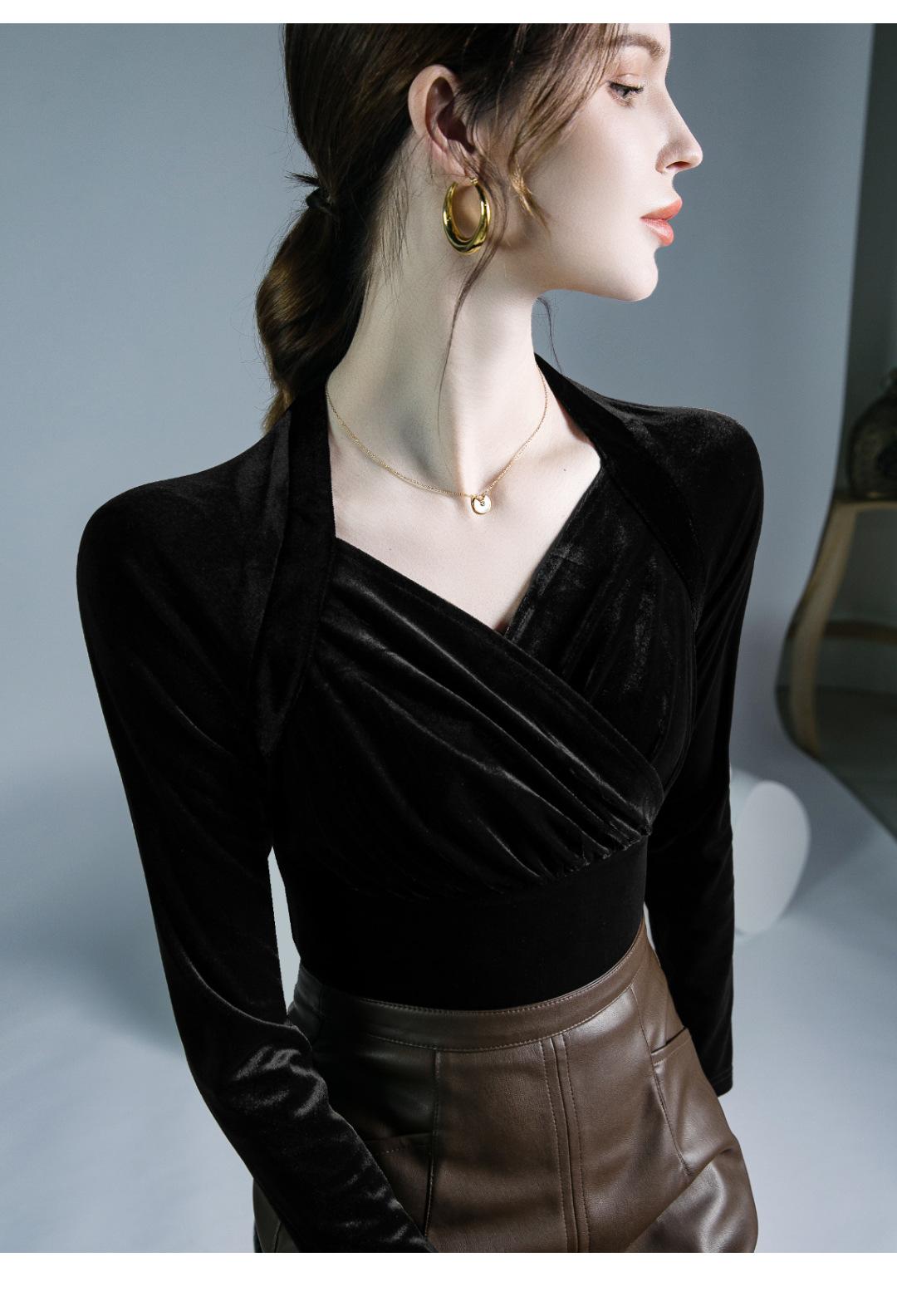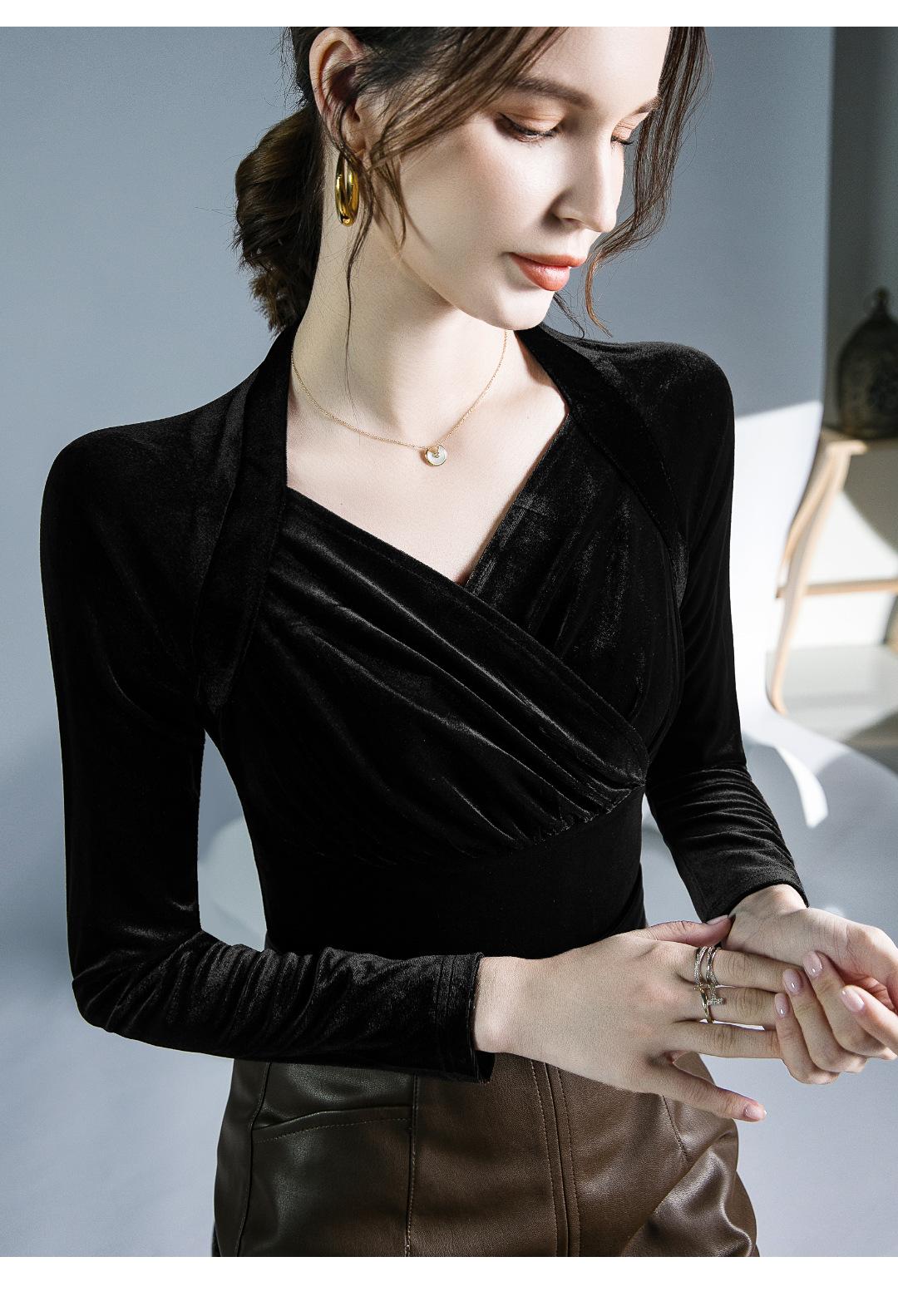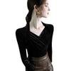 Camiseta interior de manga larga con cuello en V de terciopelo y costuras pequeñas europeas.