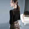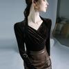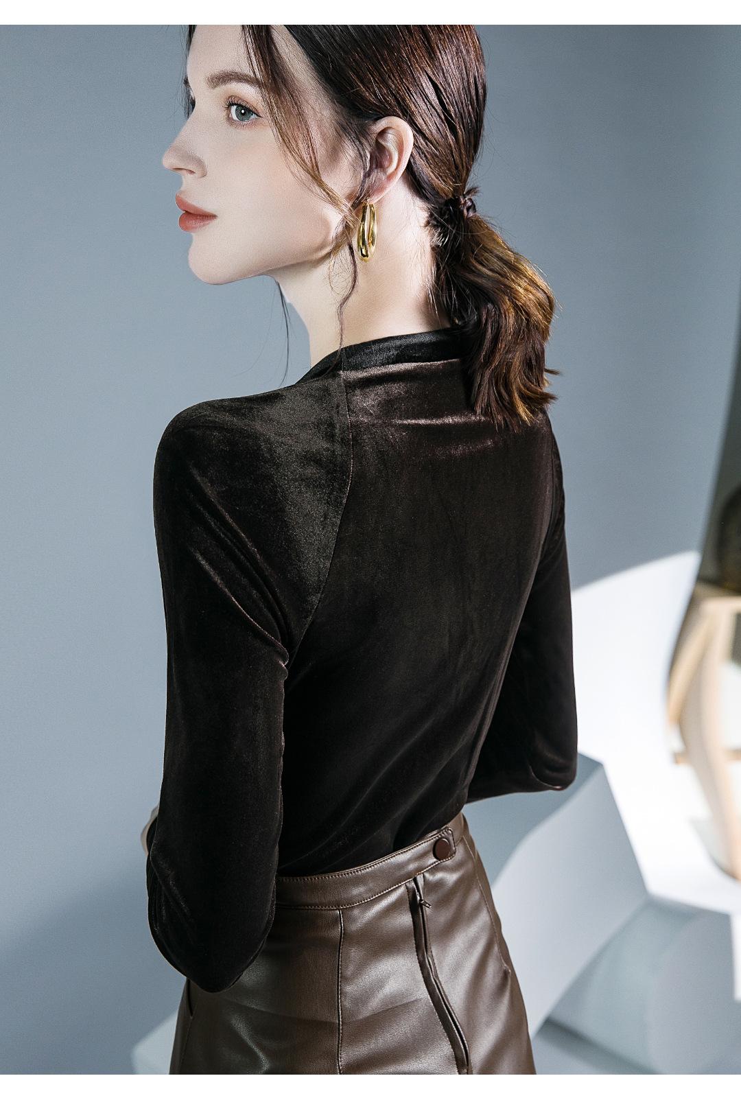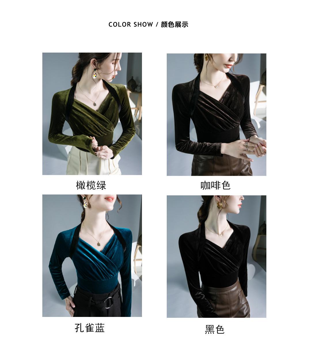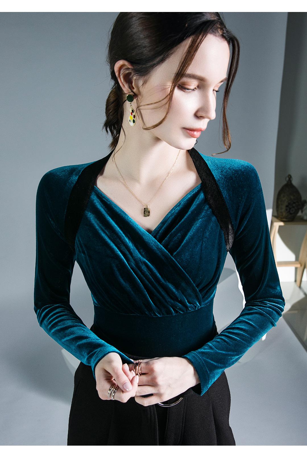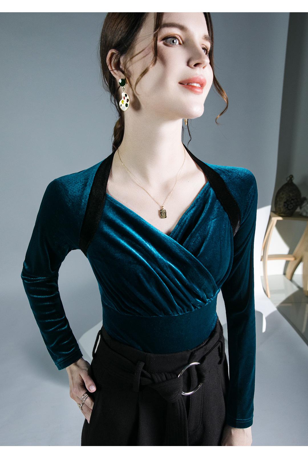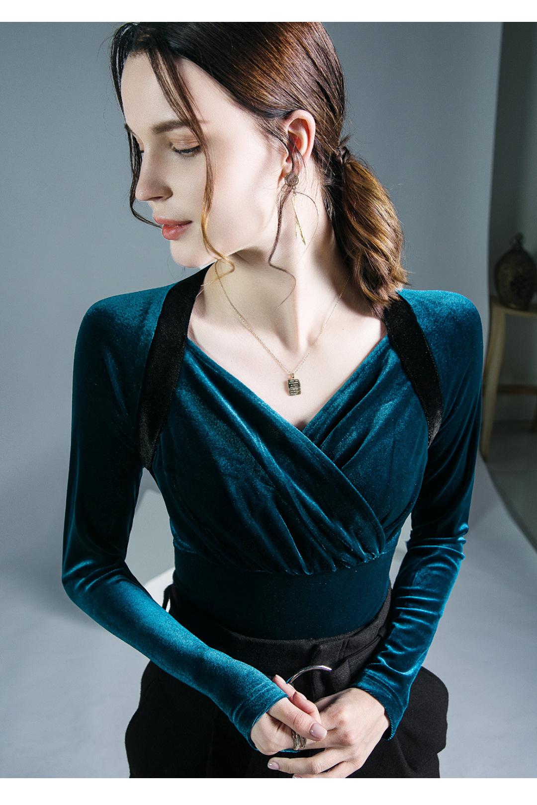 Camiseta interior de manga larga con cuello en V de terciopelo y costuras pequeñas europeas.