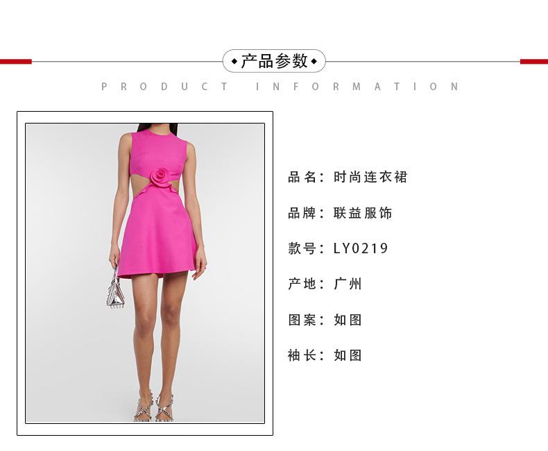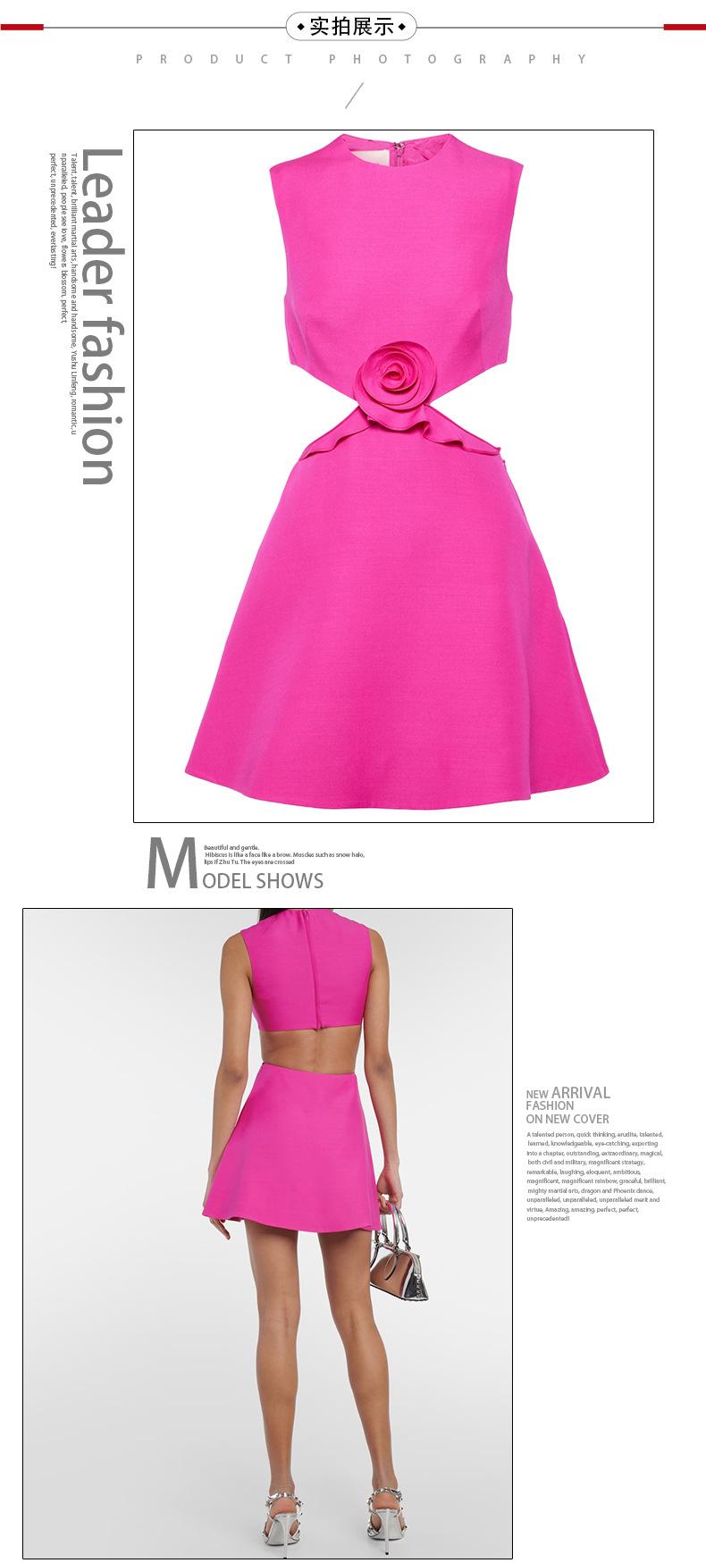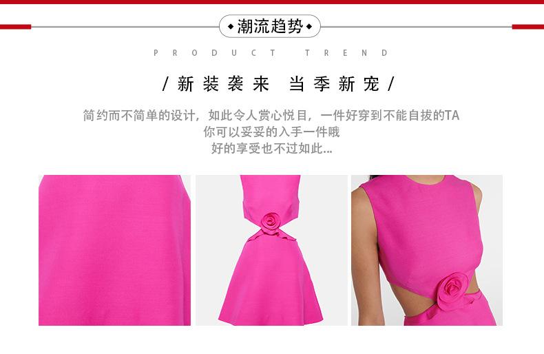 Vestido Sexy Sin Mangas con Vendaje en la Cintura con Flores Estilo Nuevo Exportación Europea y Americana 2024 Diseño de Cintura Falda Línea A
