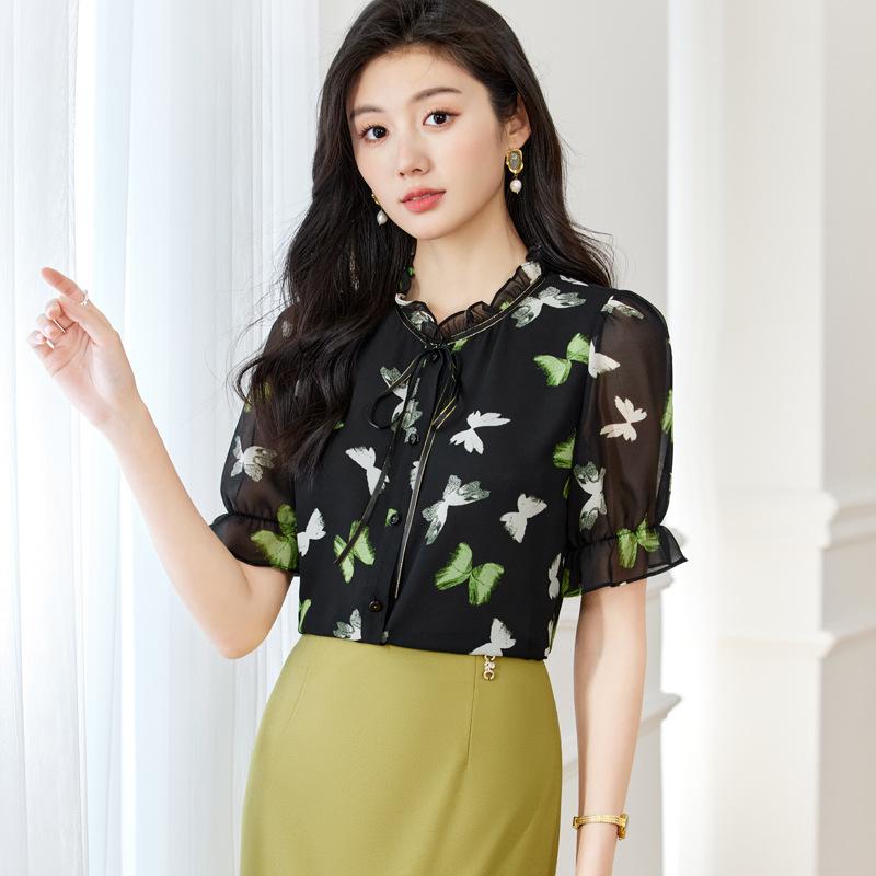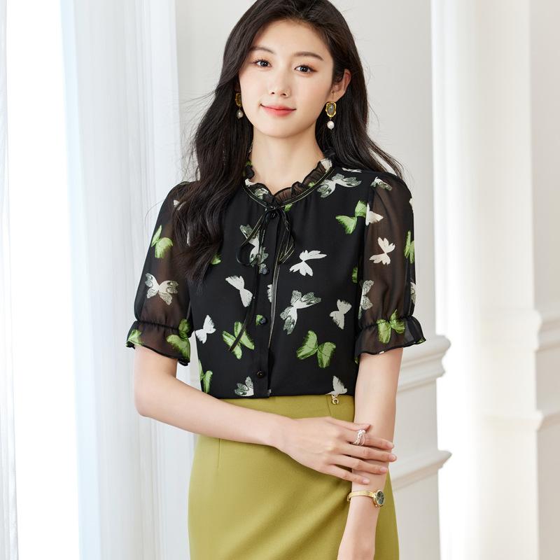 Nuevo Cárdigan de Chifón de Verano para Mujer Estampado de Mariposas Blusa Pequeña para Mujer Top Holgado