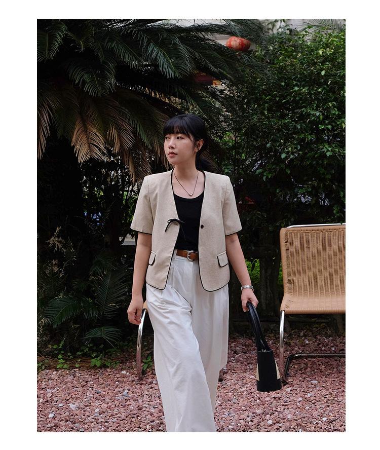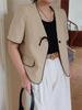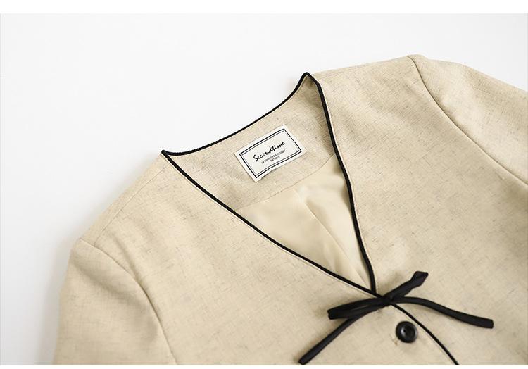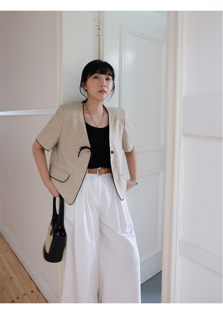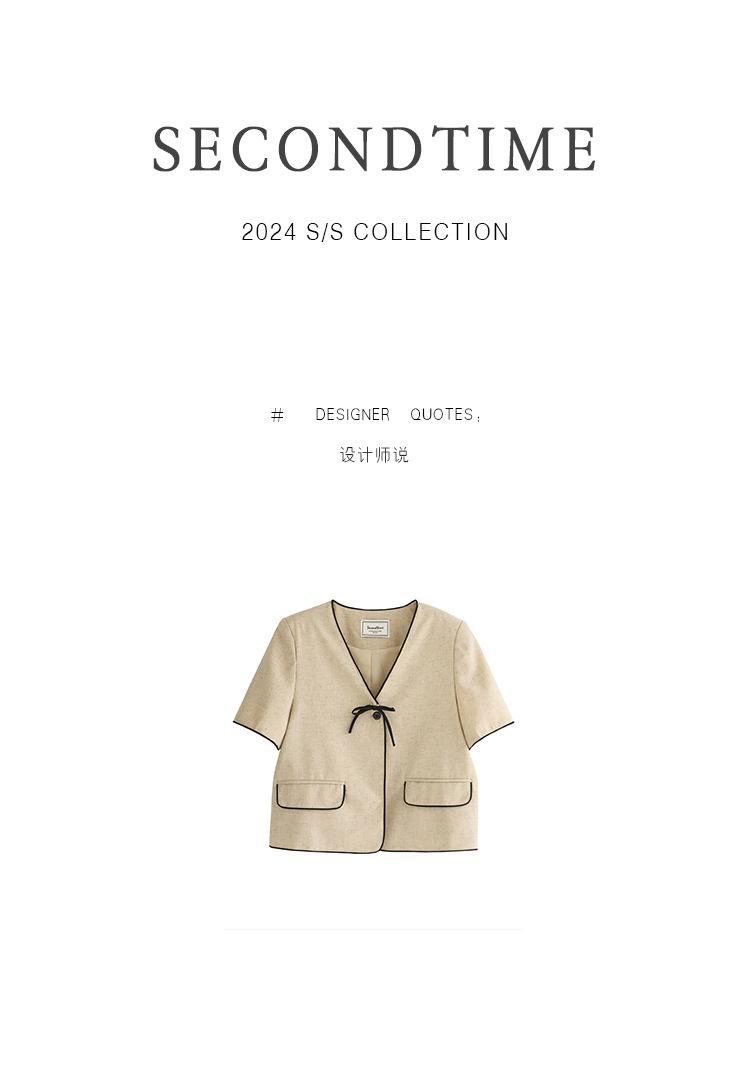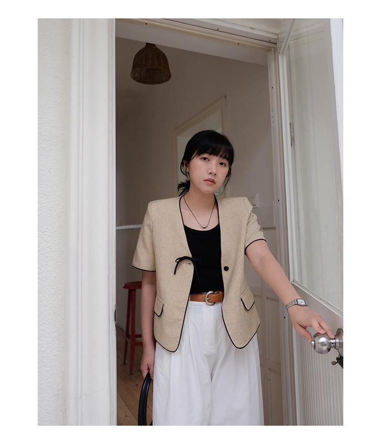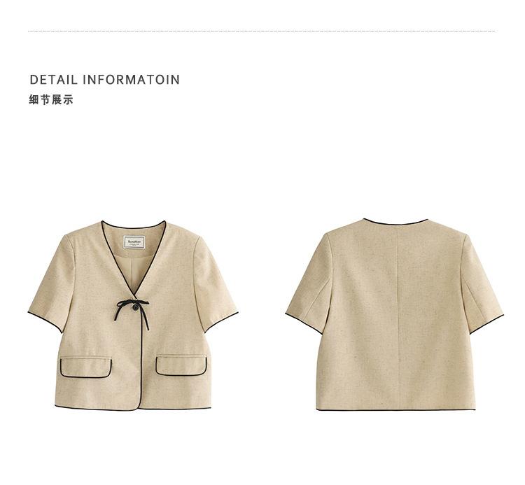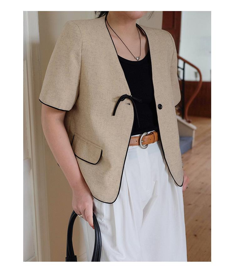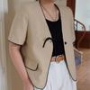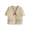 Lehu Estilo Coreano Simple Estilo Pequeño Fragante Lazo Blazer Corto Elegante de Manga Corta 6571