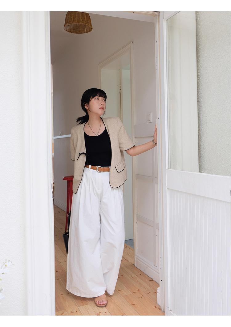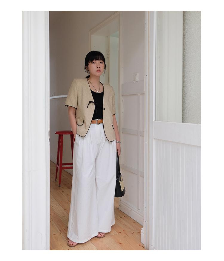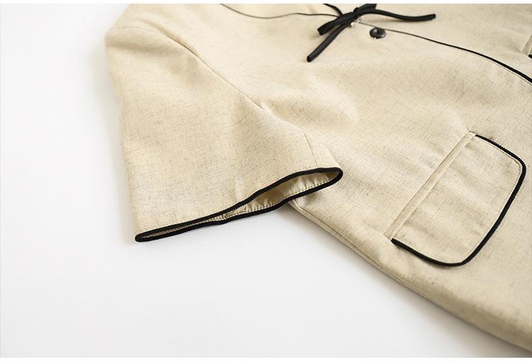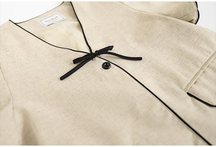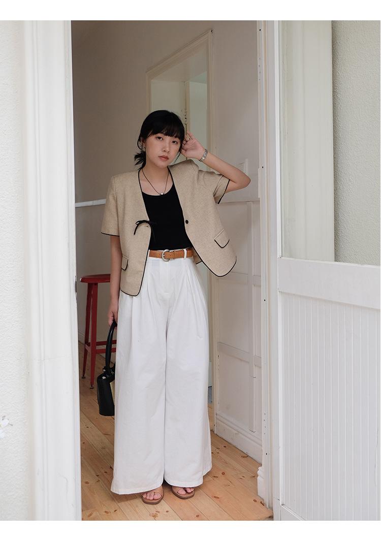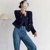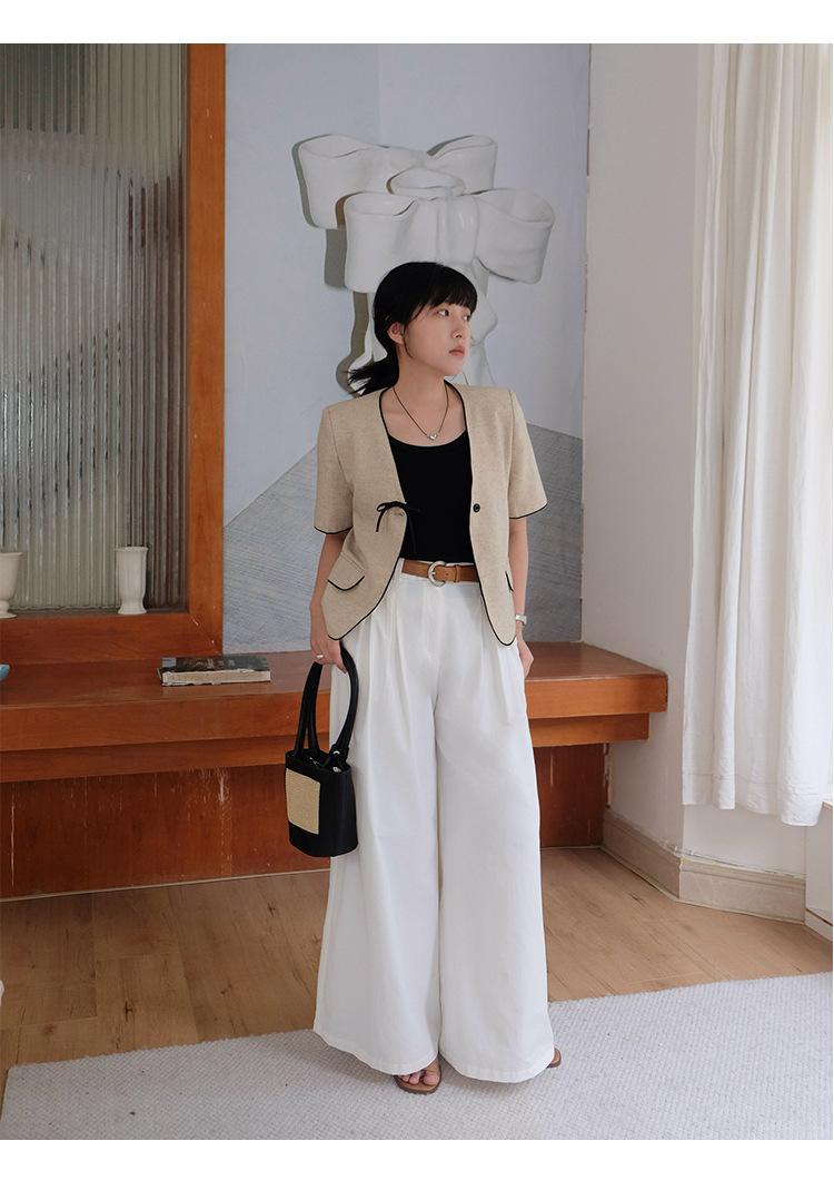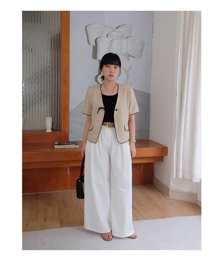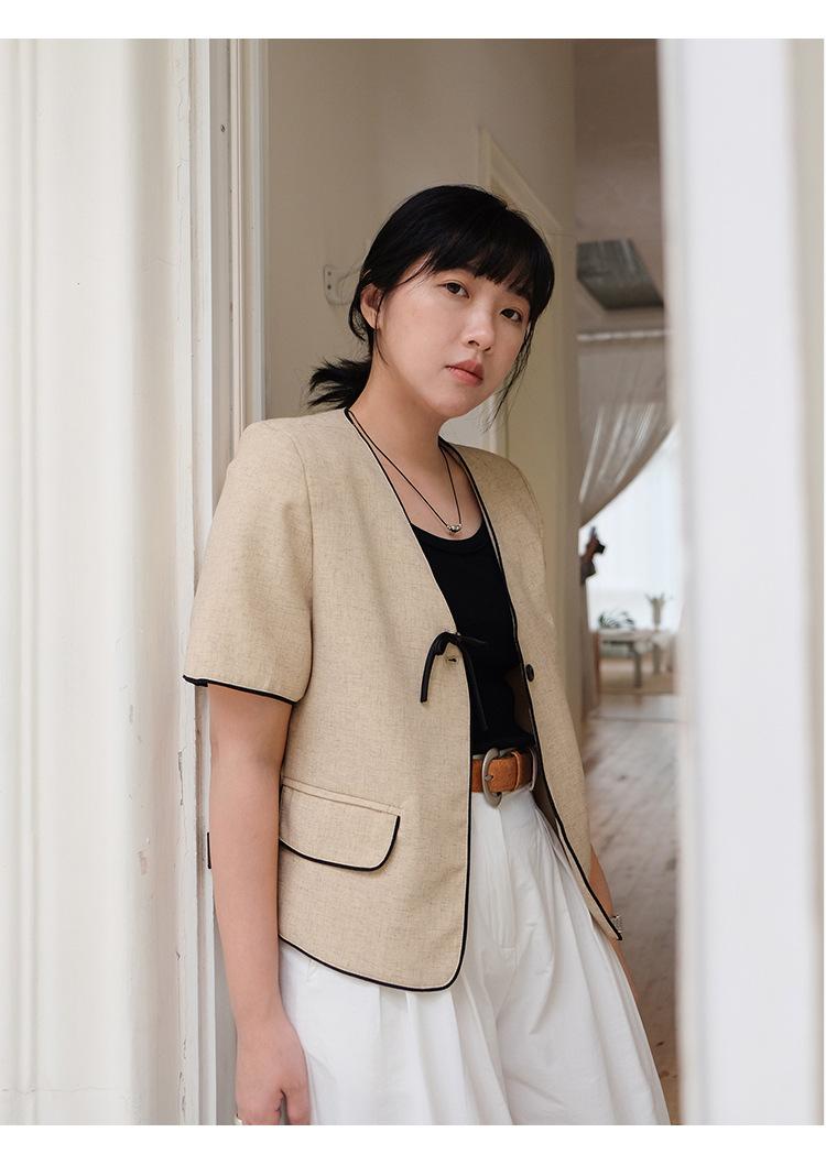 Lehu Estilo Coreano Simple Estilo Pequeño Fragante Lazo Blazer Corto Elegante de Manga Corta 6571