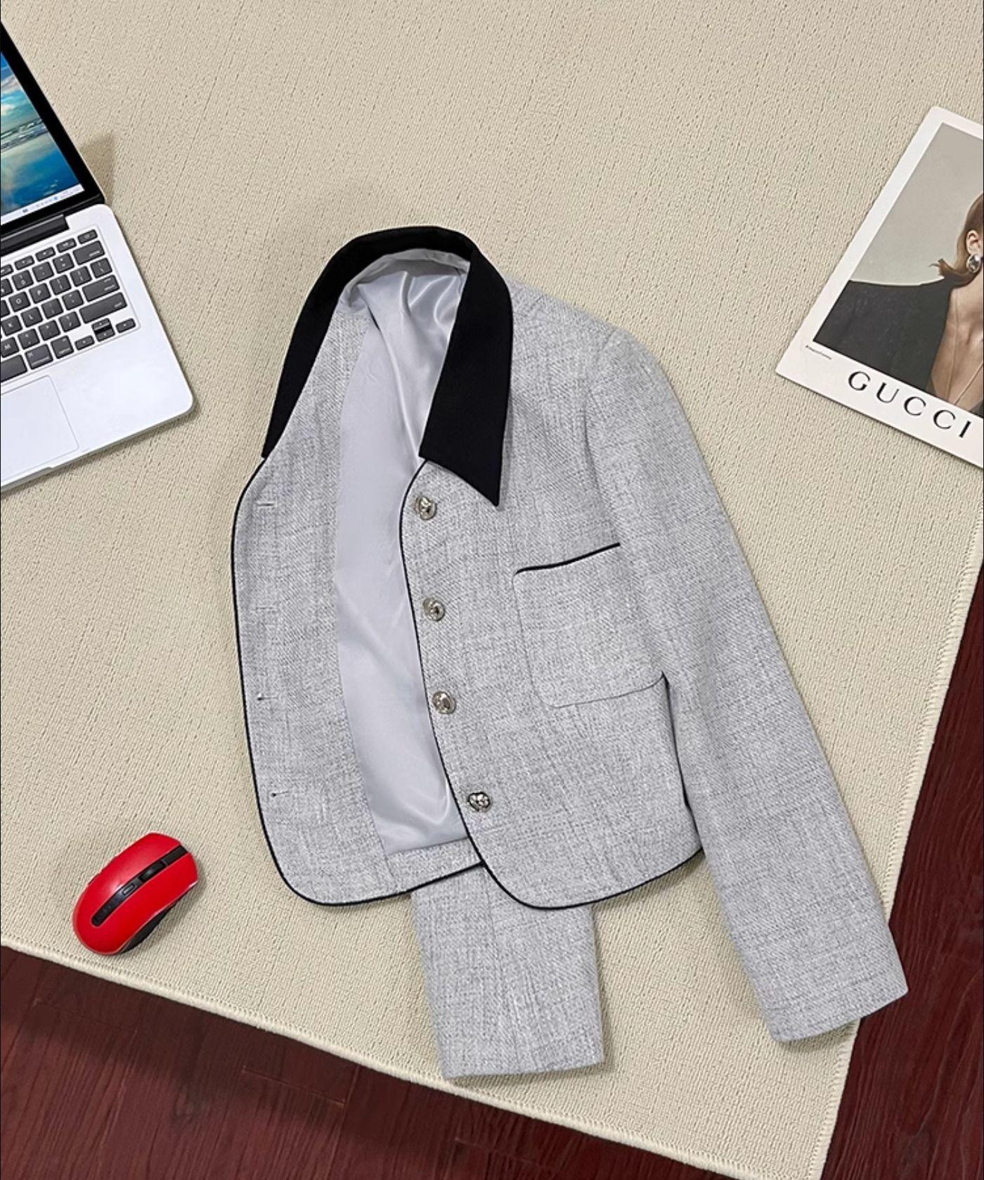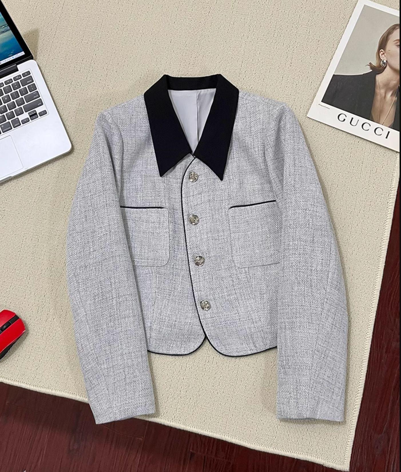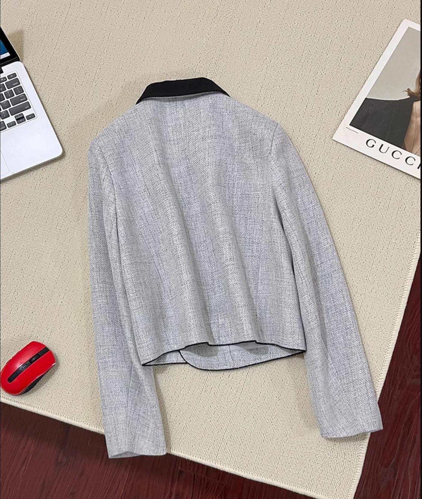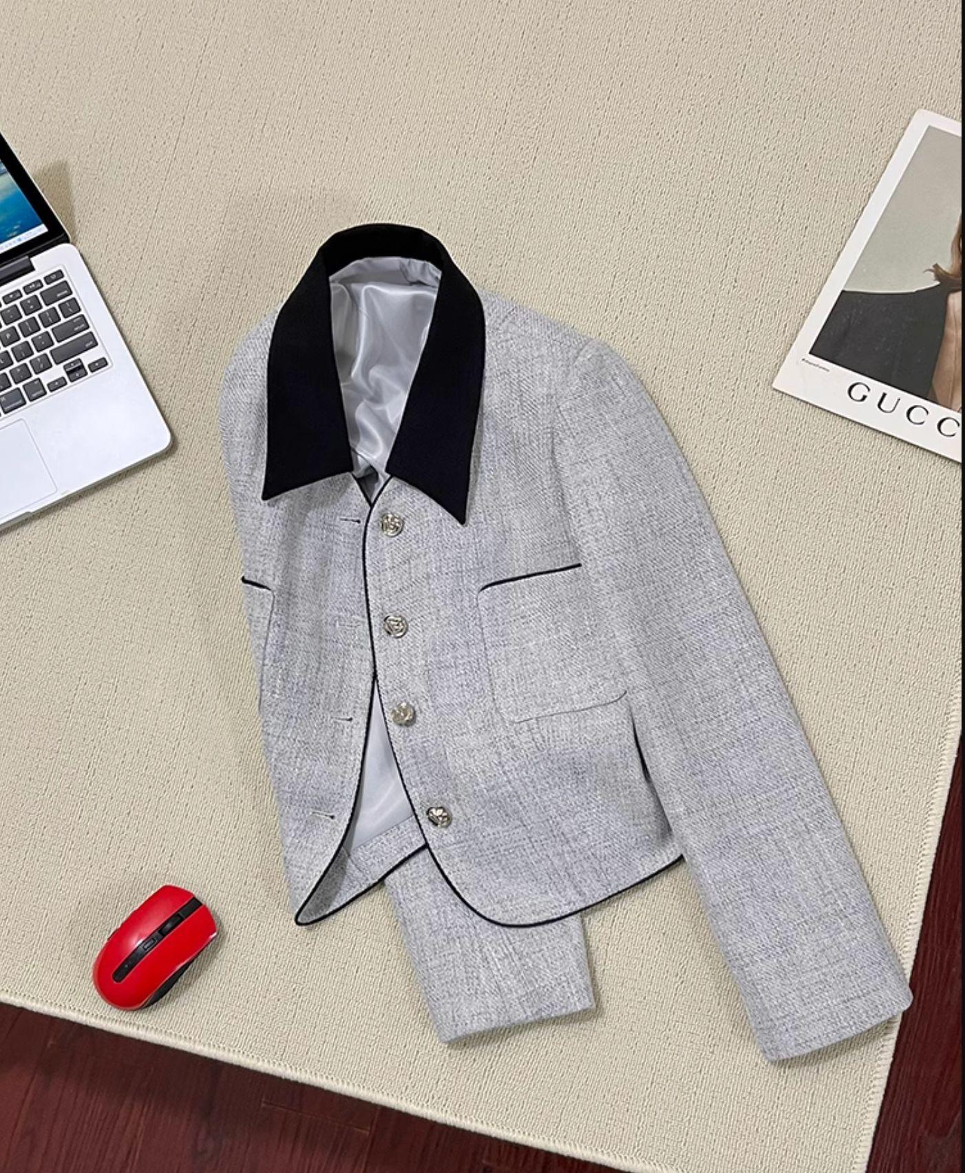 Blazer Corto Gris Estilo para Mujer 2025 Primavera Nuevo Estilo Estilo Dama Francesa Traje Casual Popular