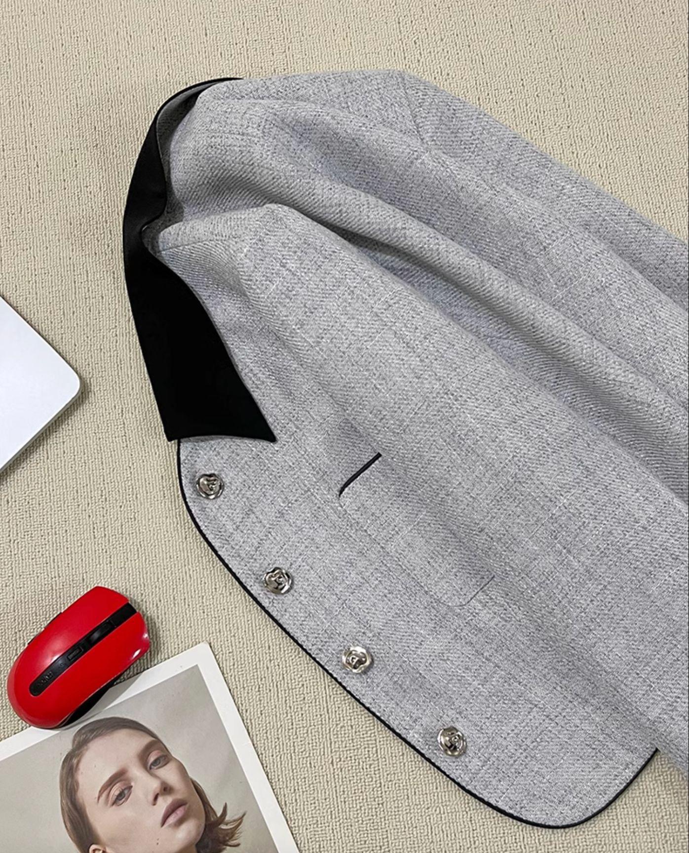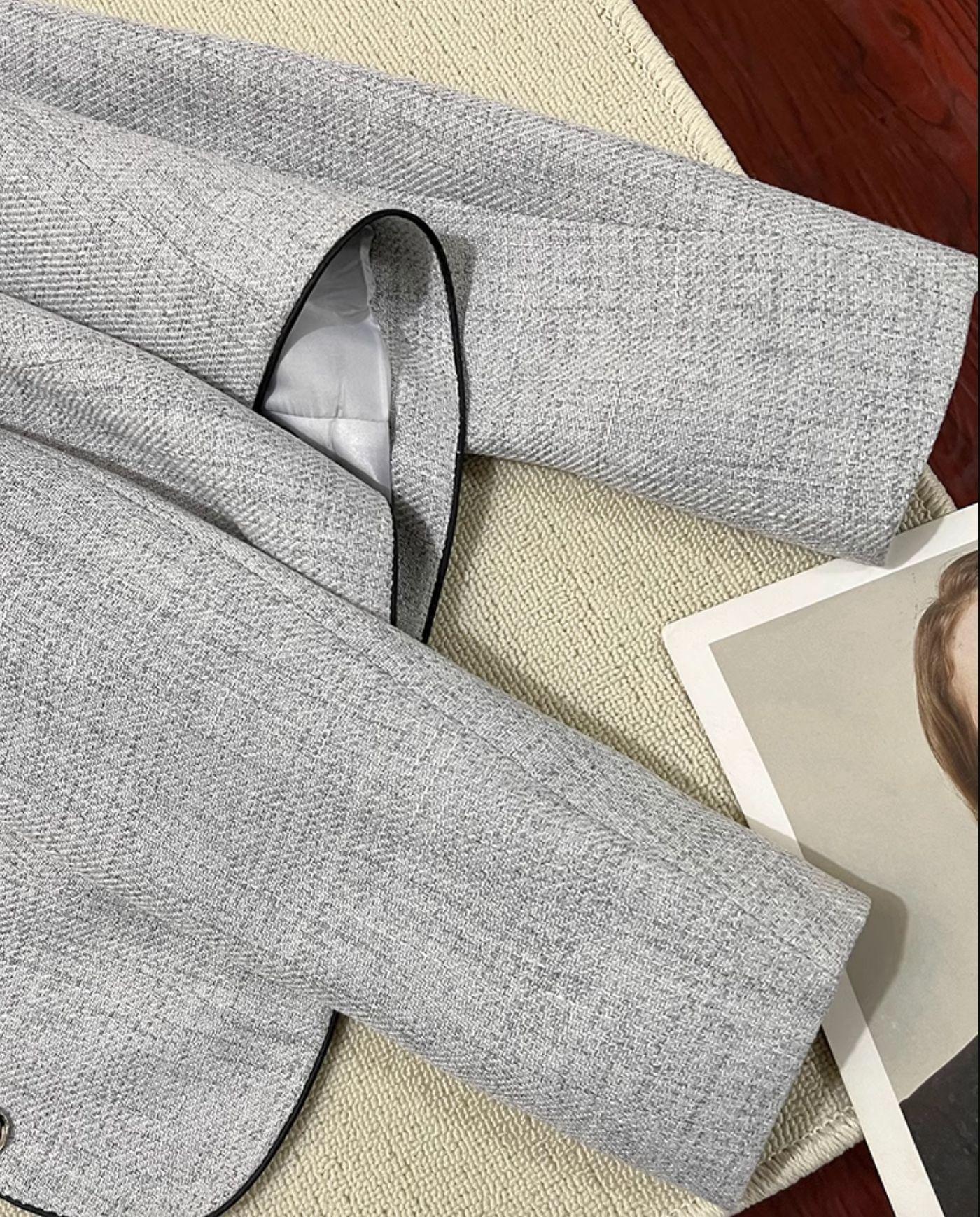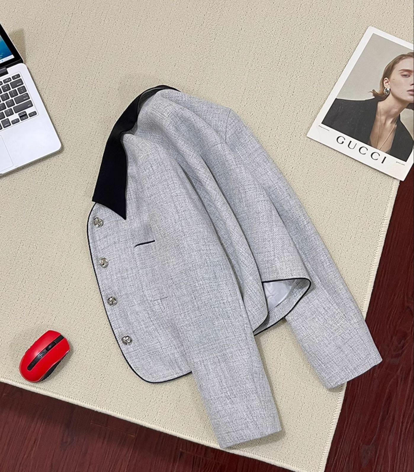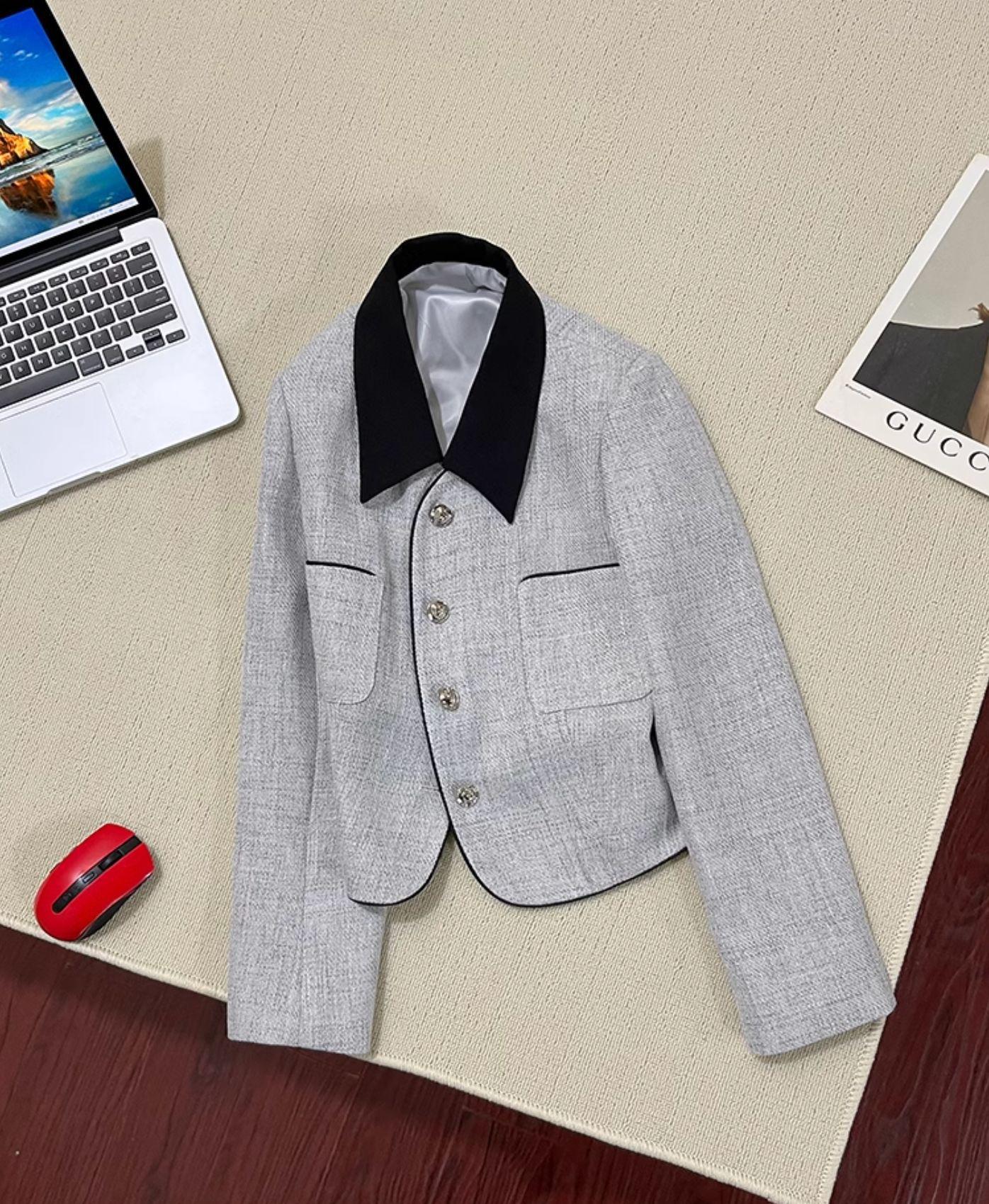 Blazer Corto Gris Estilo para Mujer 2025 Primavera Nuevo Estilo Estilo Dama Francesa Traje Casual Popular