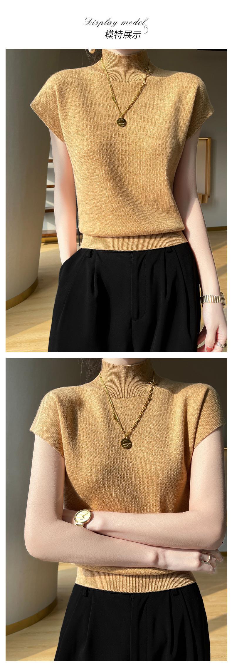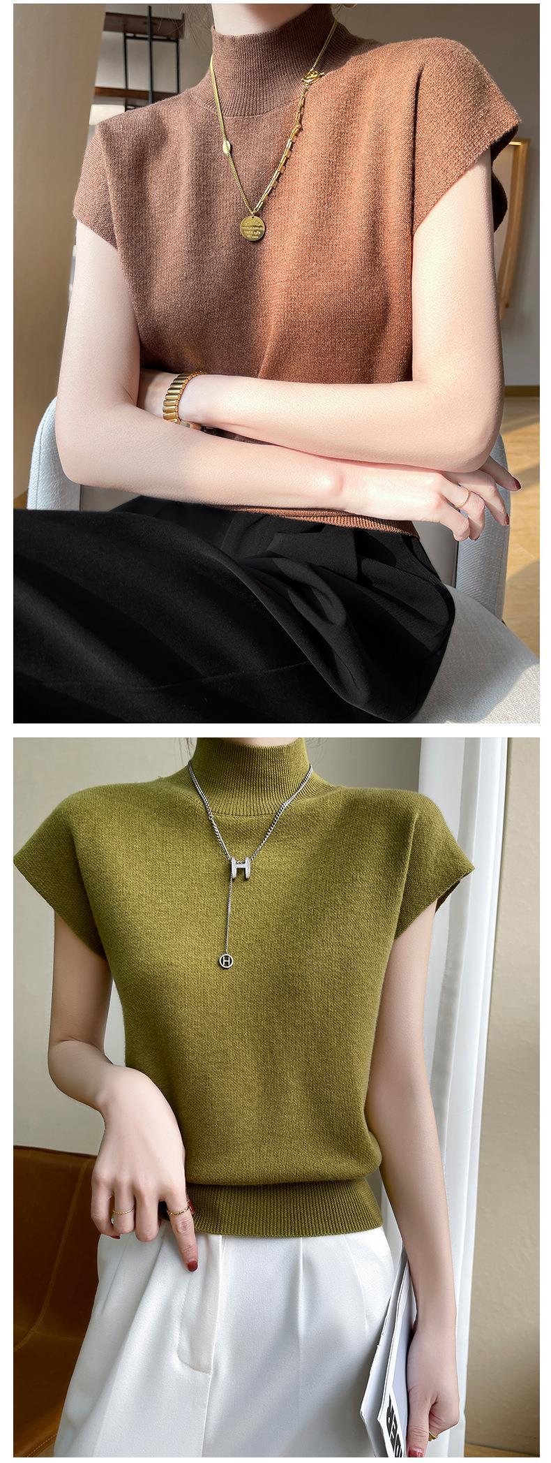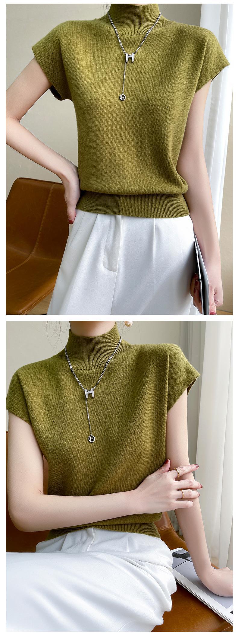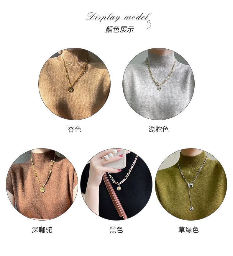 Otoño e invierno 2022 Nuevo suéter de lana de tres cuartos con cuello medio alto, moderno, de color sólido, combinable, suéter interior