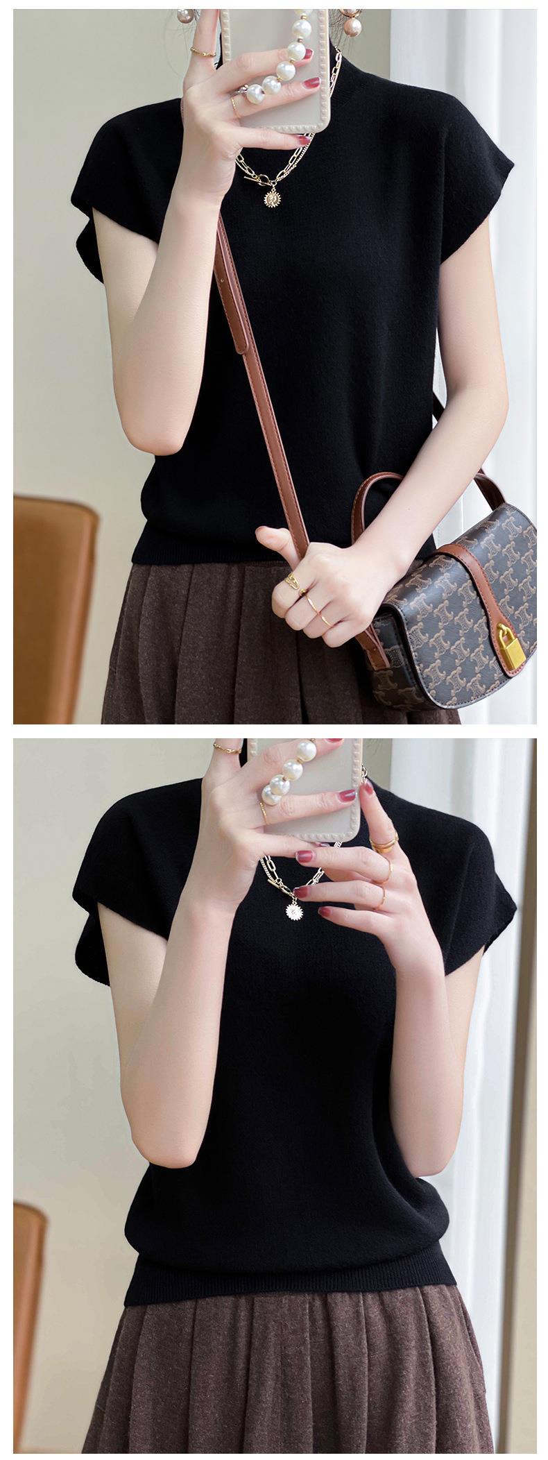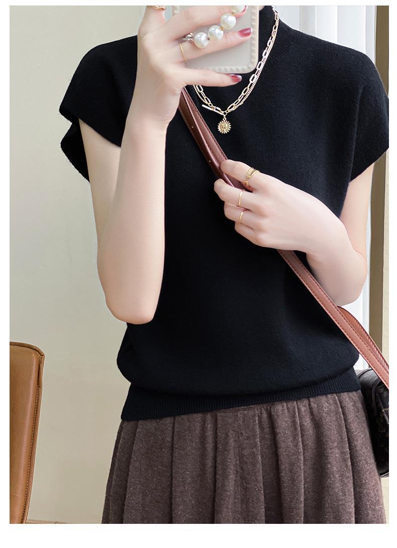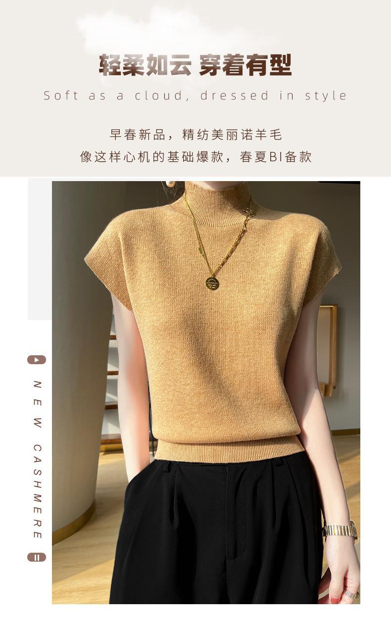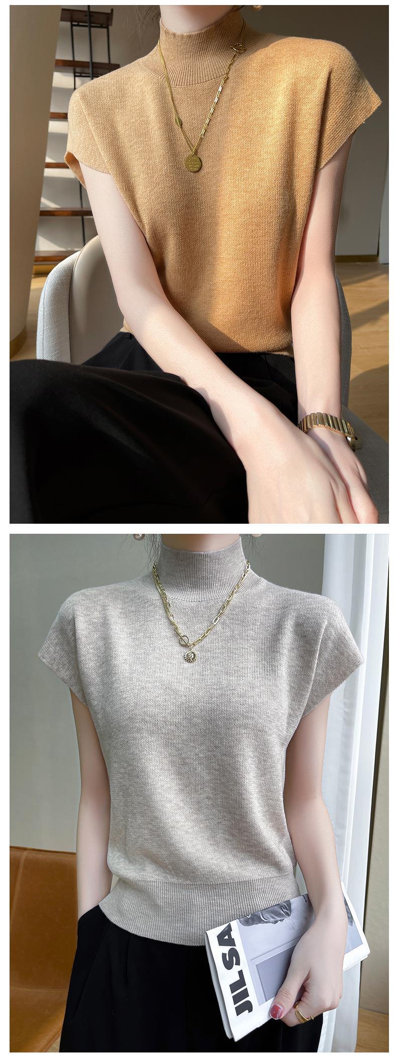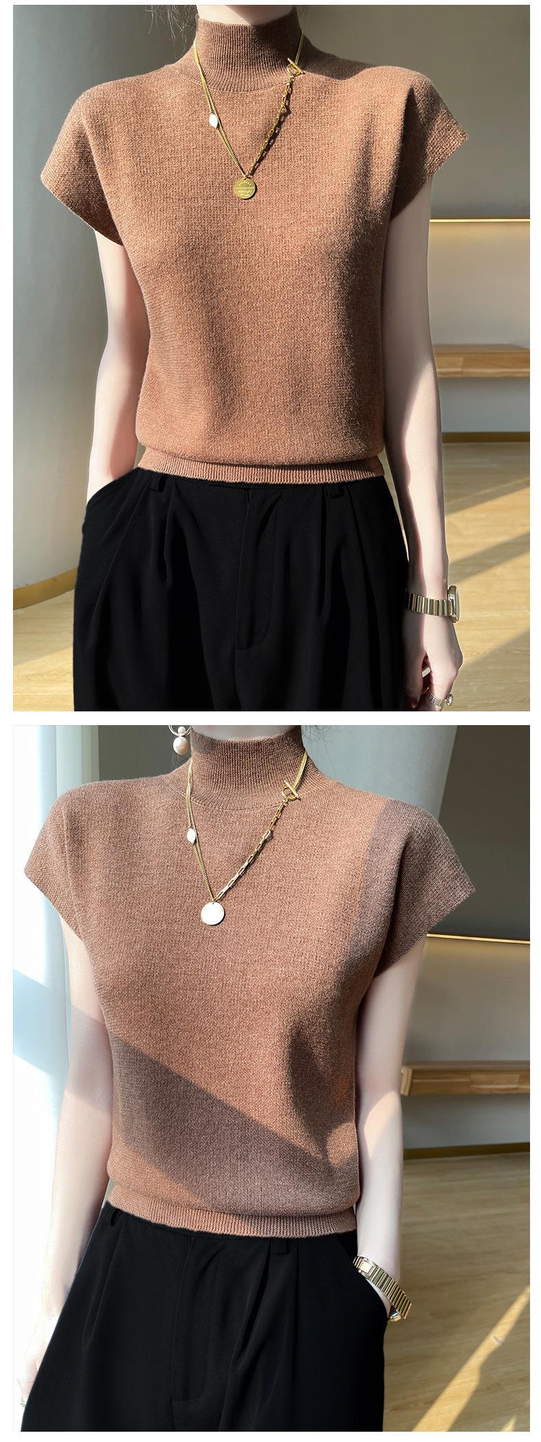 Otoño e invierno 2022 Nuevo suéter de lana de tres cuartos con cuello medio alto, moderno, de color sólido, combinable, suéter interior