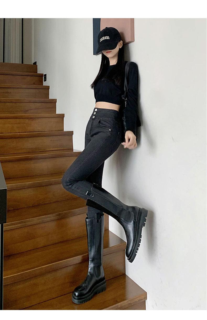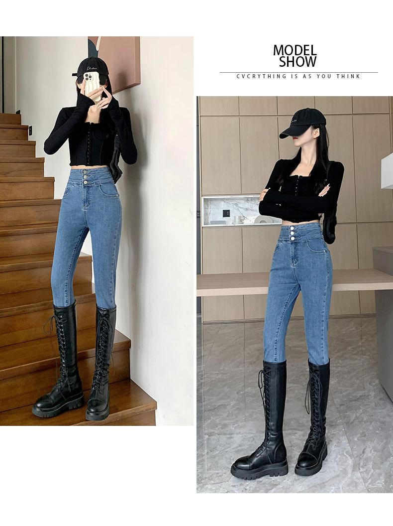 Jeans de Cintura Alta para Mujer 2025 Nuevo Primavera y Otoño Ajustados Elásticos Adelgazantes Look Otoño Pantalones Lápiz