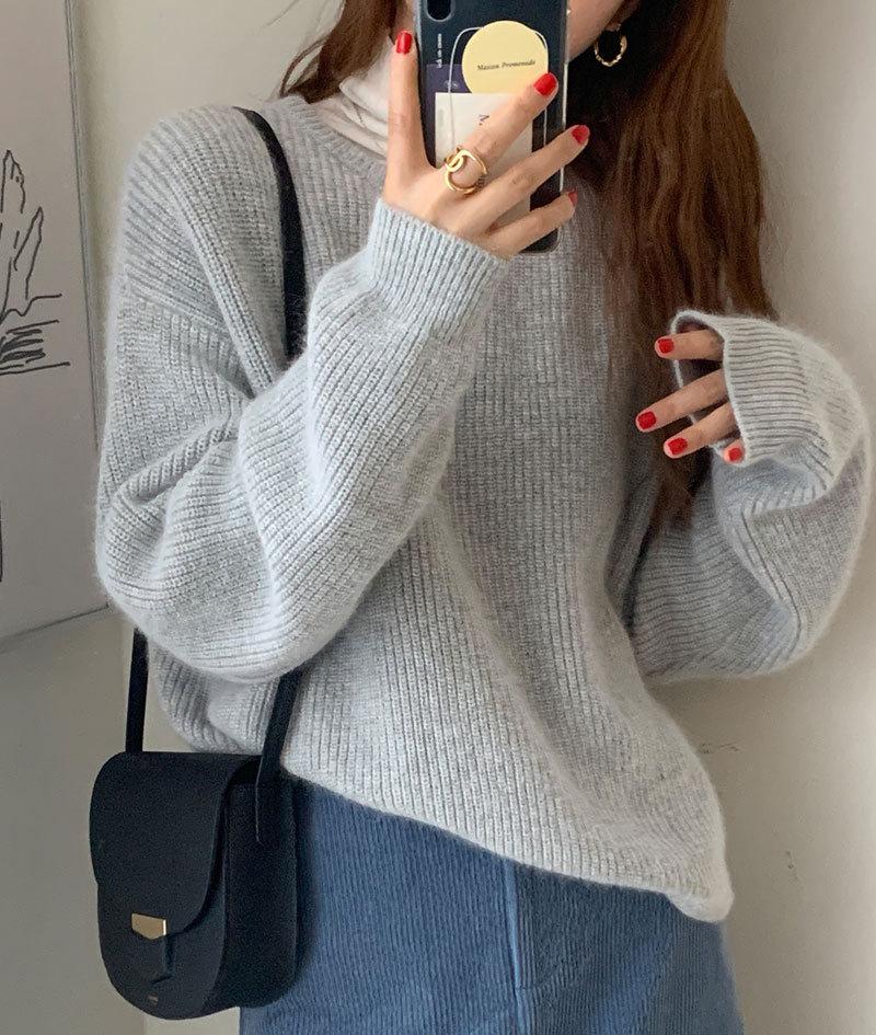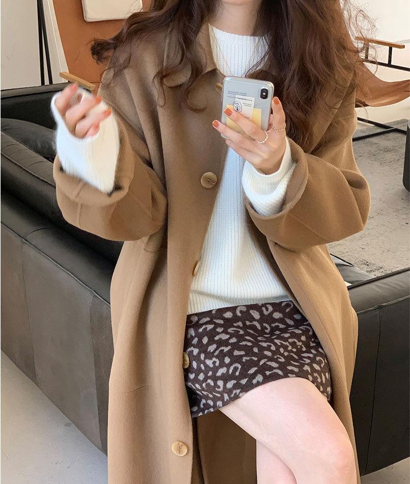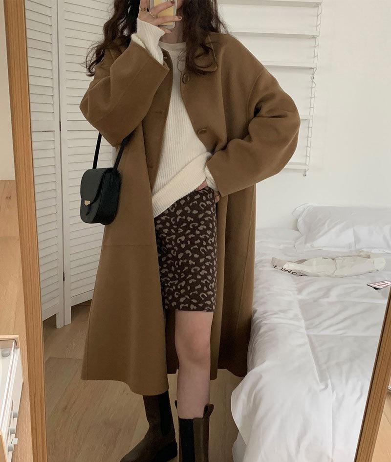 Abrigo de lana nuevo de otoño e invierno para mujer, tejido de punto grueso, cuello de piel de visón, manga larga, bajo irregular