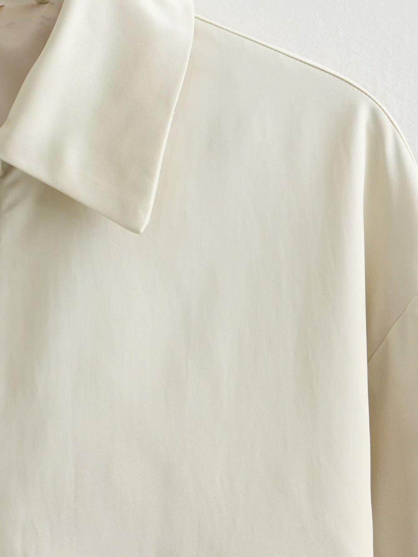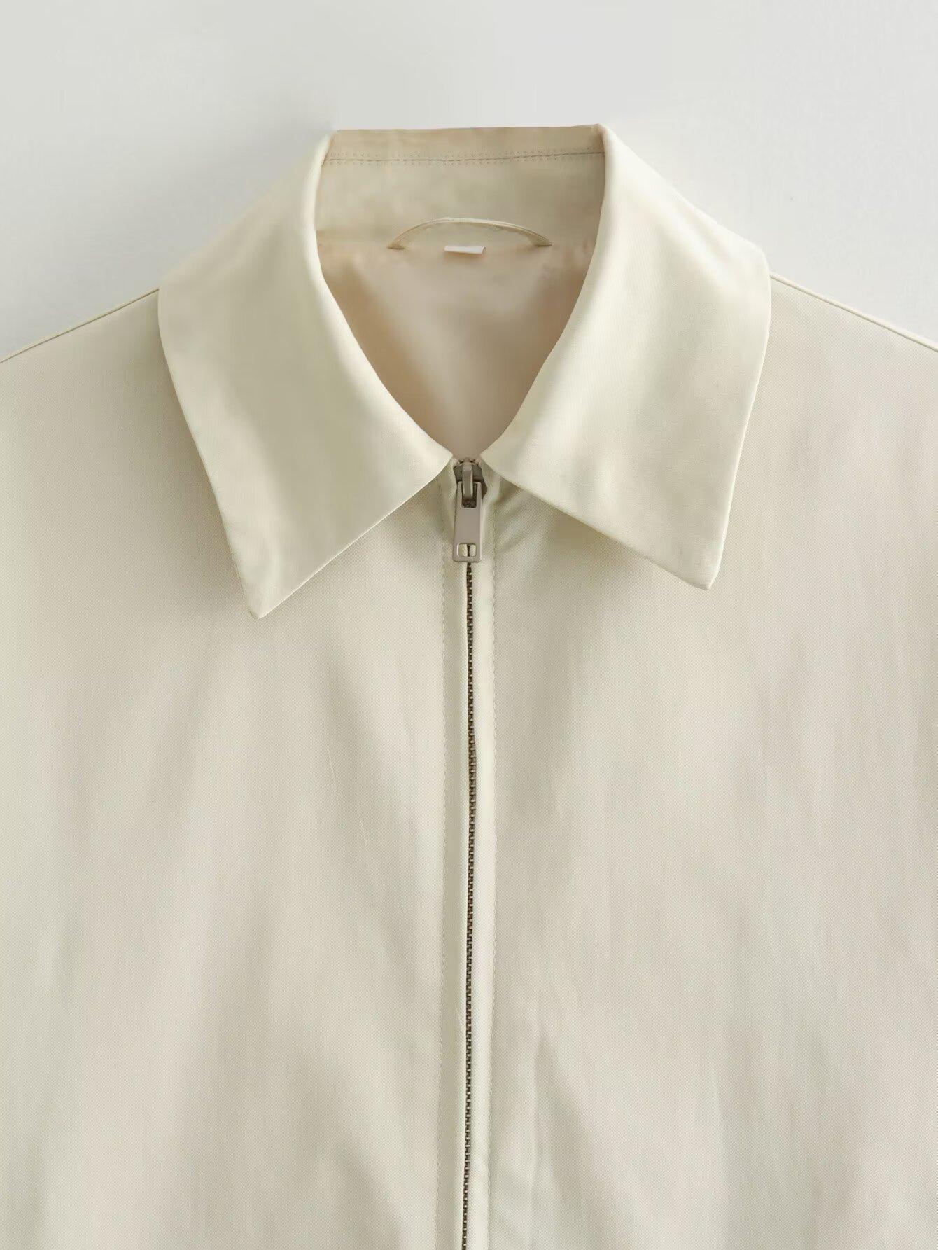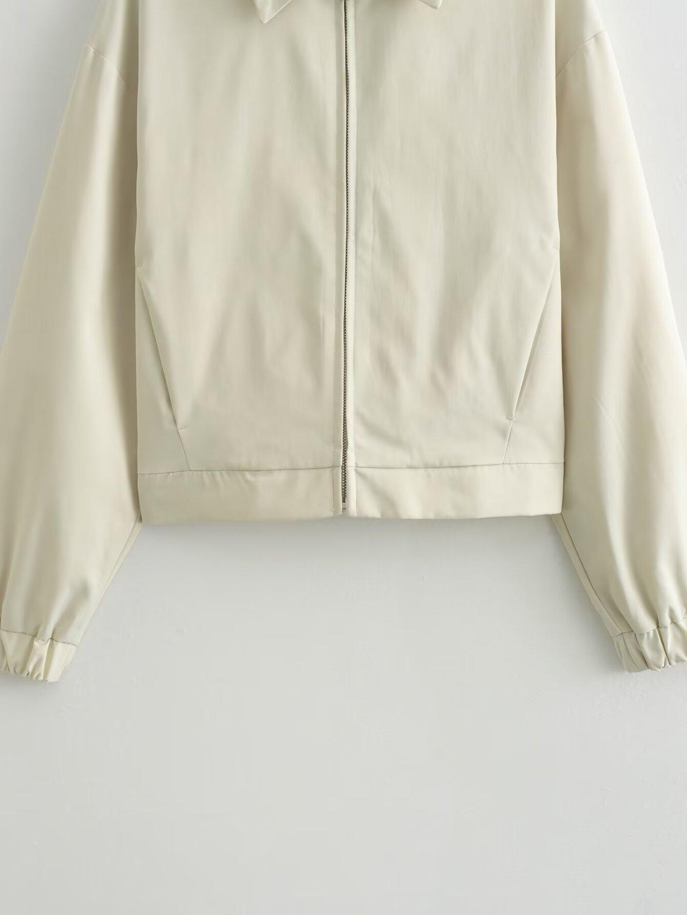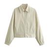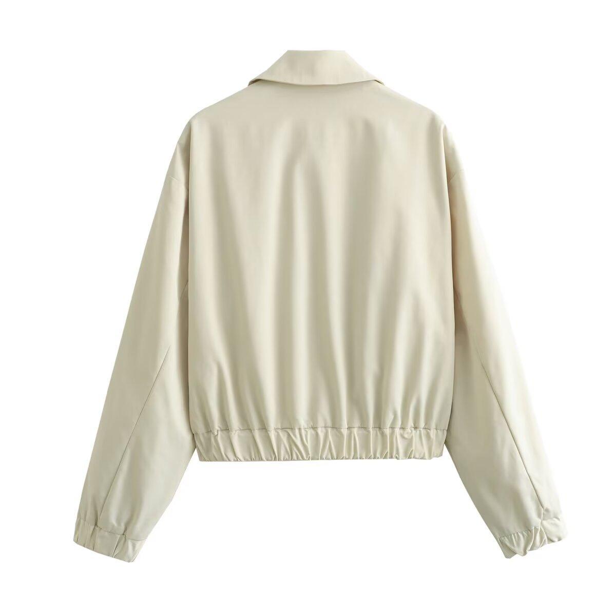 Ropa Europea y Americana 2024 Verano Moda Urbana Versátil Chaqueta con Cremallera de Color Puro Solapa Manga Larga Holgada Casual