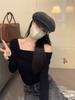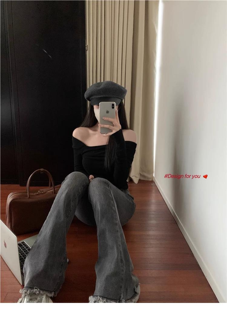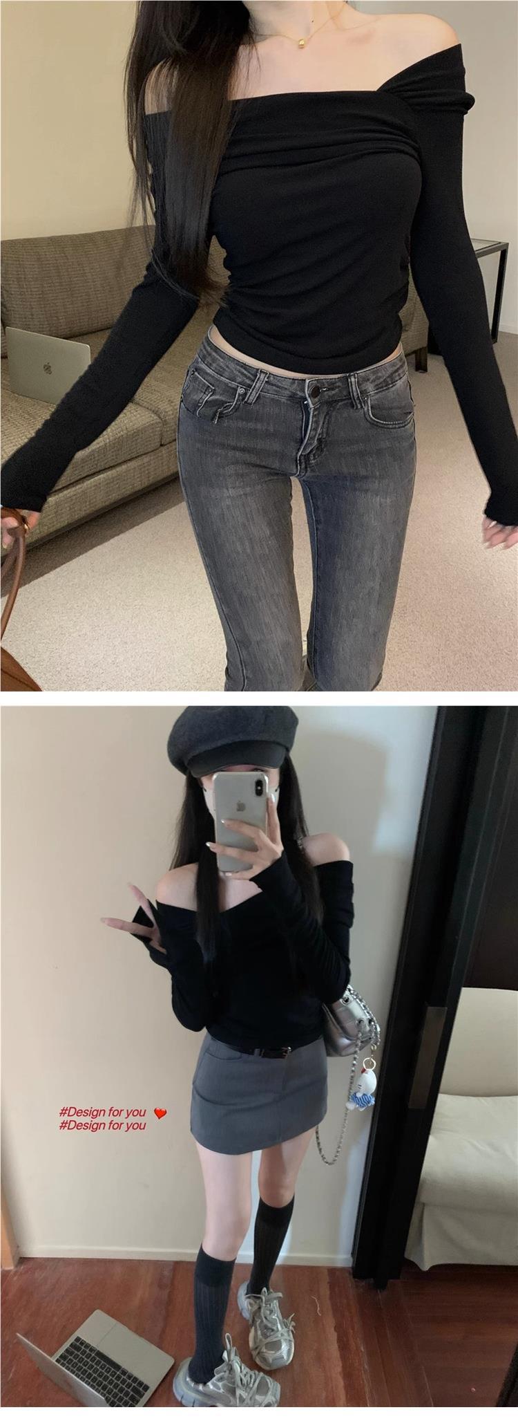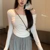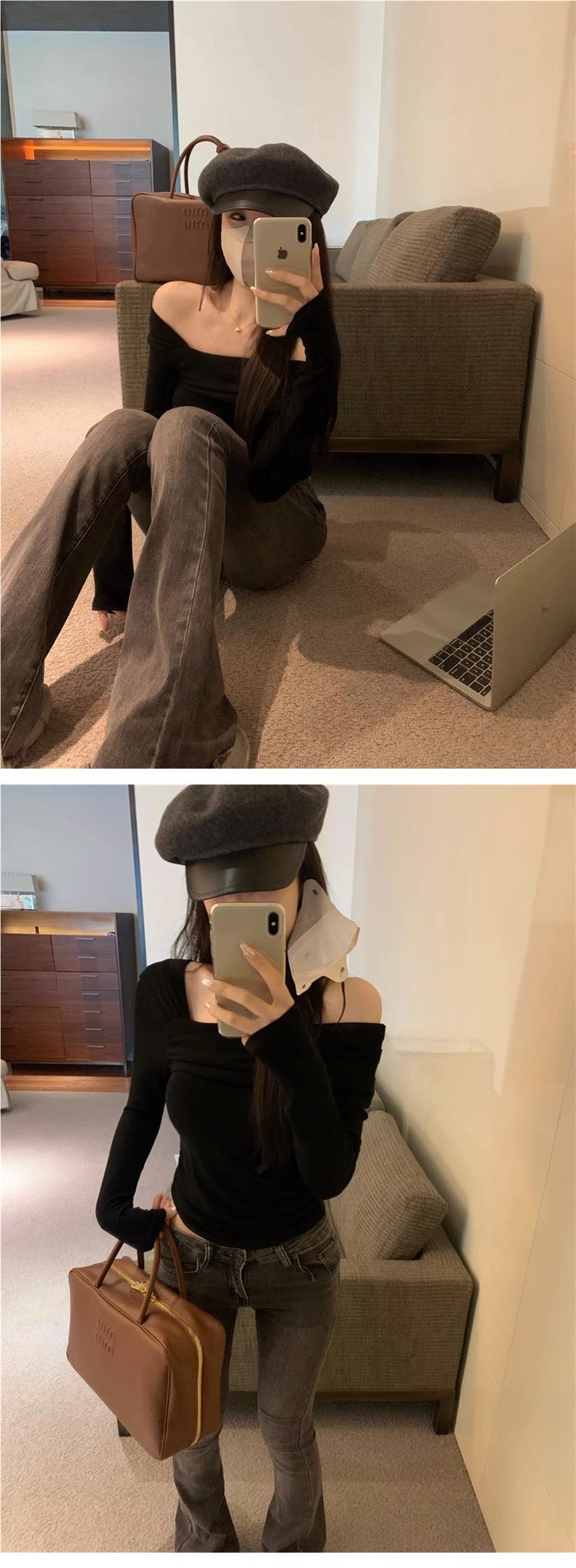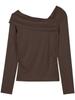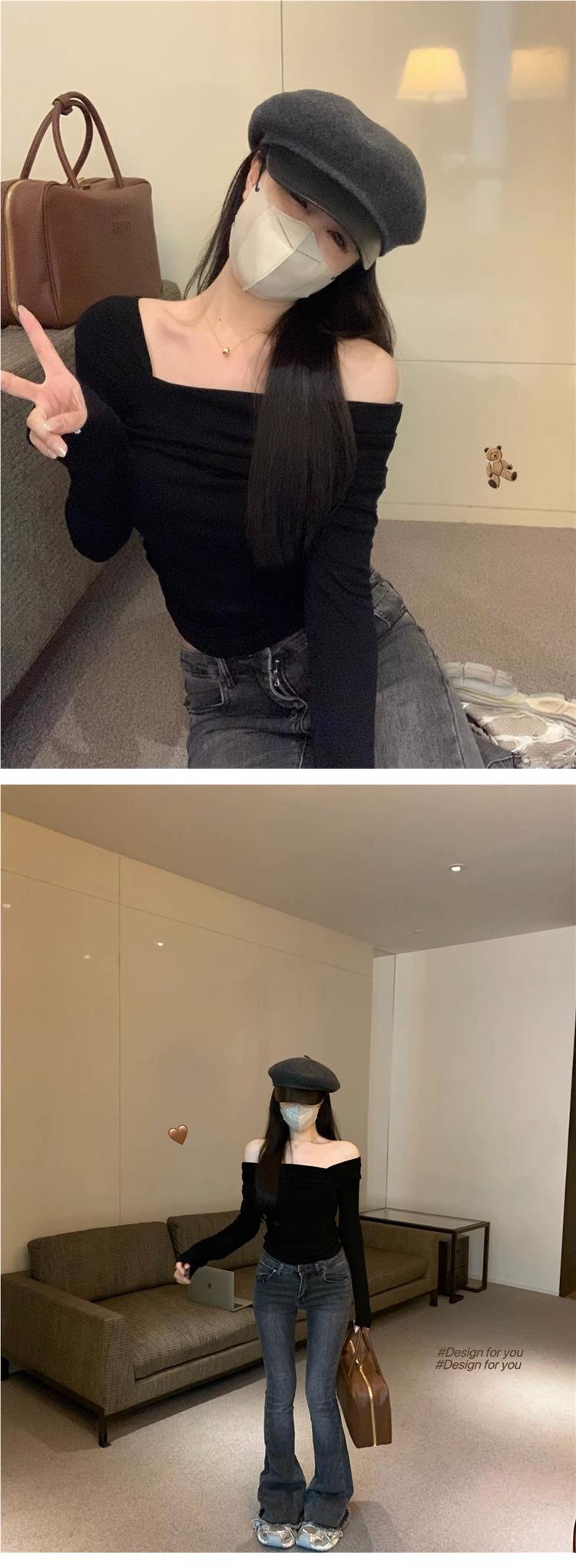 Camiseta de manga larga de polar con hombros descubiertos para mujer, elegante, ajustada, de otoño e invierno, con base interior corta y cálida.