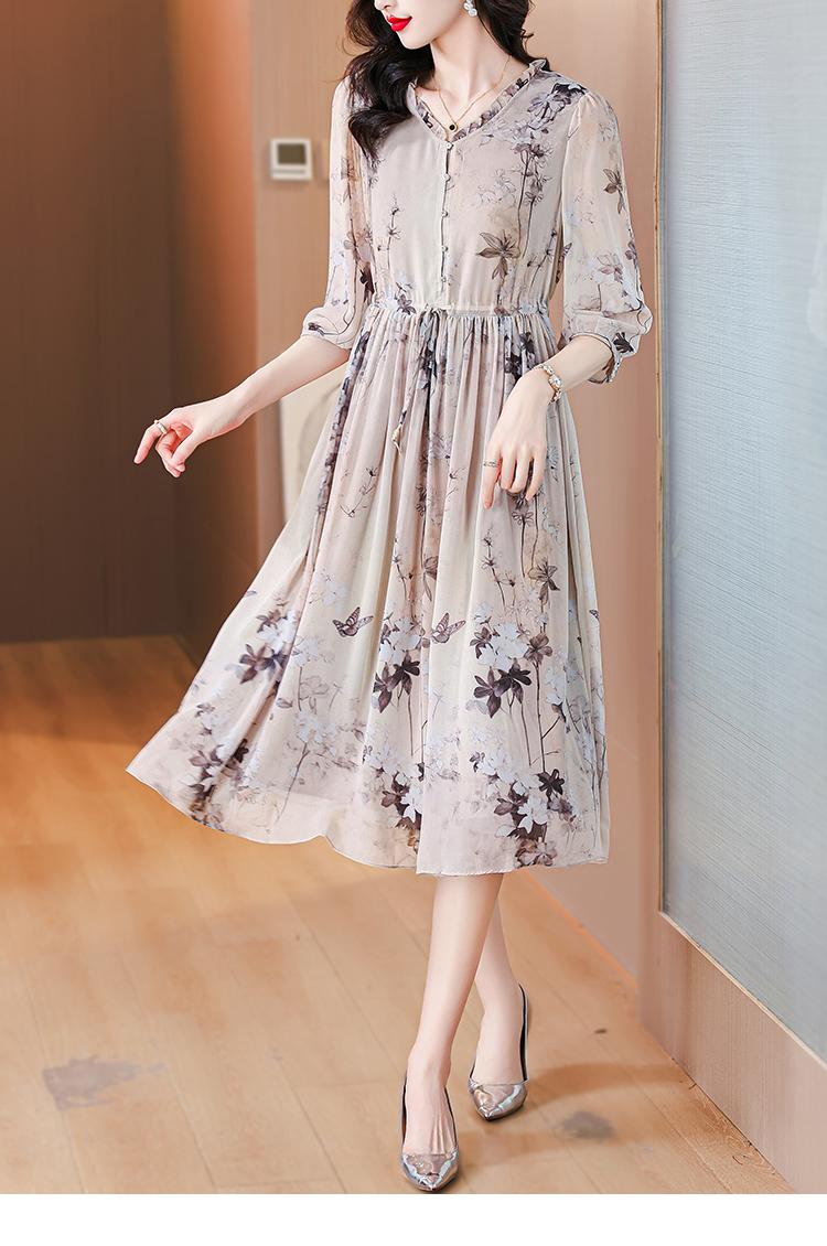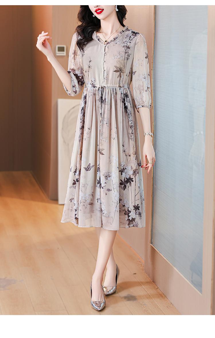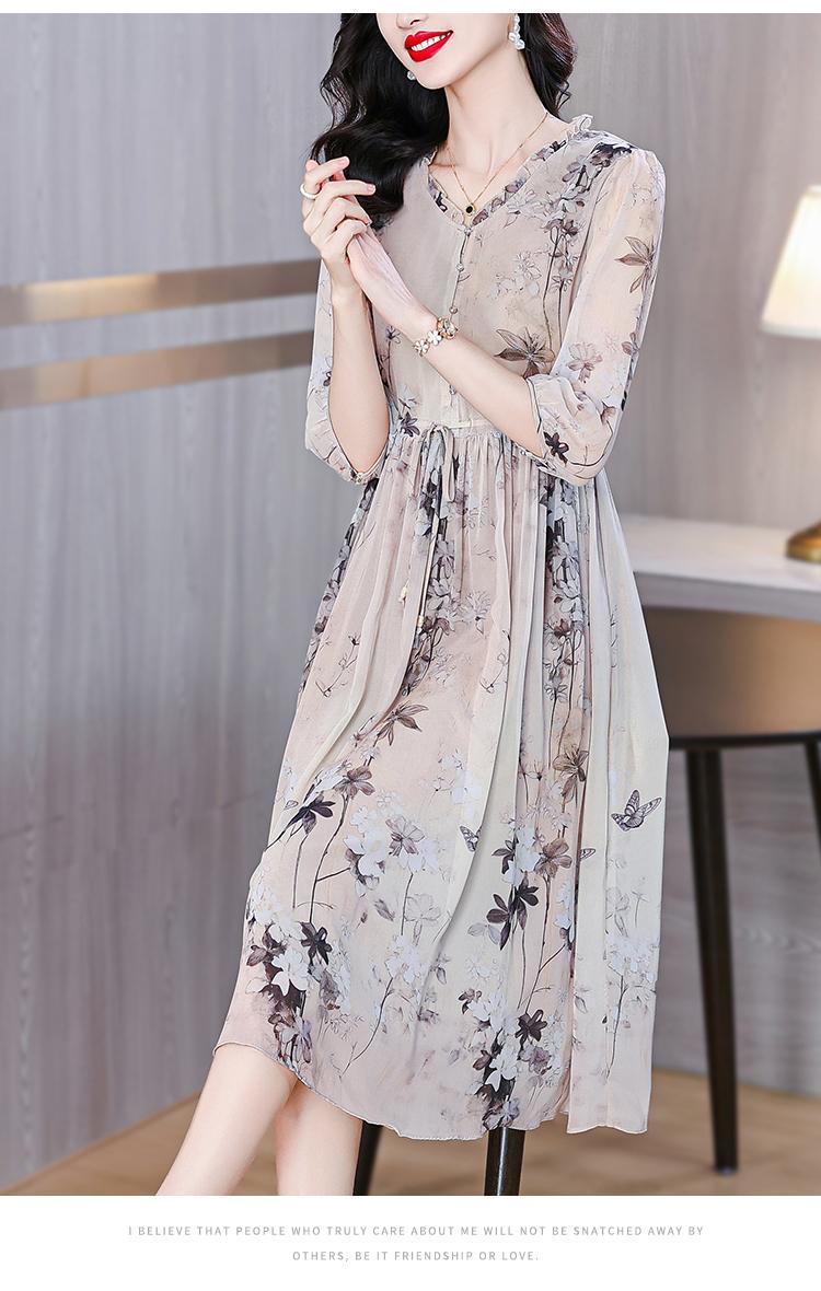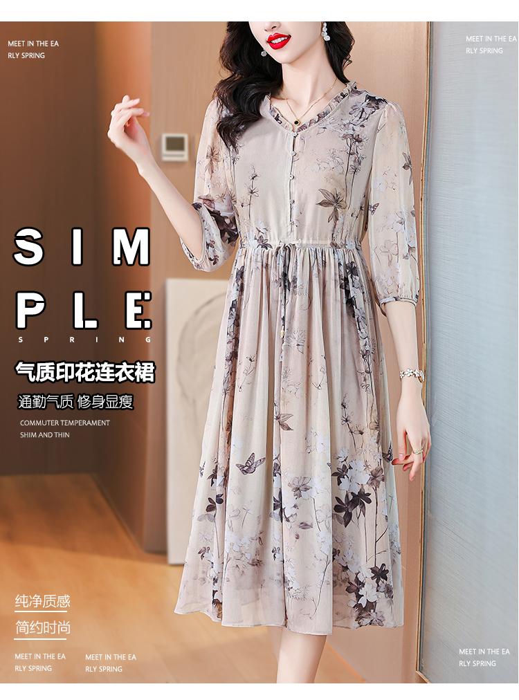 Compra Marca vestido de seda al por mayor para mujer verano 2024 nuevo seda de morera estampado adelgazante de cintura falda midi marea al por mayor en Joom.pro