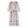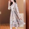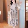 Marca vestido de seda al por mayor para mujer verano 2024 nuevo seda de morera estampado adelgazante de cintura falda midi marea