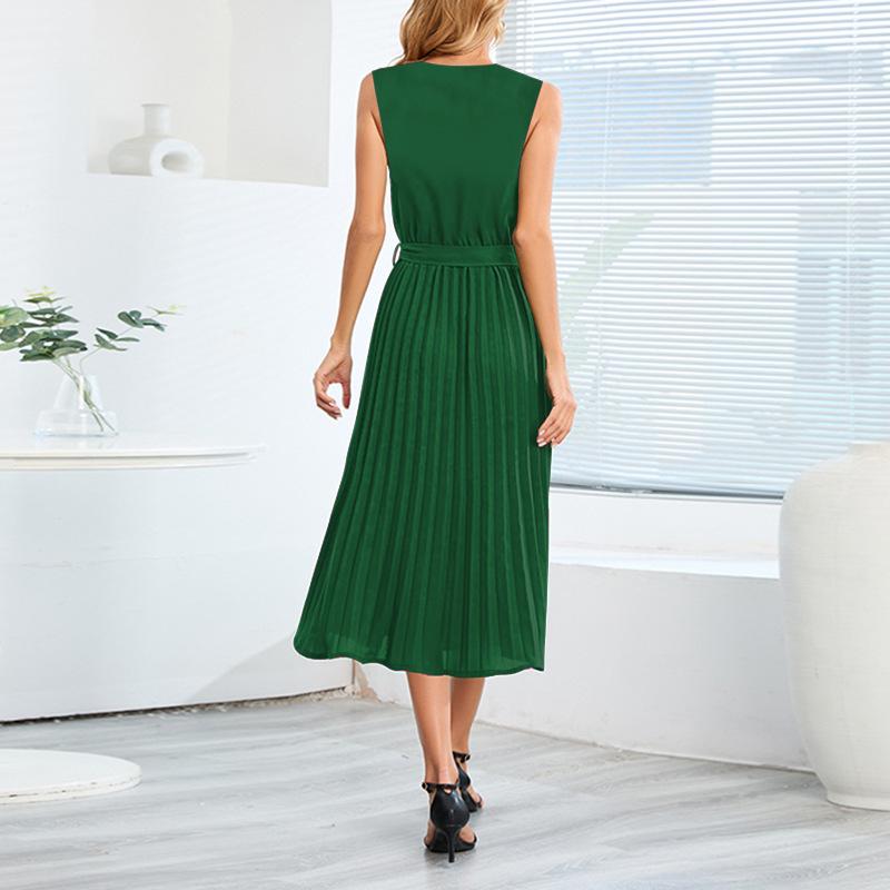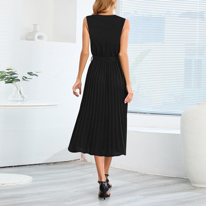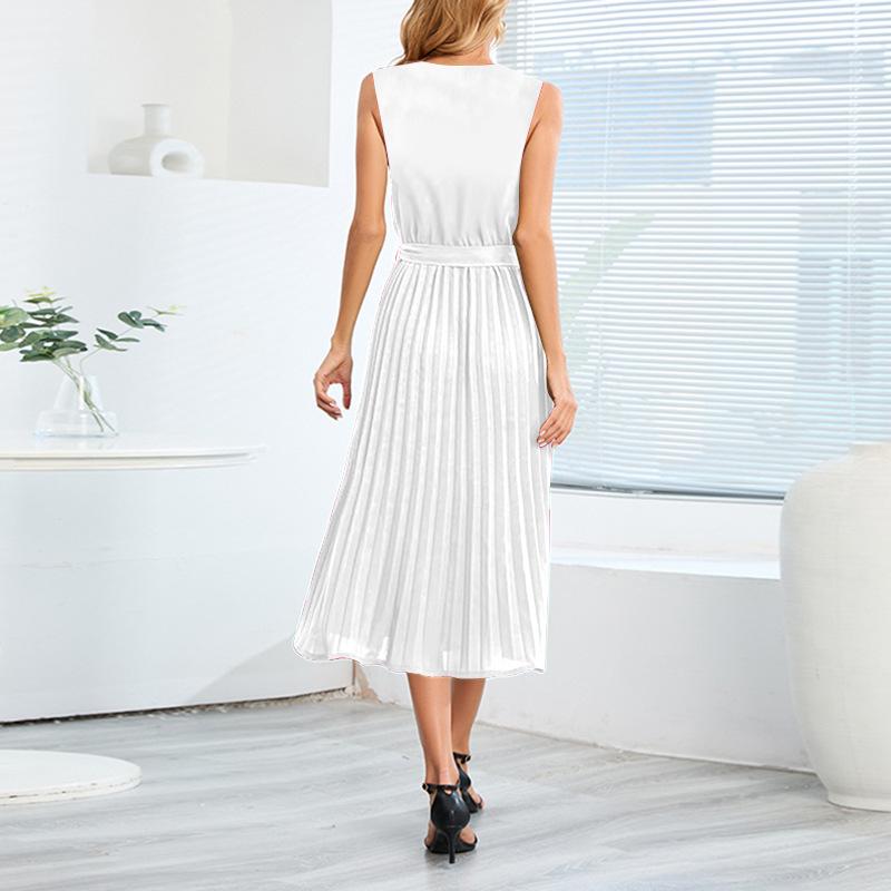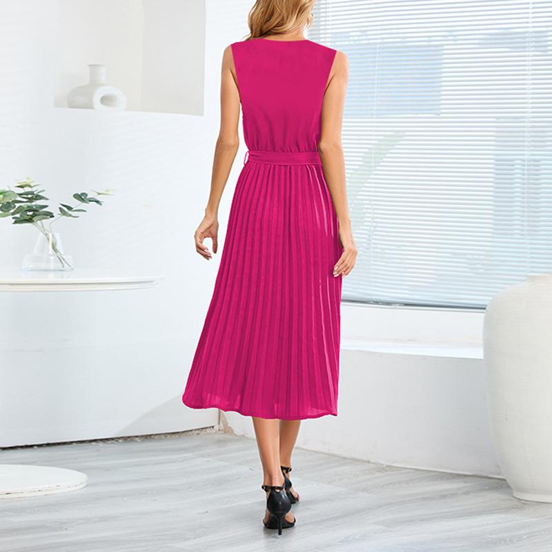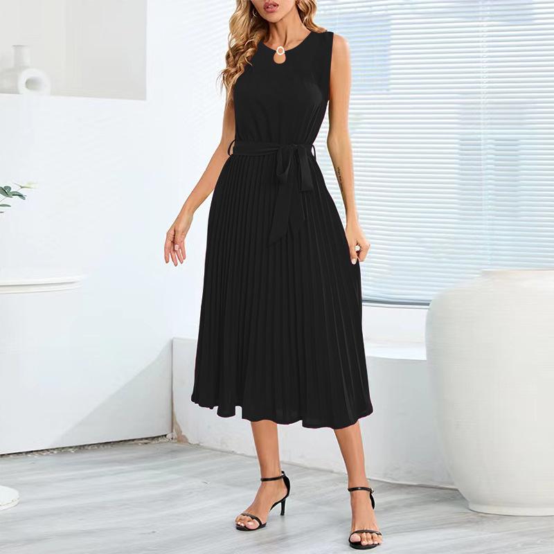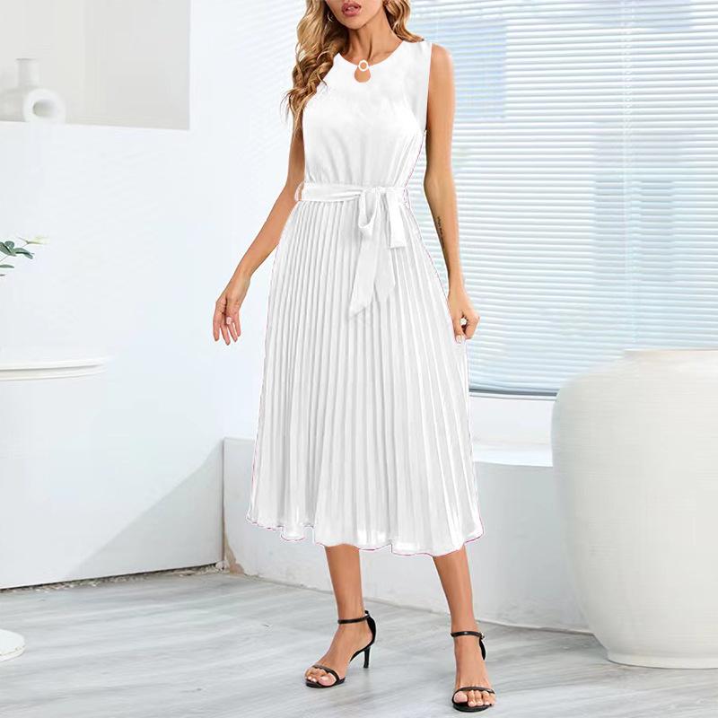 Europa y Estados Unidos comercio exterior transfronterizo Mujeres Verano 2023 nuevo sexy cinturón fino sin mangas falda plisada vestido de Amazon