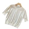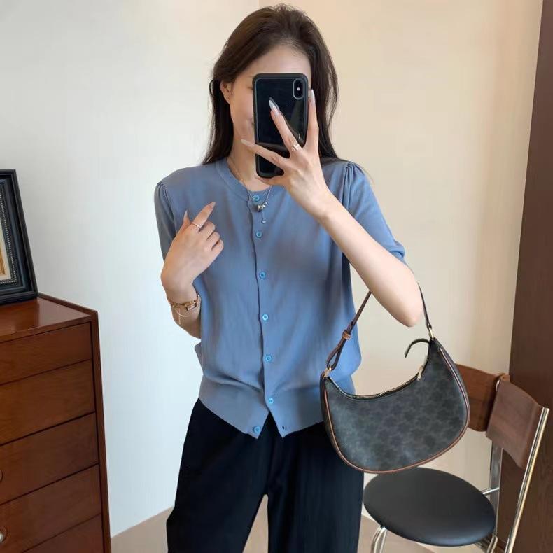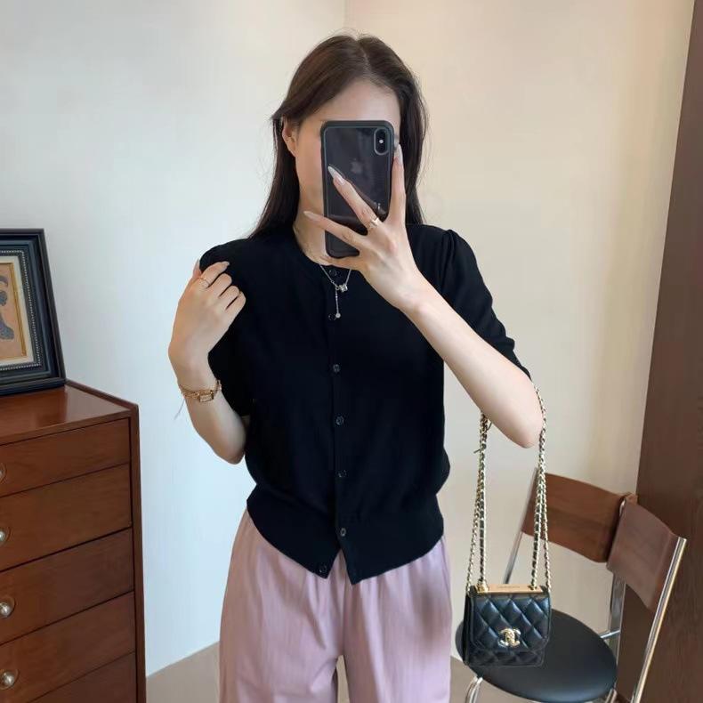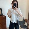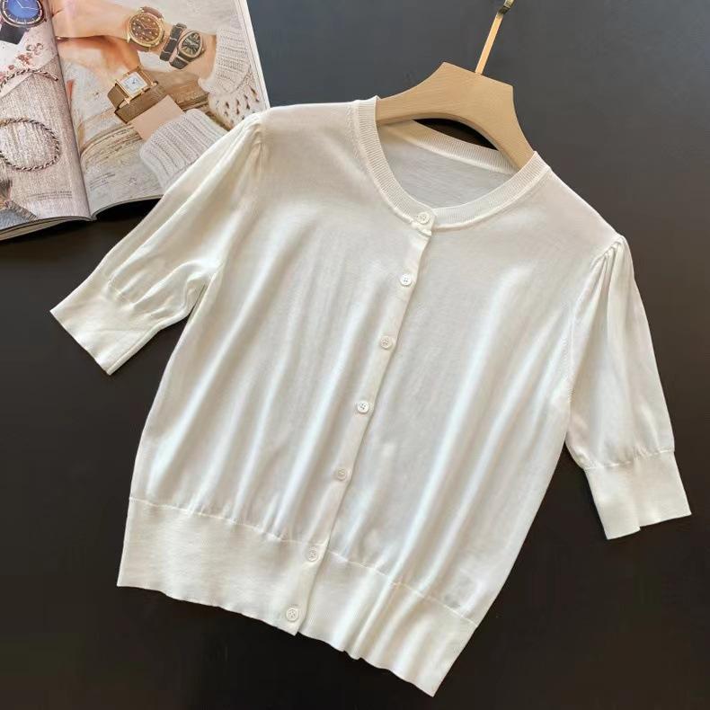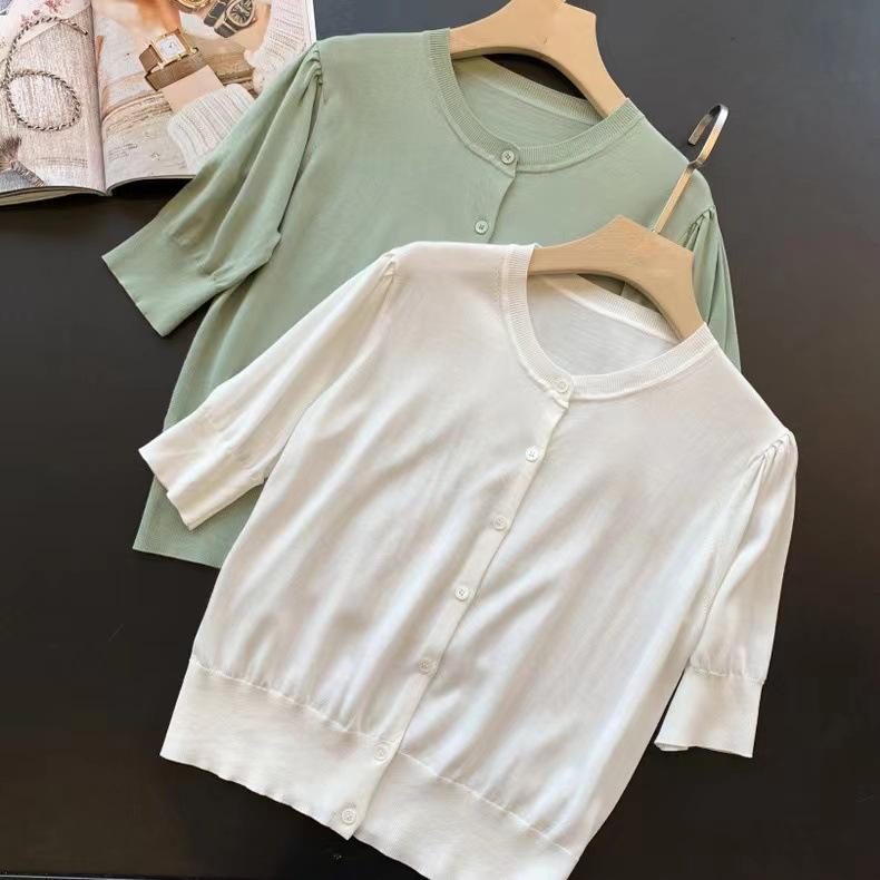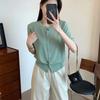 La modelo Xiaojing mide 166 cm y pesa 94 kg. Lleva una blusa de cuello en S ligeramente holgada.
