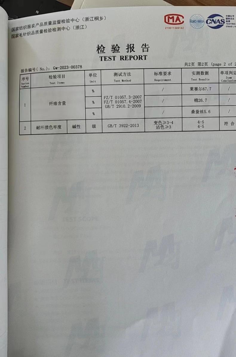 Material: 5.6% seda 26.7% algodón 67.7% lyocell (Tencel)