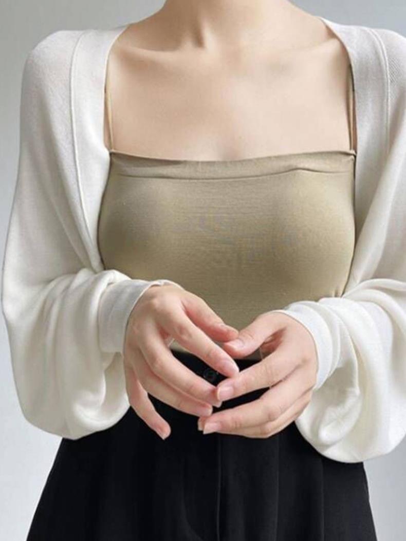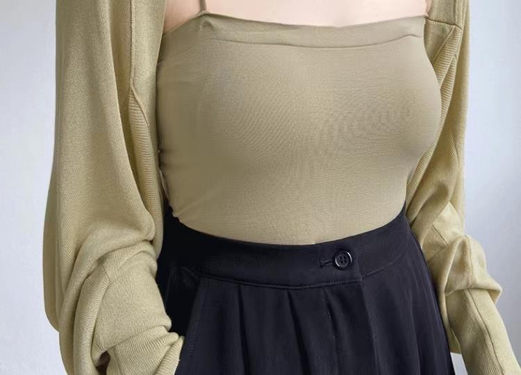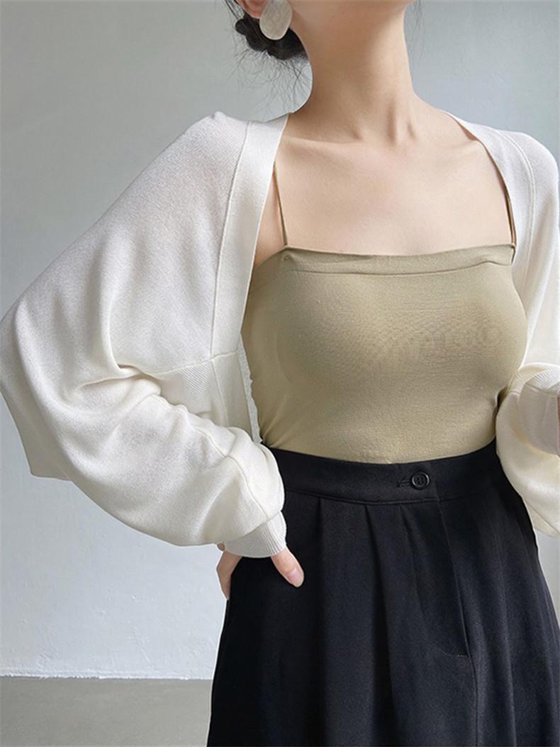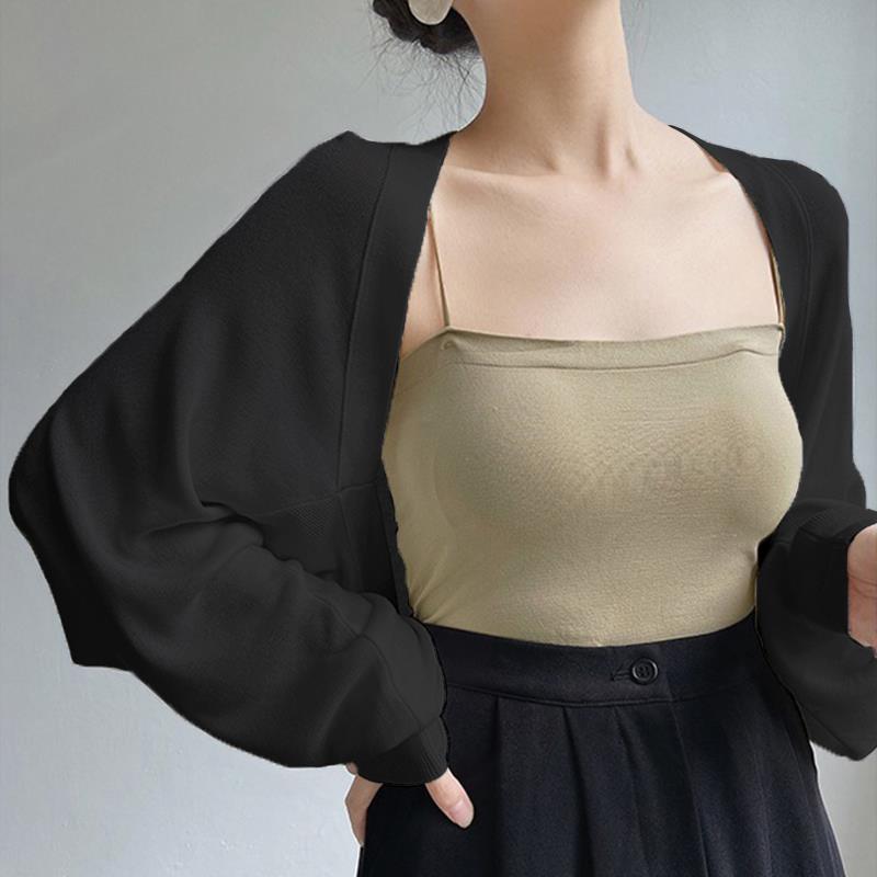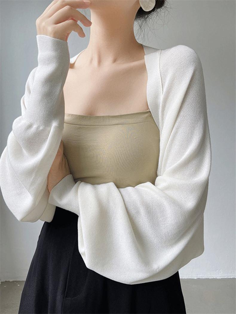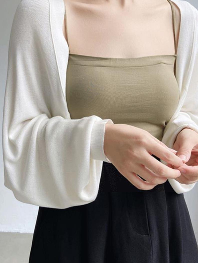 Cárdigan de punto con chal de seda francesa con protección solar para mujer, chaqueta fina de verano con falda con tirantes, blusa exterior con aire acondicionado