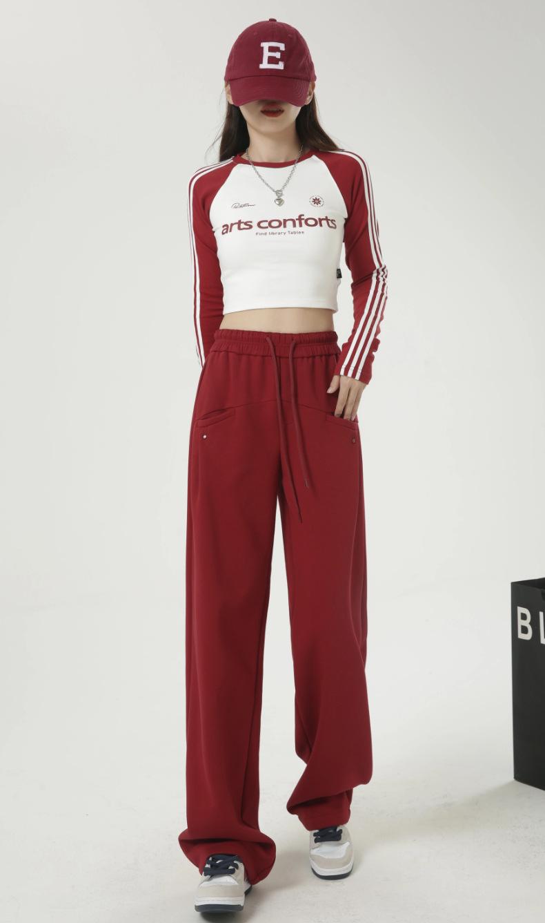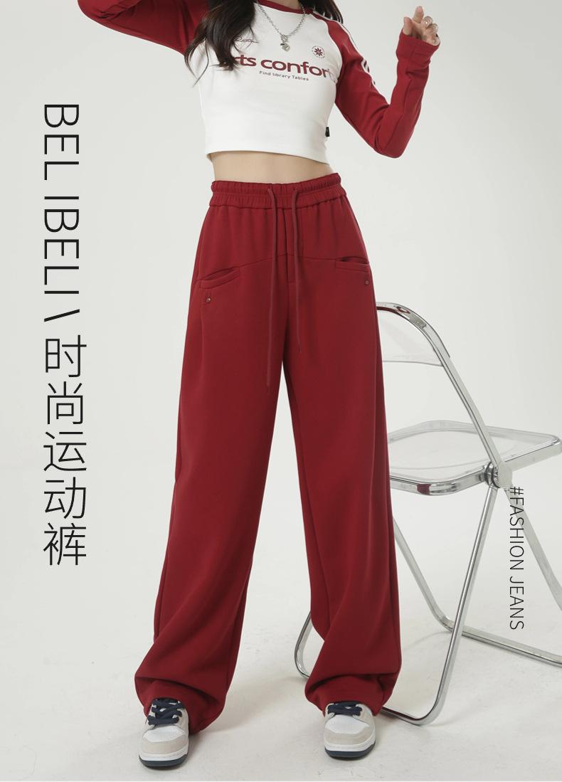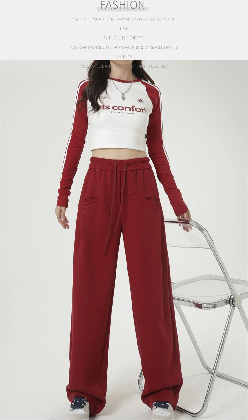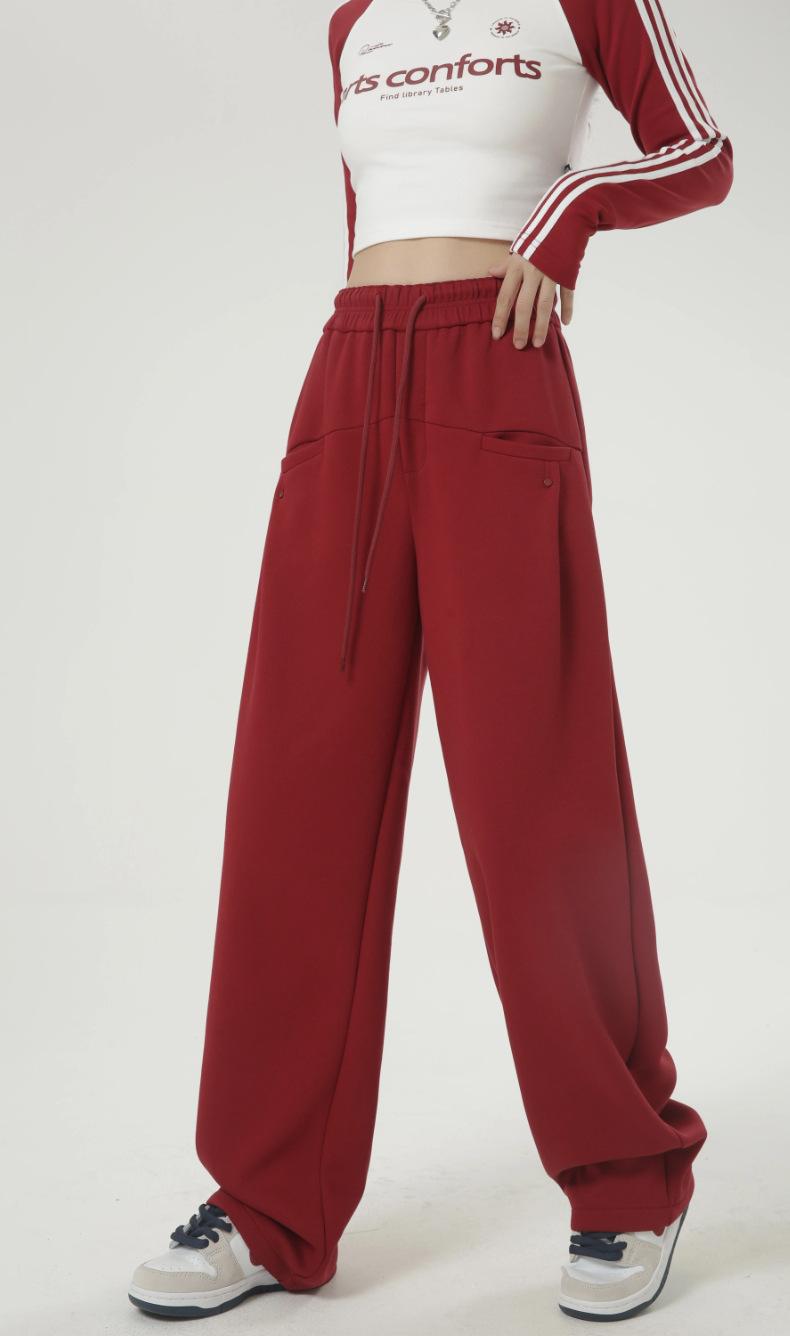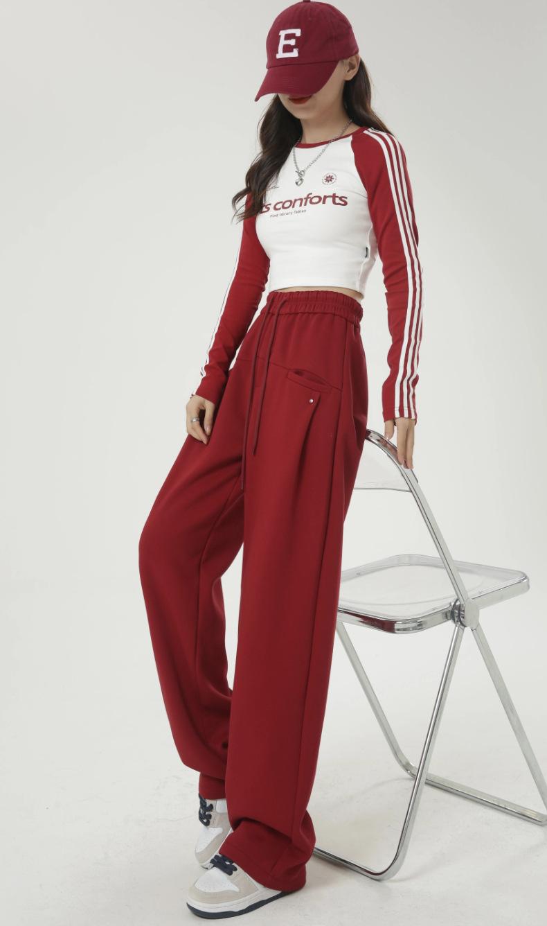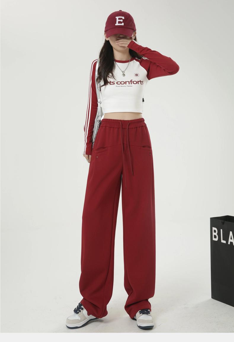 Pantalones deportivos americanos con cordón para mujer 2025 Otoño Nuevo Cintura alta Slim Casual Sueltos Rectos Pierna ancha