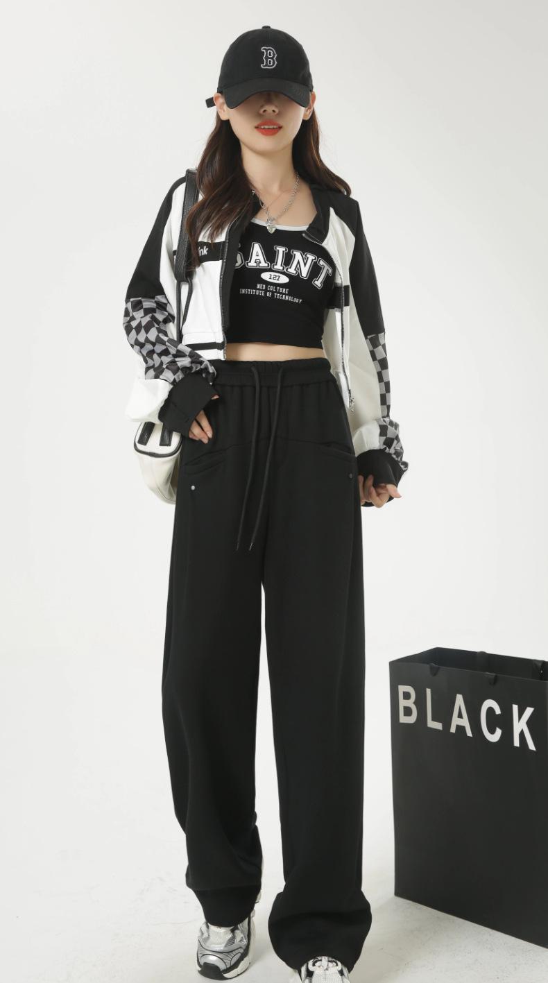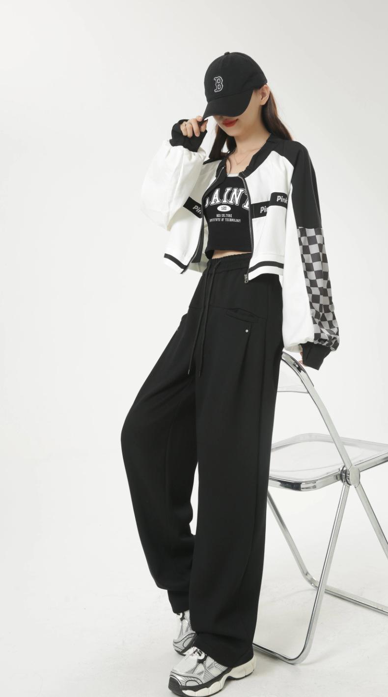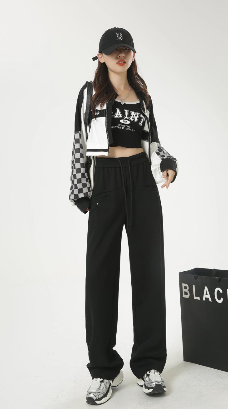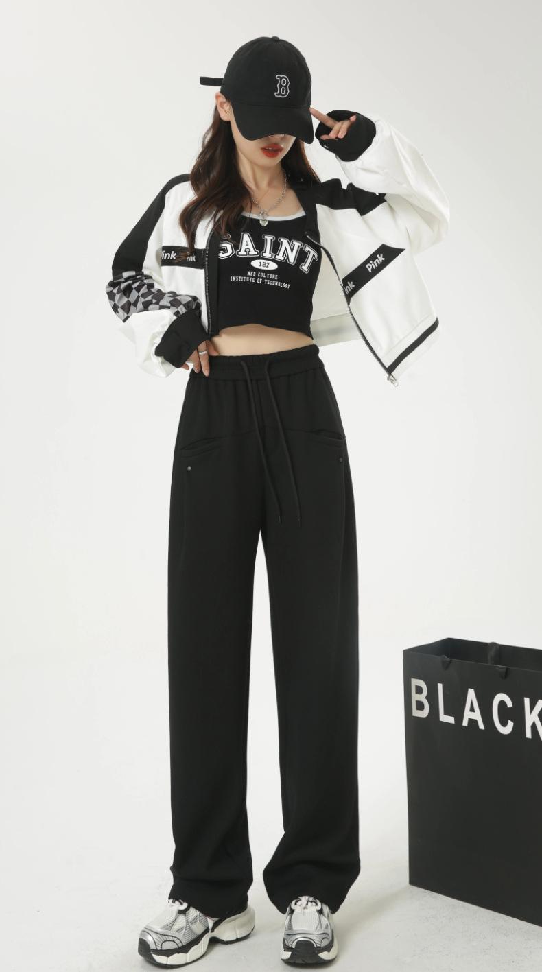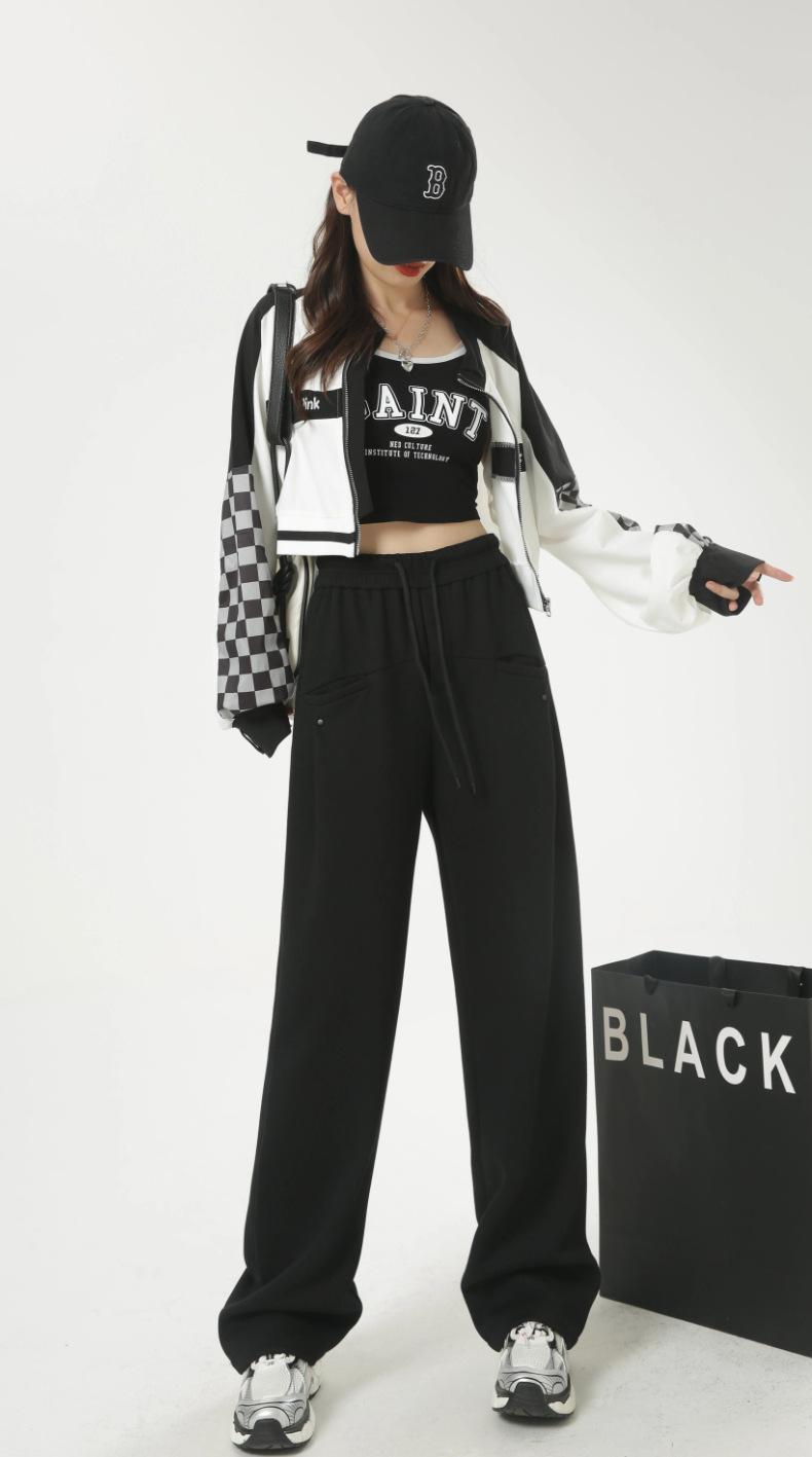 Pantalones deportivos americanos con cordón para mujer 2025 Otoño Nuevo Cintura alta Slim Casual Sueltos Rectos Pierna ancha