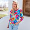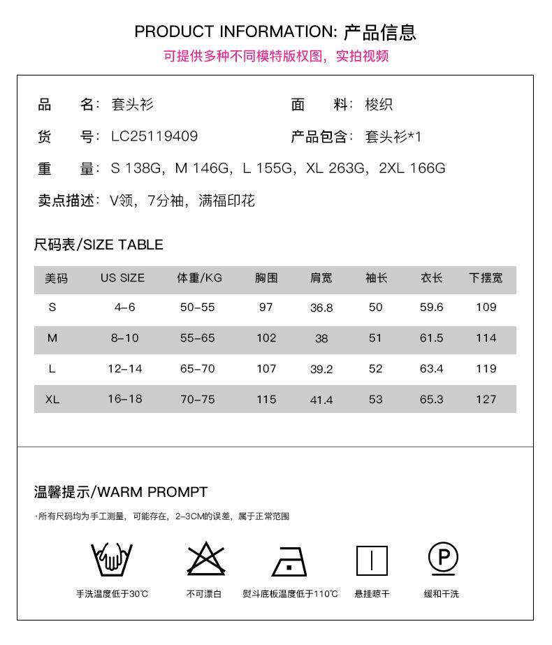 | |  |  | | | Camisa de gasa con estampado retro de comercio exterior europeo y americano para mujer, nueva blusa holgada con cuello en V y manga tres cuartos tipo trompeta, 252219 | | precio de carnaval¥45.37 Compre ya |