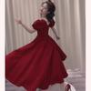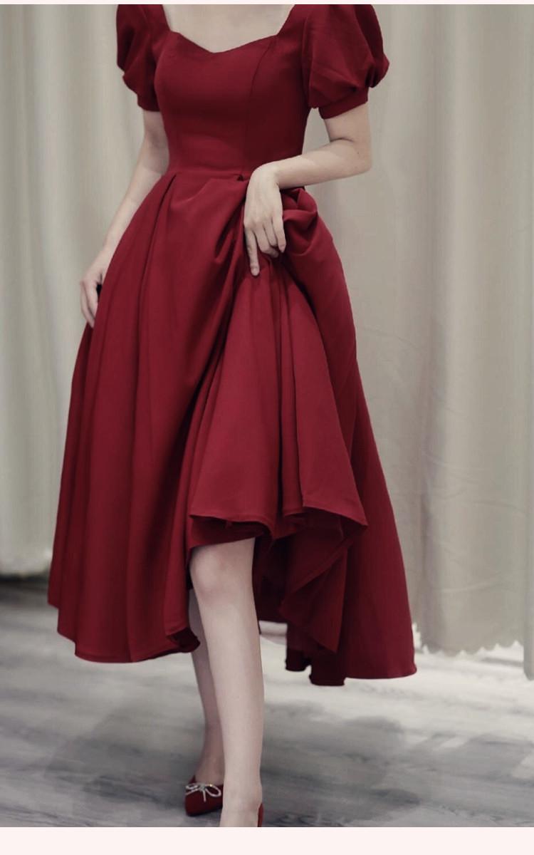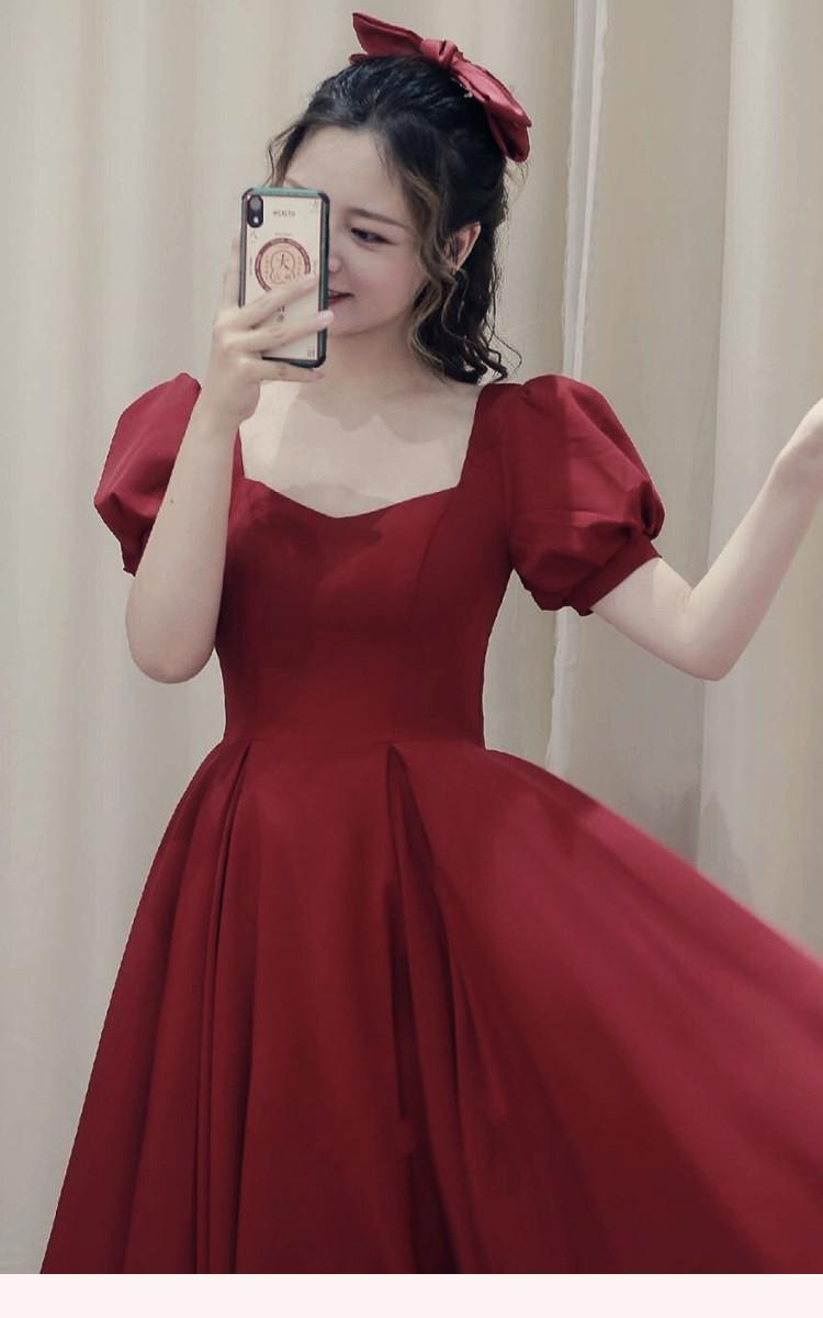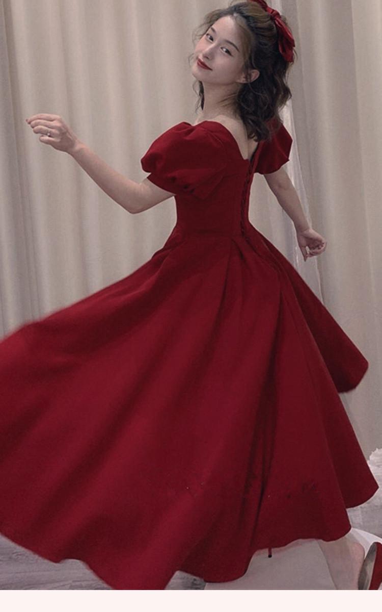 Vestido de Novia Rojo Vino Nuevo 2025 para Novias Petite, Efecto Adelgazante, Adecuado para Compromiso y Regreso a Casa, Vestido de Noche Otoñal