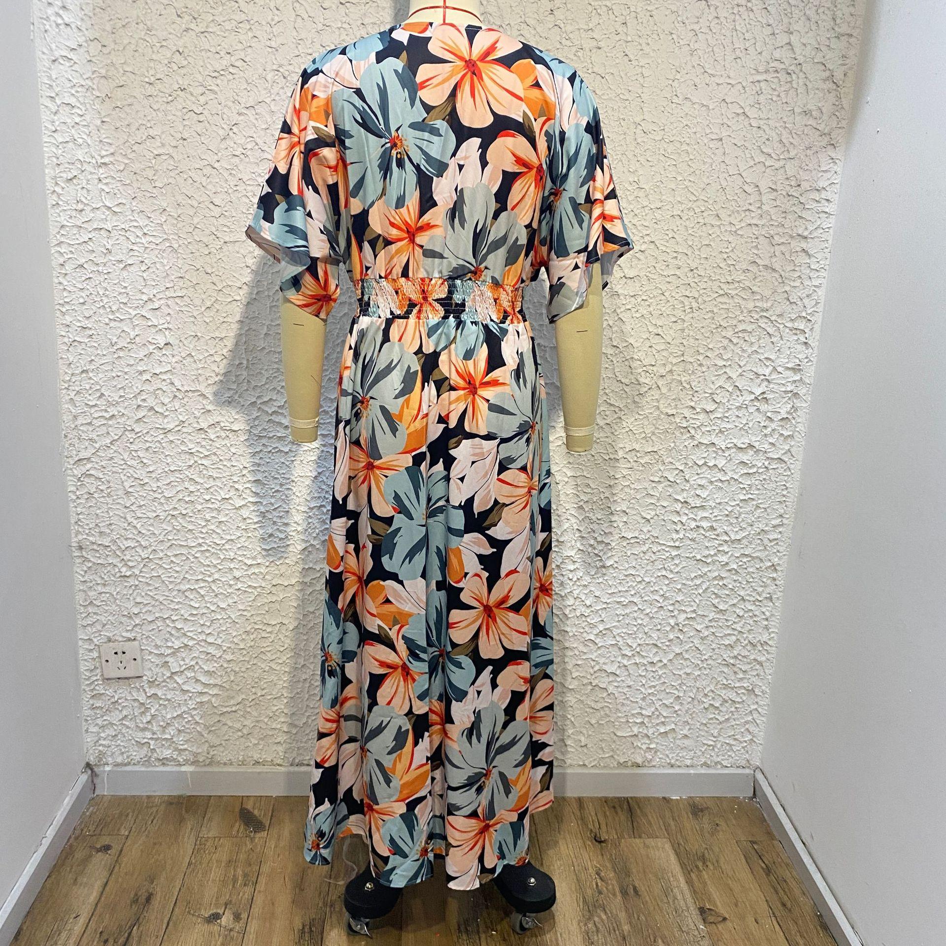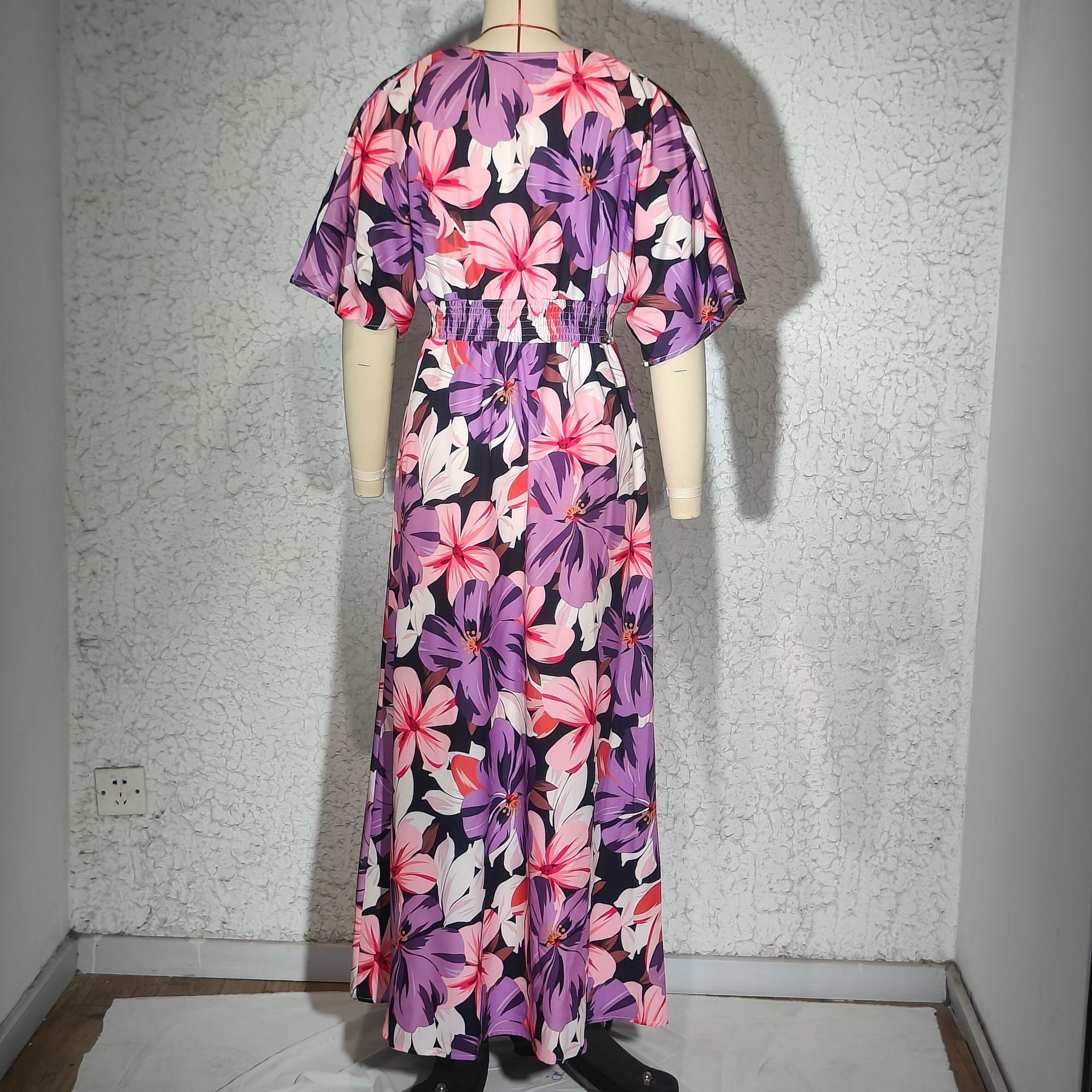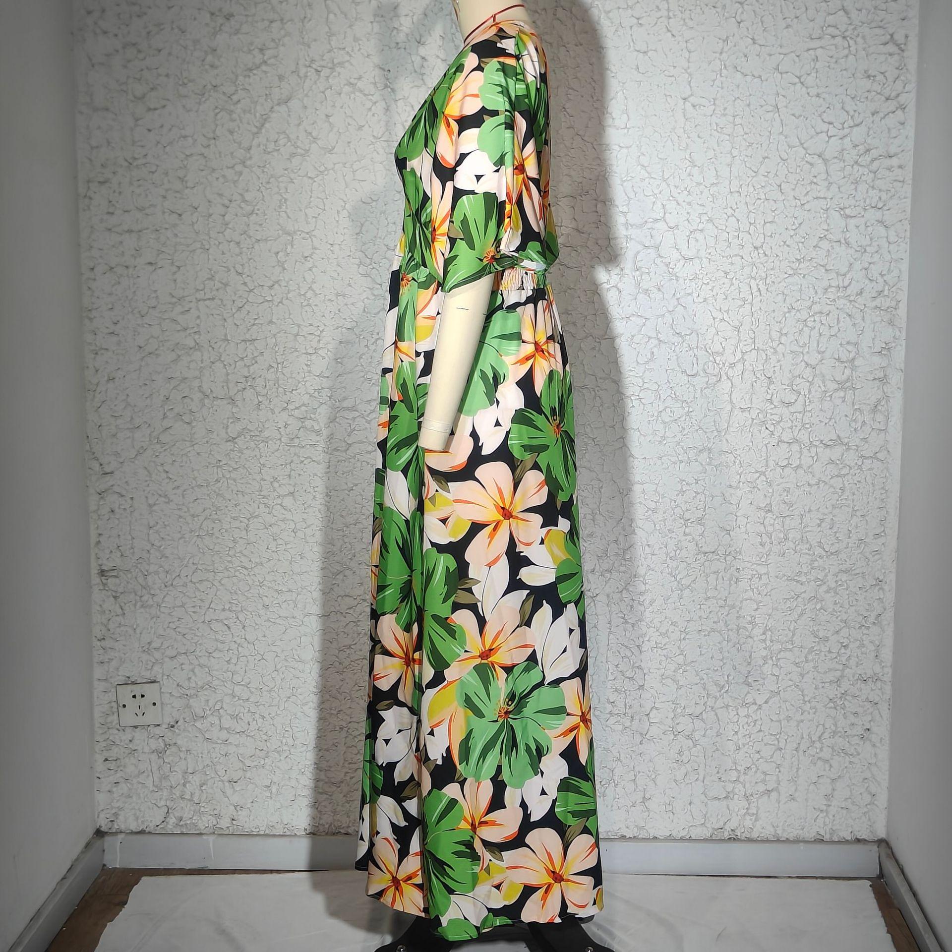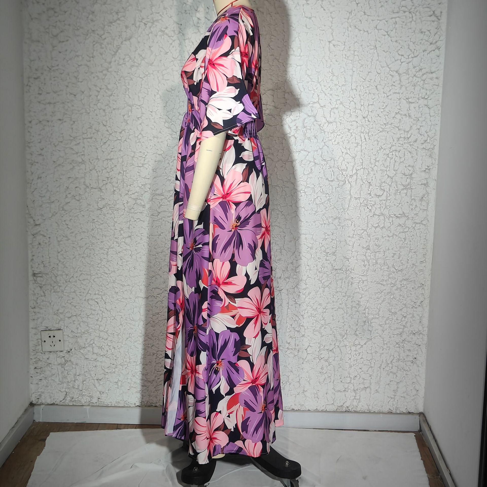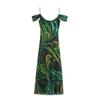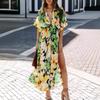 2025 Amazon Transfronterizo Verano Ropa Europea y Americana Nuevo Sexy Vestido de Moda con Abertura Estampado de Cintura Alta para Mujer