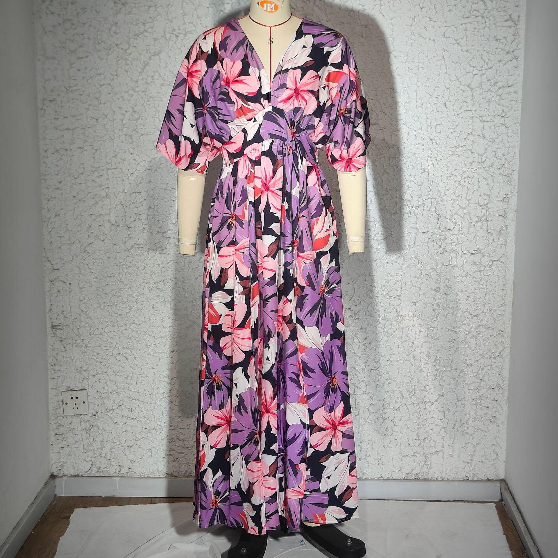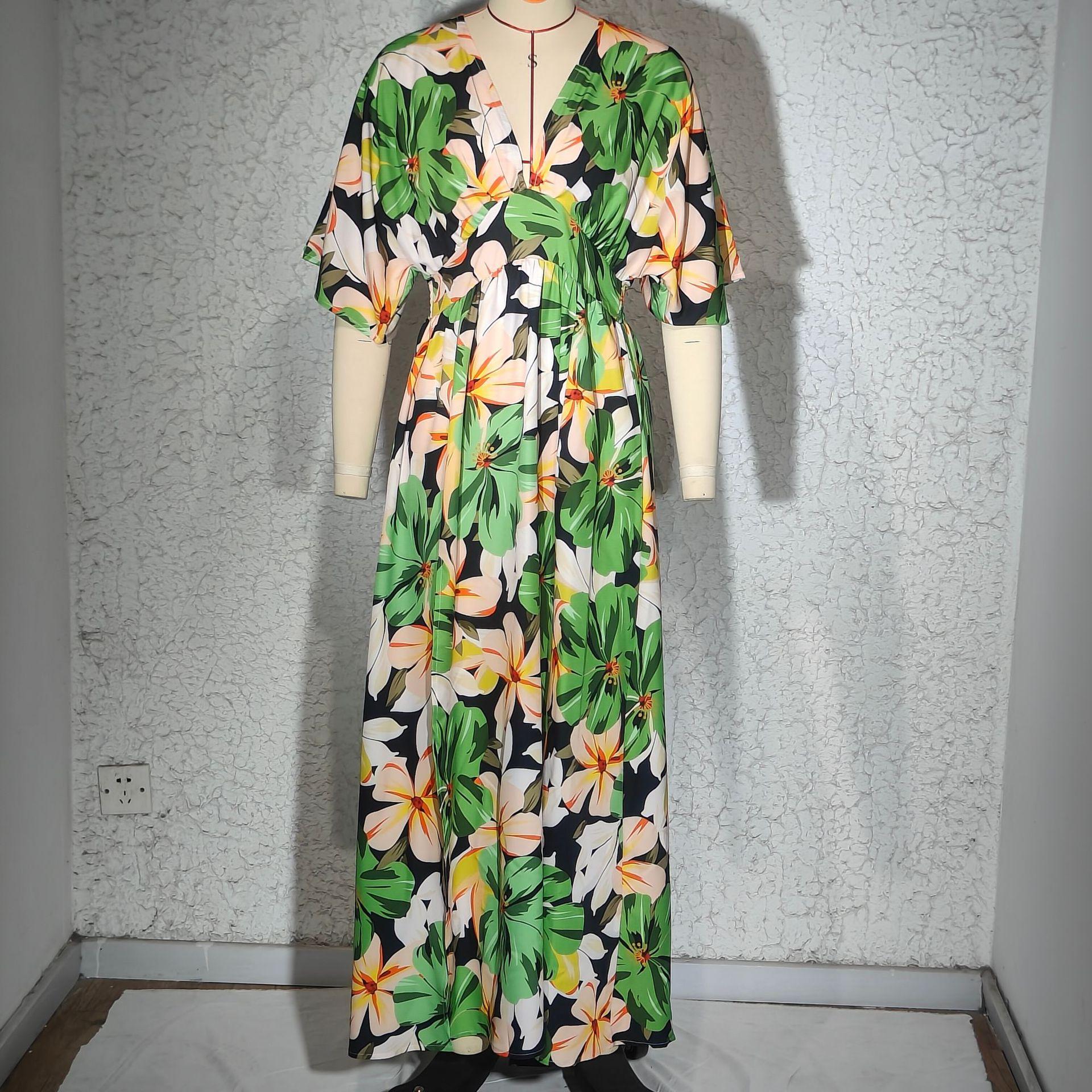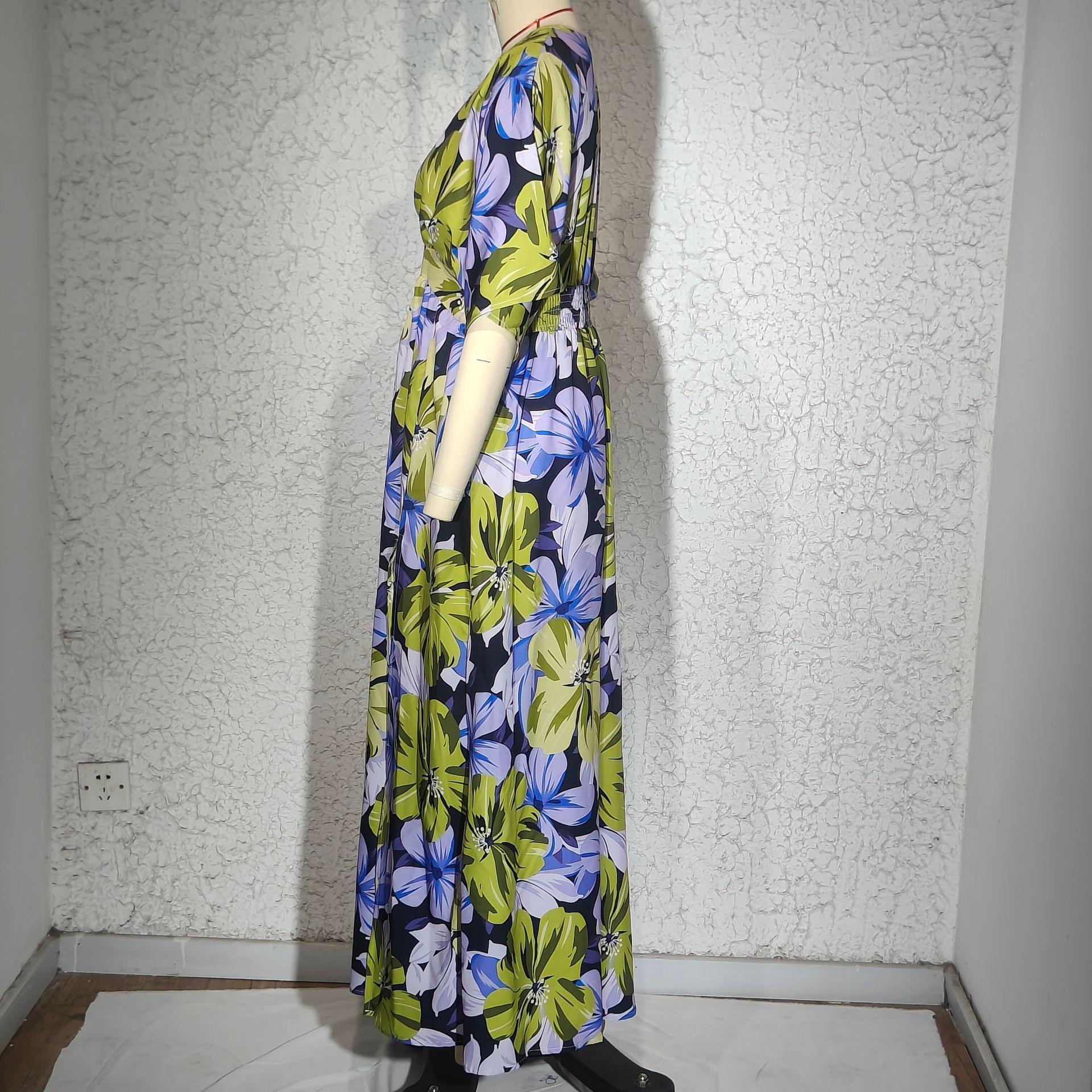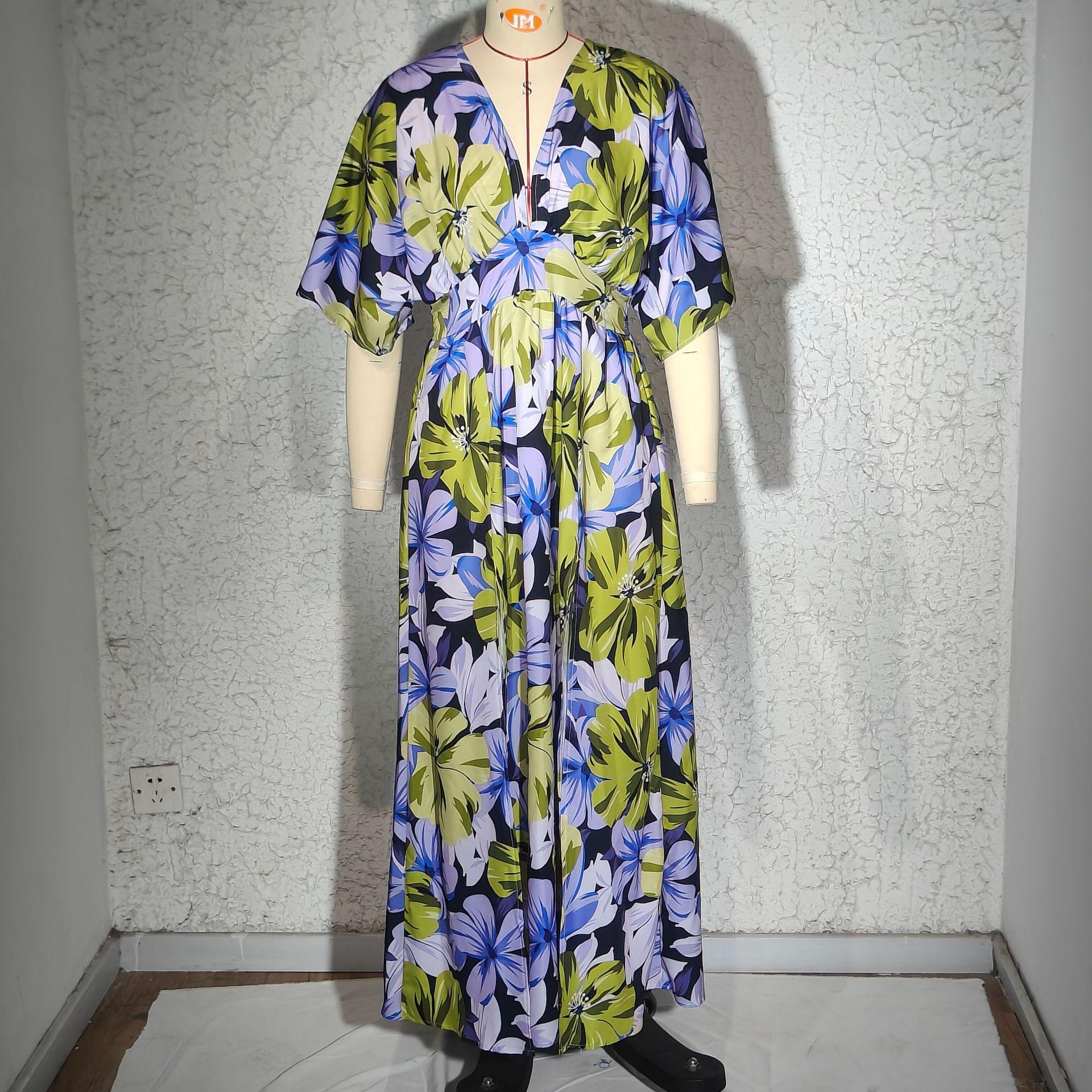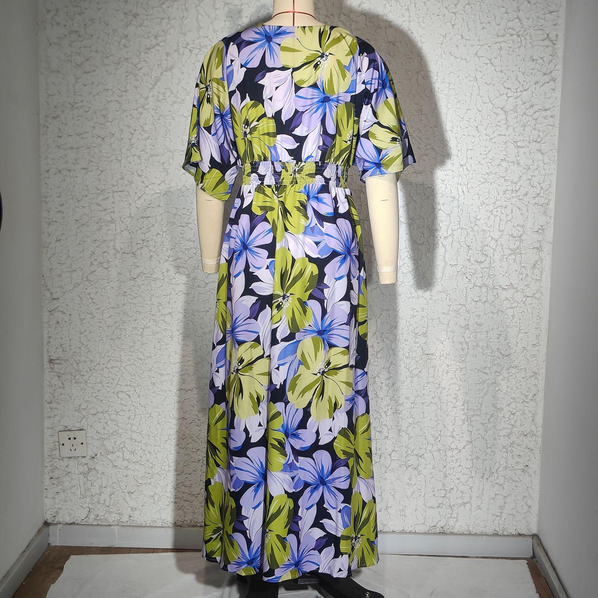 2025 Amazon Transfronterizo Verano Ropa Europea y Americana Nuevo Sexy Vestido de Moda con Abertura Estampado de Cintura Alta para Mujer