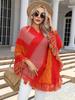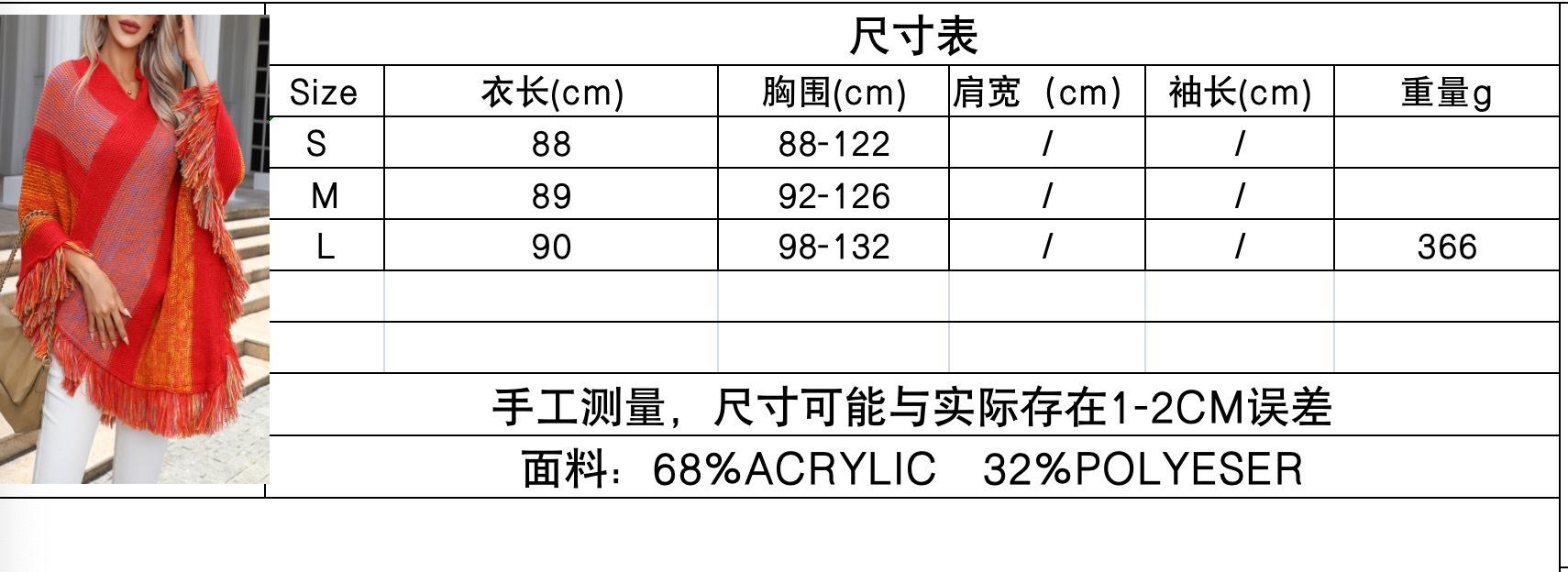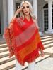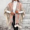Europeo y Americano Nuevo Otoño e Invierno 2023 Estilo Amazon Cuello en V Simple de Empalme Color Borla Capa Chal Chaqueta