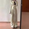 Pantalones anchos con efecto tie-dye para mujer, de verano, finos, de cintura alta, drapeados, rectos, sueltos, informales, adelgazantes, de seda helada vintage para primavera y otoño.