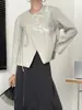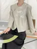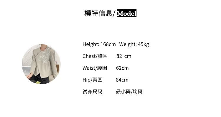 Meng Zixi Bordado de Alta Gama Estilo Chino Nuevo Suelto Adelgazante Cuello Redondo Lazo al Frente Manga Larga Abrigo X2060